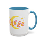 Available in two sizes, 11oz (0.33 l) and 15oz (0.44 l), and three color options. Made with white ceramic and sporting a sleek glossy finish with eye-catching contrast. The ergonomic C-shaped handle provides a comfortable grip, while the lead and BPA-free construction guarantee peace of mind with every sip.