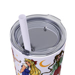 Fight evil (and drink tasty beverages) with this totally gorgeous Sailor Moon themed stainless steel tumbler bottle! Featuring adorable Pulp fan art of your favorite sailor senshi: