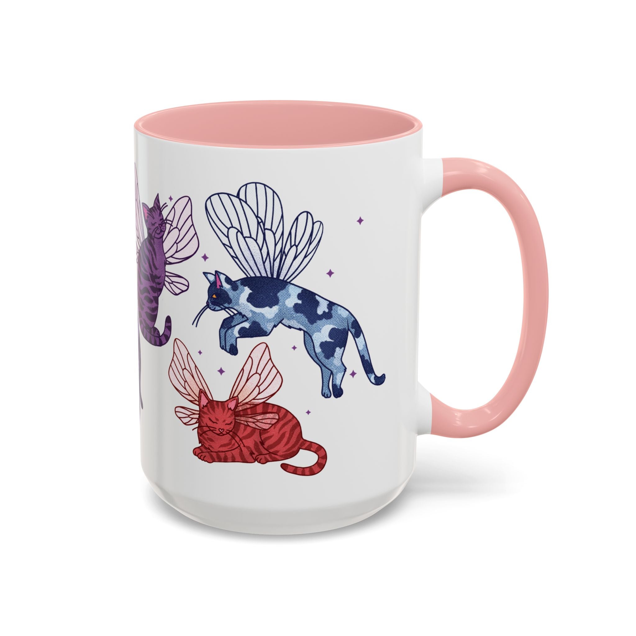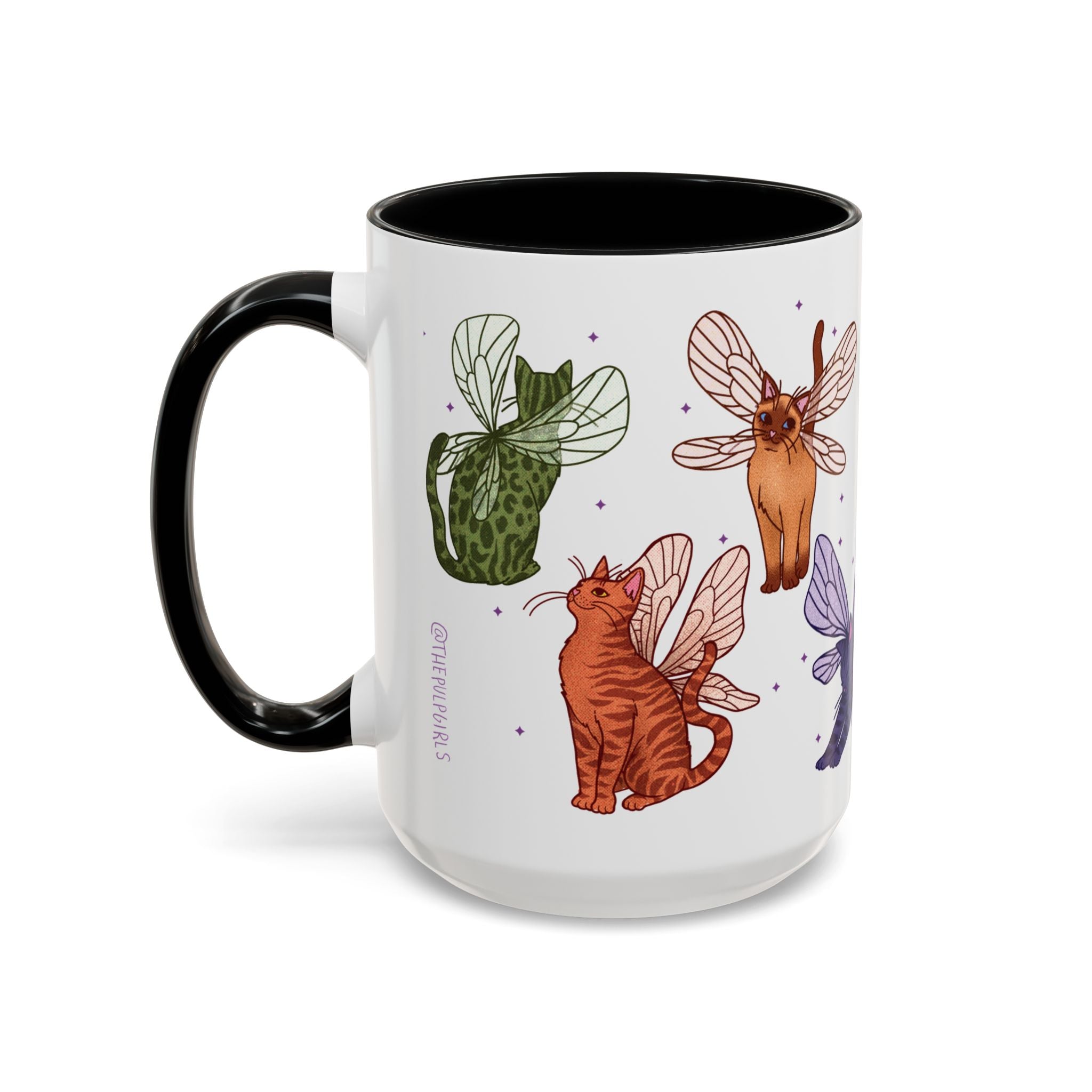 Invite some magic into your day with the fairy cat mug! Darling playful, rainbow fairy cats wrap around this ceramic mug. Perfect for cat lovers and cottagecore fans alike!