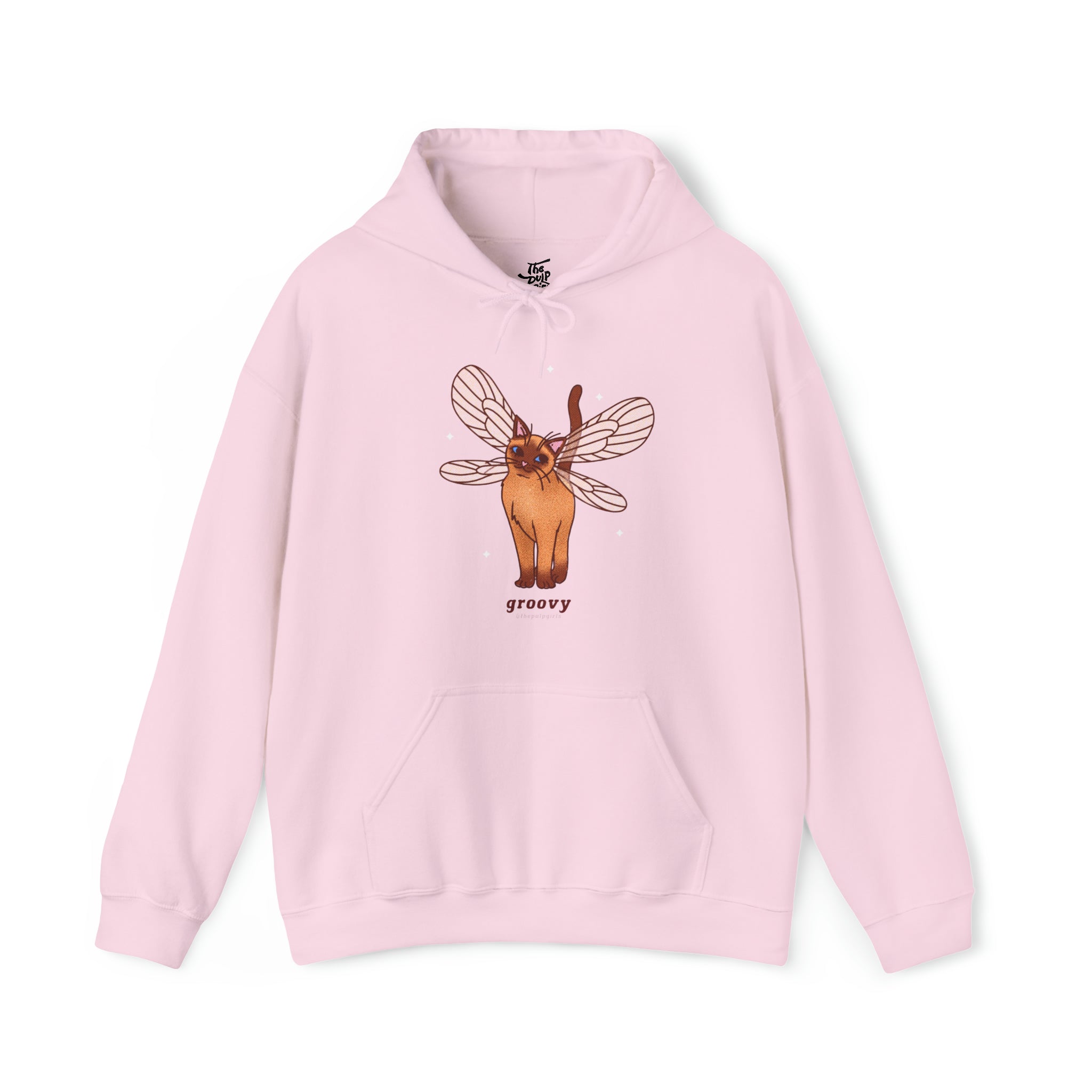 Invite some magic into your day with the fairy cat hooded sweatshirt! A blessed fairy kitty graces the front of this hoodie, reminding you that you're simply the grooviest babe around. Perfect for cat lovers and cottagecore fans alike!