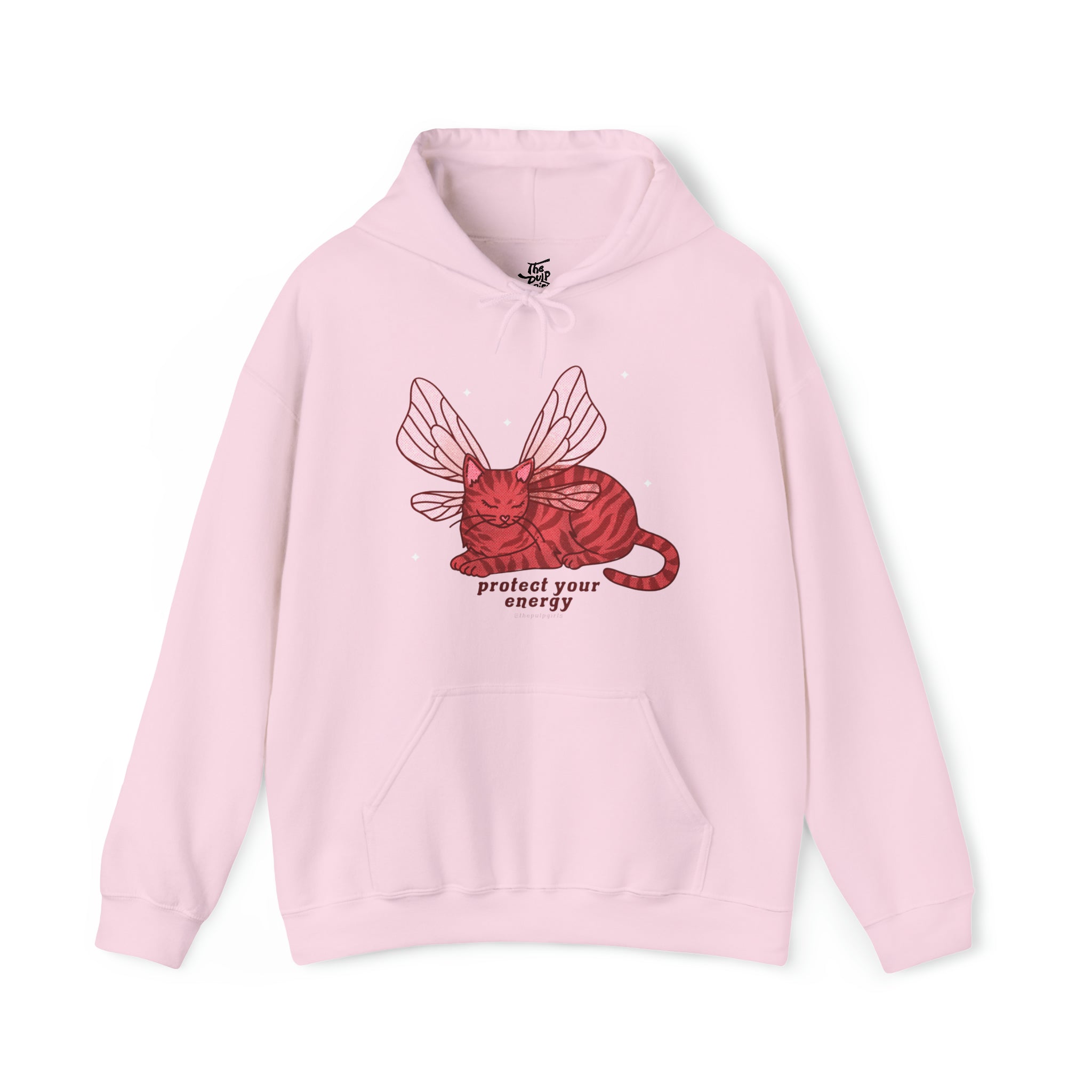 Invite some magic into your day with the fairy cat hooded sweatshirt! A blessed fairy kitty graces the front of this hoodie, just totally serene and protecting her lovely energy. Perfect for cat lovers and cottagecore fans alike!