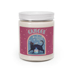 Love all things spooky and cute? We've got you Cancer darling! This 9oz candle is made with a natural soy wax blend and cotton wick. Choose from Vanilla Bean, Comfort Spice, Sea Breeze, Fresh Balsam, Spiced Pumpkin Ginger, Pink Grapefruit, Eucalyptus Lavender Herb, or Unscented. Each candle label features the zodiac sign name and our adorable classic Pulp-style black cat, along with spooky cute spiderweb motifs. Perfect for any and all witch girlies, cat lovers, goth cuties, and anyone who is simply just living their best witchy life!