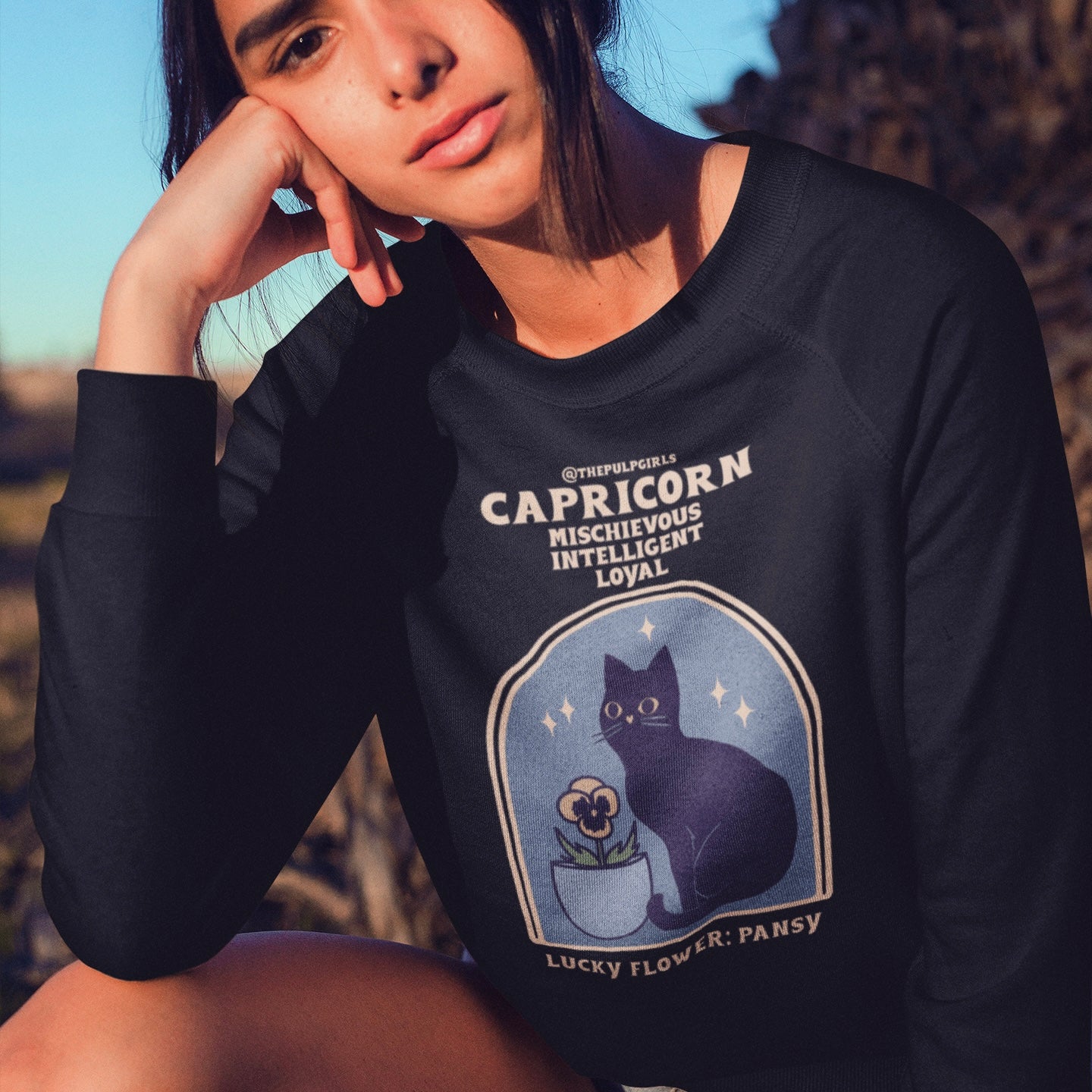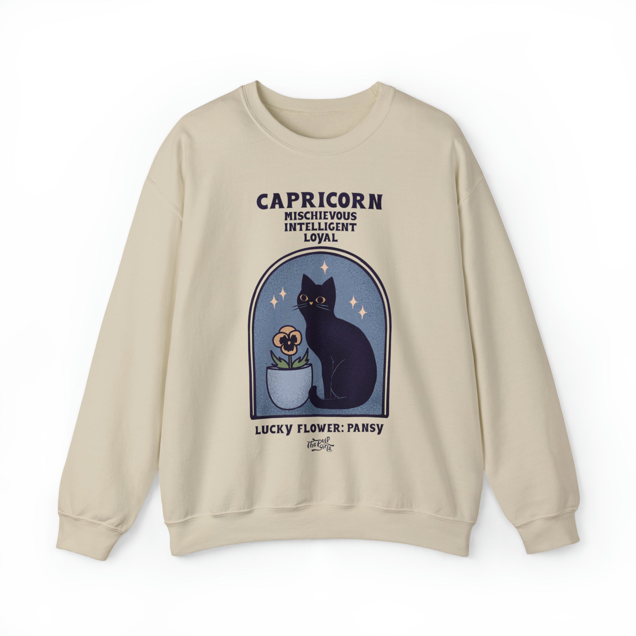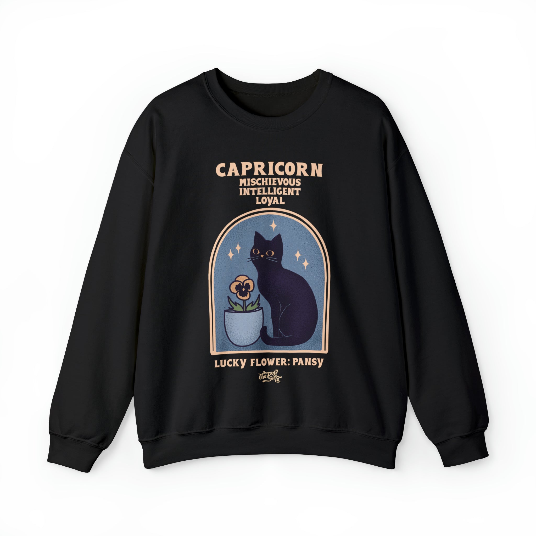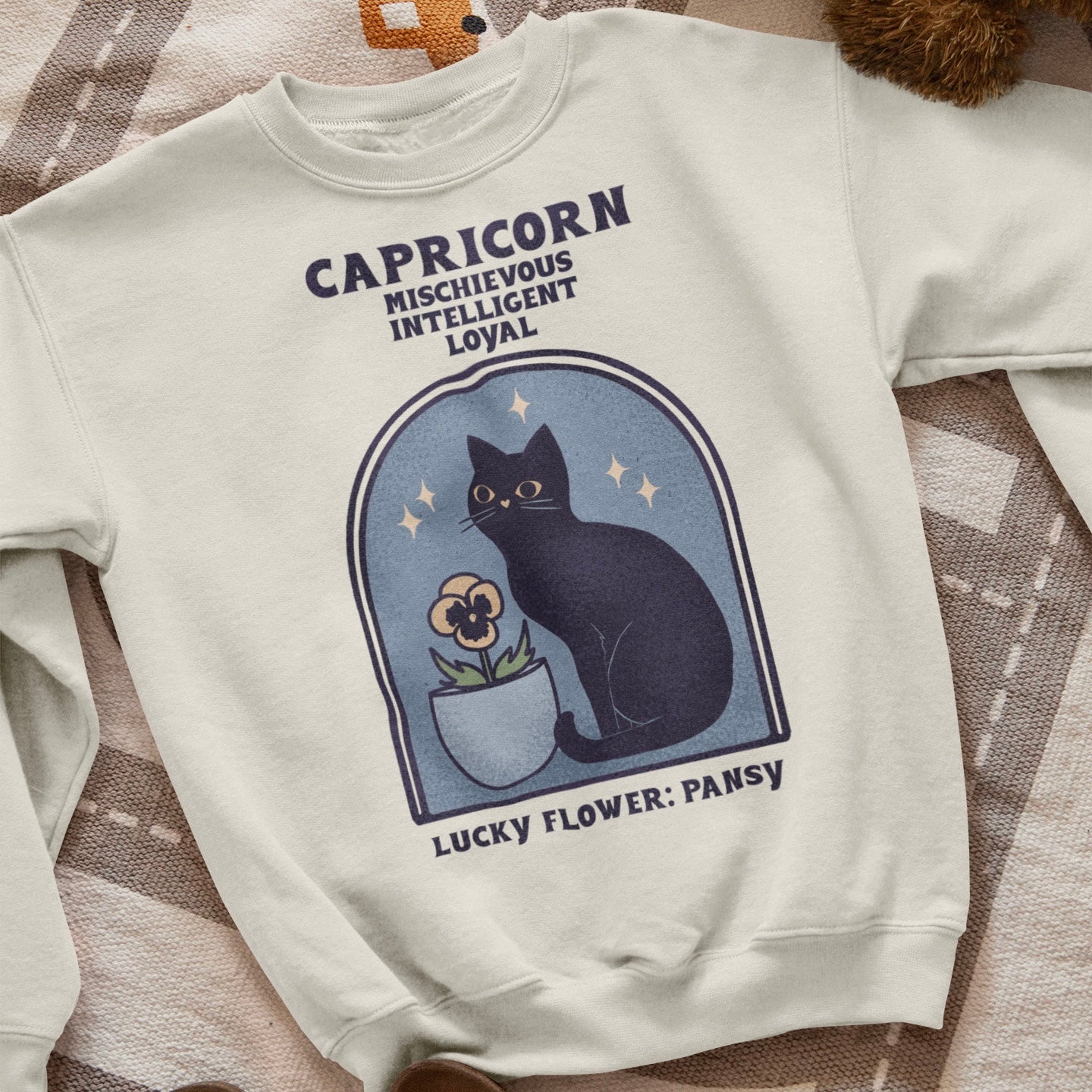 Capricorn honeys! This is the ultimate cat astrology crewneck sweatshirt for you!