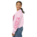 Aries darlings! Fall in ~love~ with our love themed cat astrology merch. Featuring the sign name along one sleeve, and your sign & some hearts along the other sleeve.