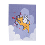 Cozy up with this plush velveteen blanket featuring a darling lil dog playing Cupid! Totally soft to touch and just the cutest throw blanket around!