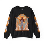 For all those fire signs (and sunny souls, radiant goddesses, and witchy folks) out there, this is the crewneck sweatshirt for you! Featuring a beautiful art nouveau-inspired fire goddess in fairy form, complete with abundant wheat and the bright, shining sun. Perfect for any and all lovers of the fae, magic, witchcraft, femme aesthetics, and fairycore!