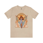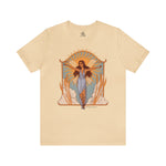 For all those fire signs (and sunny souls, radiant goddesses, and witchy folks) out there, this is the tee for you! Featuring a beautiful art nouveau-inspired fire goddess in fairy form, complete with abundant wheat and the bright, shining sun. Perfect for any and all lovers of the fae, magic, witchcraft, femme aesthetics, and fairycore!