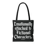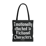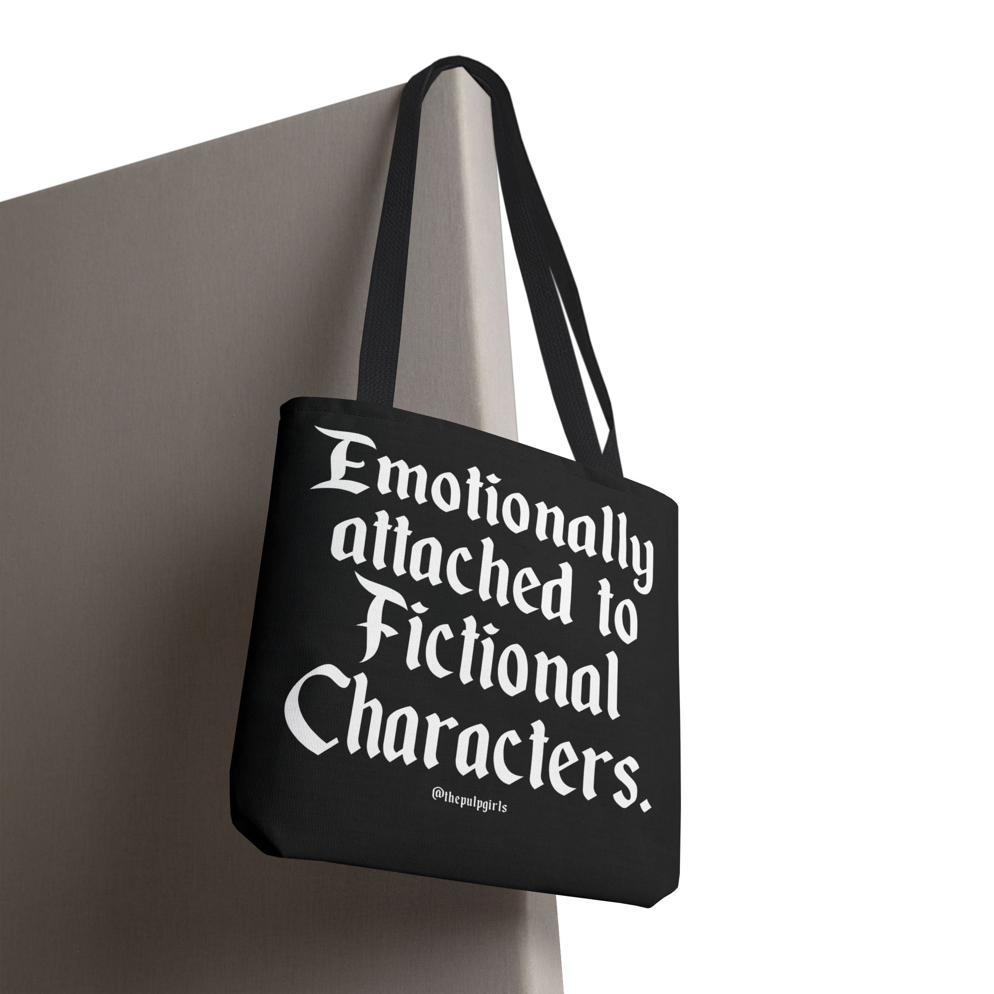 Calling all booktok girlies, late-night readers, and people who carry fictional friends around in their hearts! This durable tote bag is perfect for anyone who loses themselves in stories. Boldly stating “Emotionally attached to Fictional Characters” on both sides, you can carry all the books on your TBR while announcing your soft spot for characters without shouting. Perfect for carrying your everyday items, for impressing your book club, or traveling!