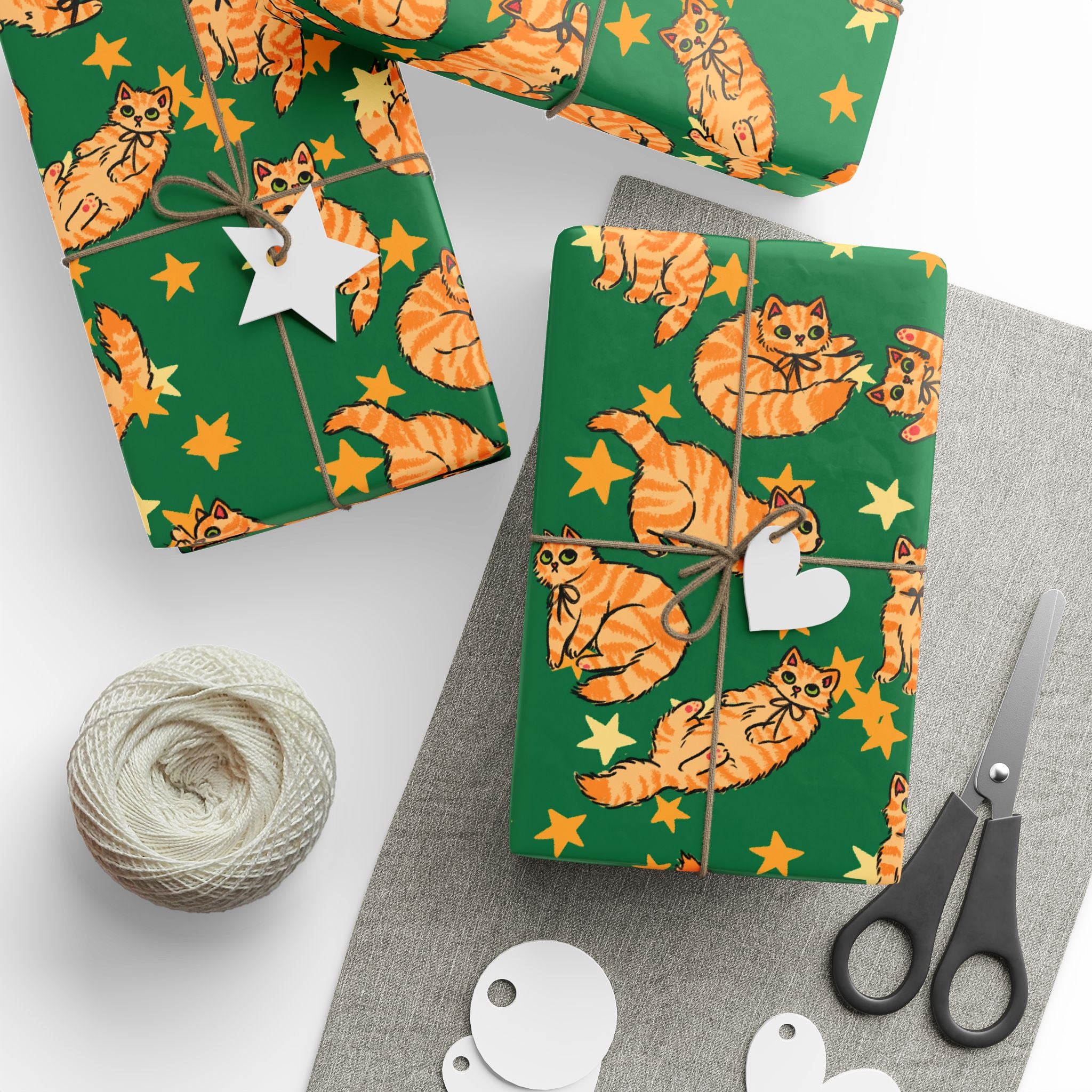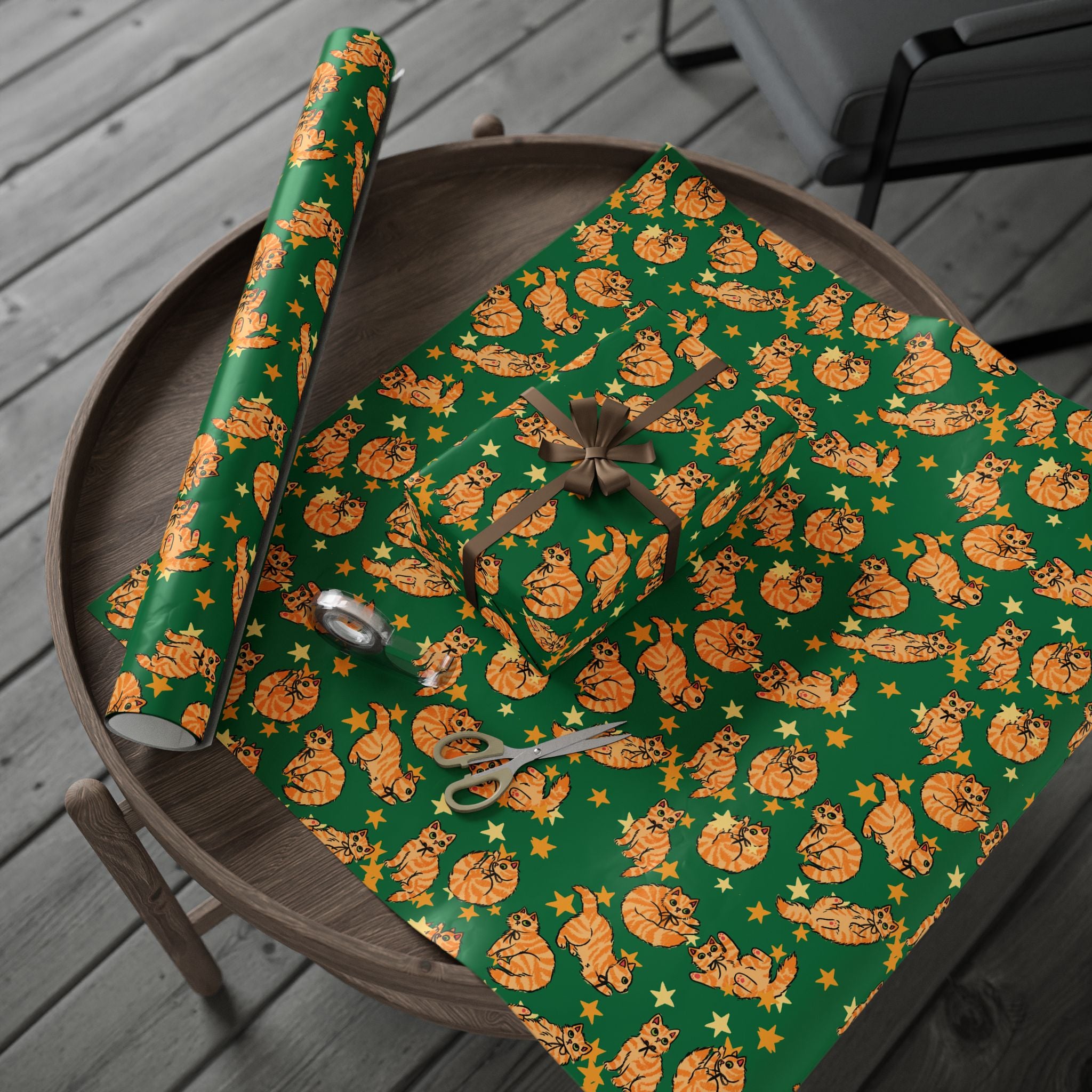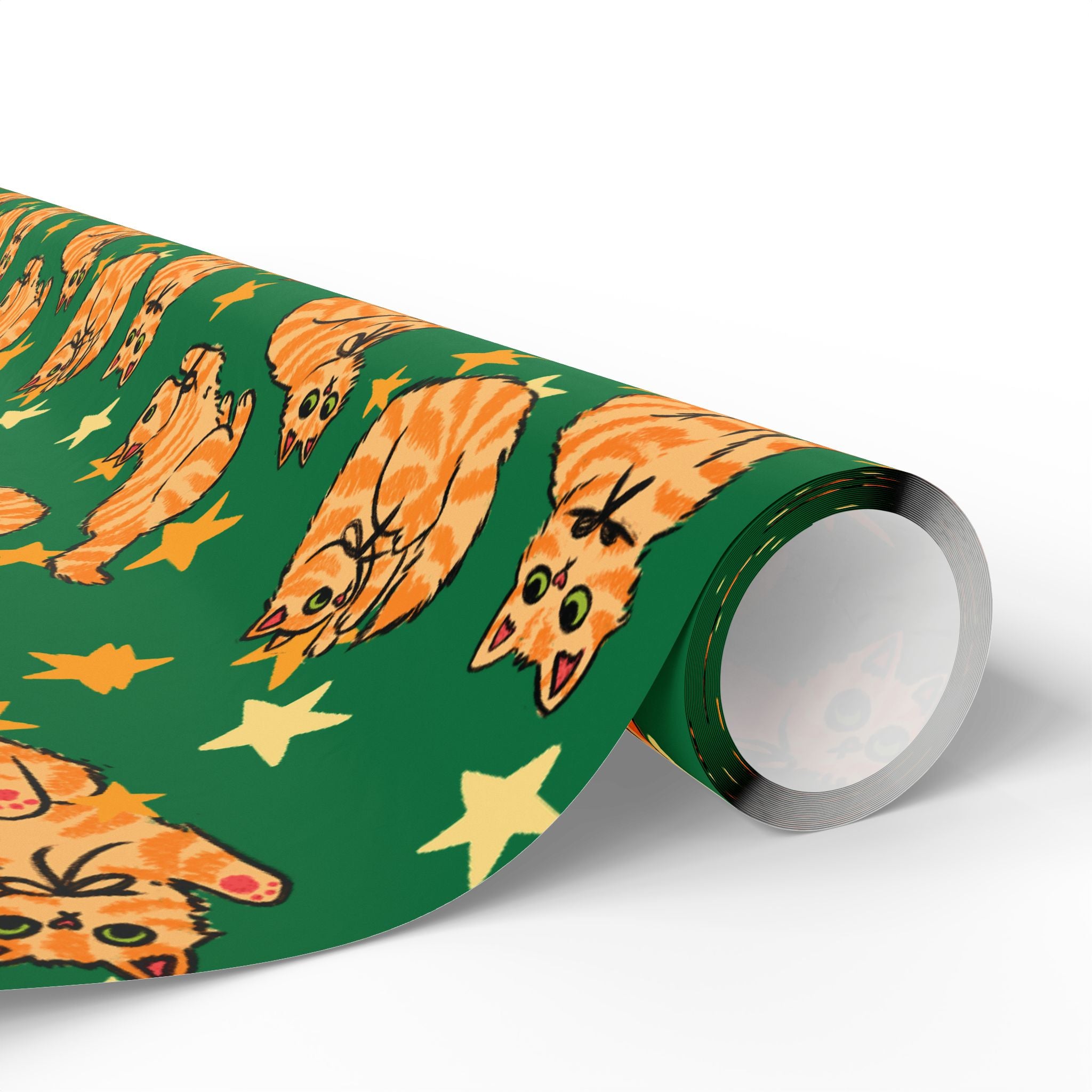 Add a playful touch to your gift-giving with this wrapping papers featuring orange cats on a green background. Perfect for cat lovers and those who enjoy quirky designs, this wrapping paper is ideal for birthdays, holidays, and other special occasions. Choose from 3ft, 6ft, and 15ft roll lengths.