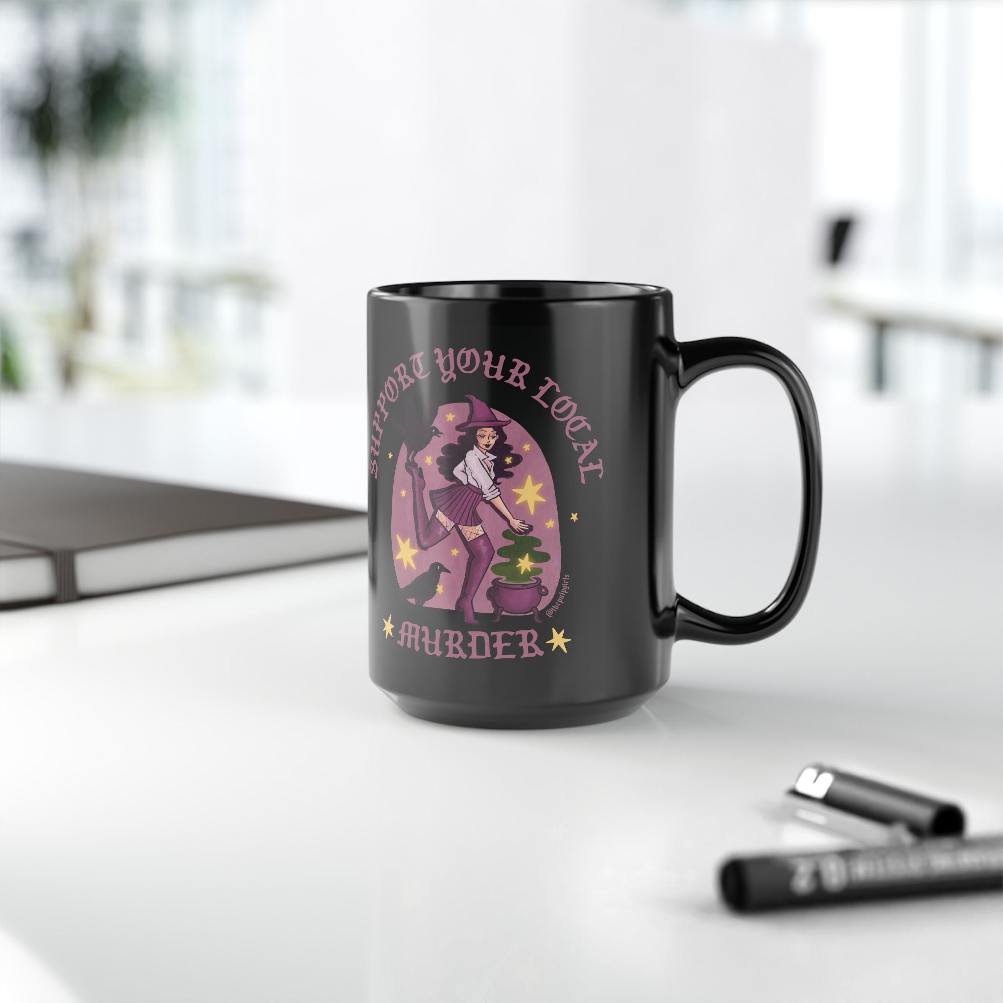 The perfect mug for any crow lover! Featuring a Pulp illustration of a witch making magic with her two crow friends and "SUPPORT YOUR LOCAL MURDER." Perfect for people who appreciate hand-drawn charm, birds, and eye-catching mugs. Get it for yourself or give it as a Christmas, birthday, or holiday gift!