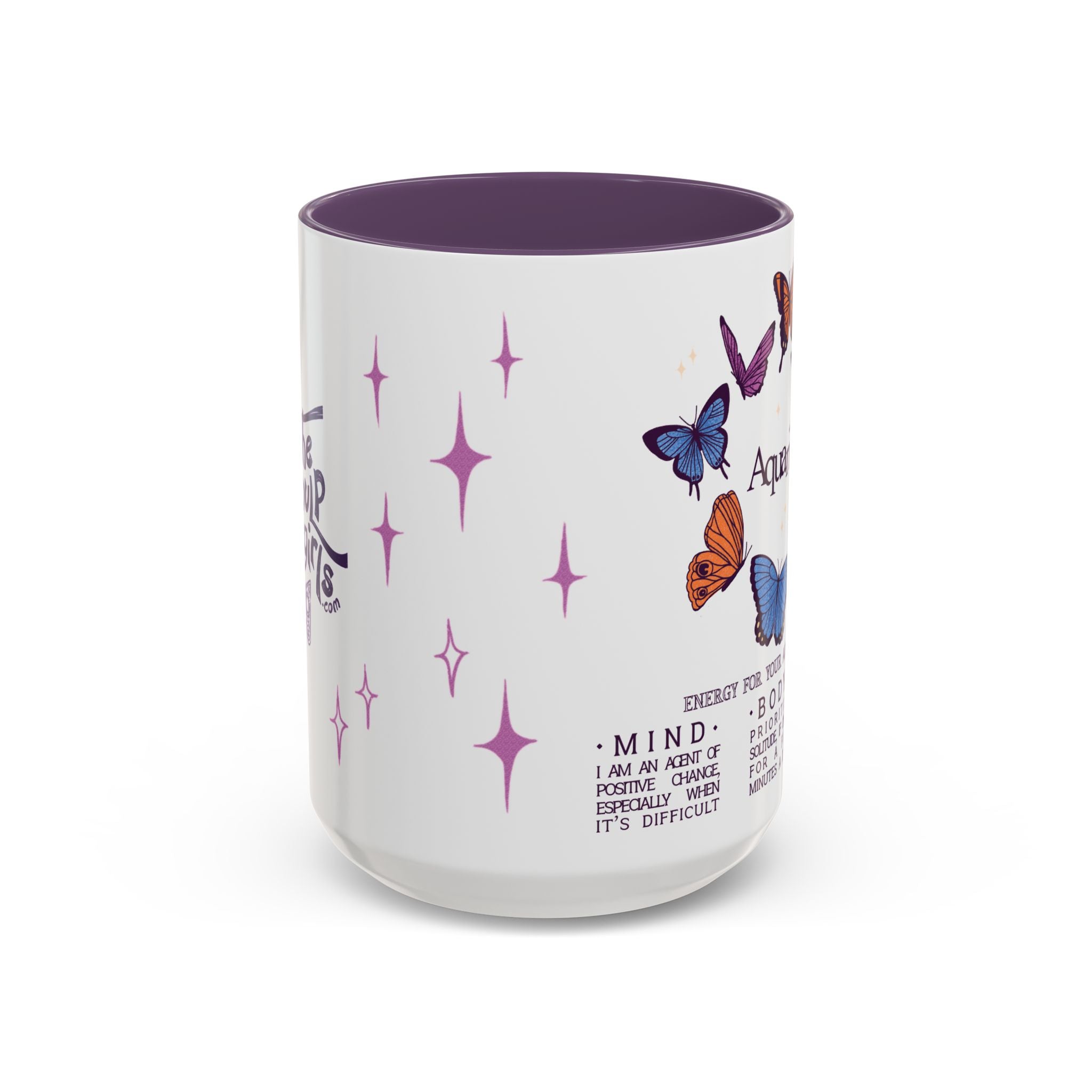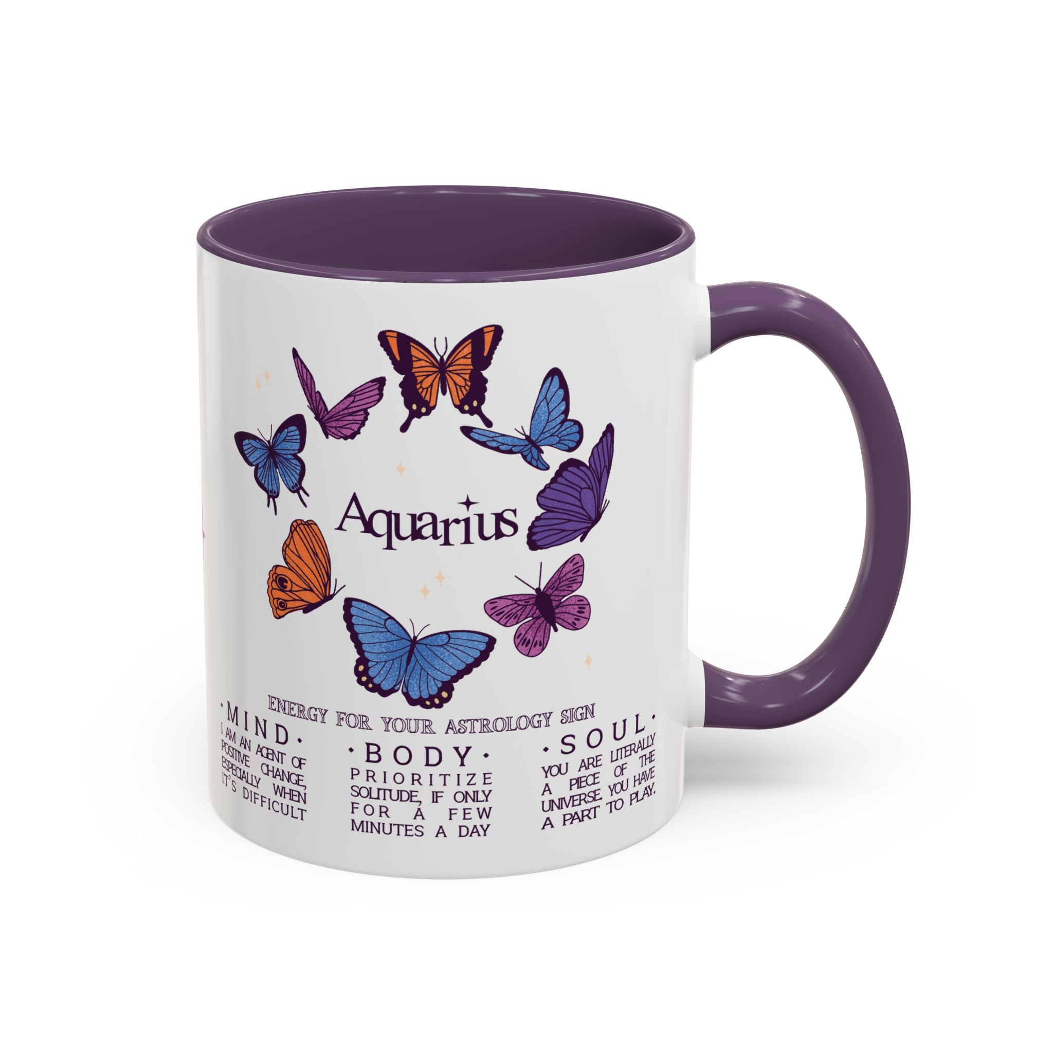Attention all Aquarius darlings! This gentle, self-loving mug belongs in your daily rotation! Featuring gorgeous butterflies framing your sign name, the star of this show is the soft little reminders to take good care of yourself--mind, body, and soul. Whether you're looking for a lovely gift or treating yourself, this is your mug!