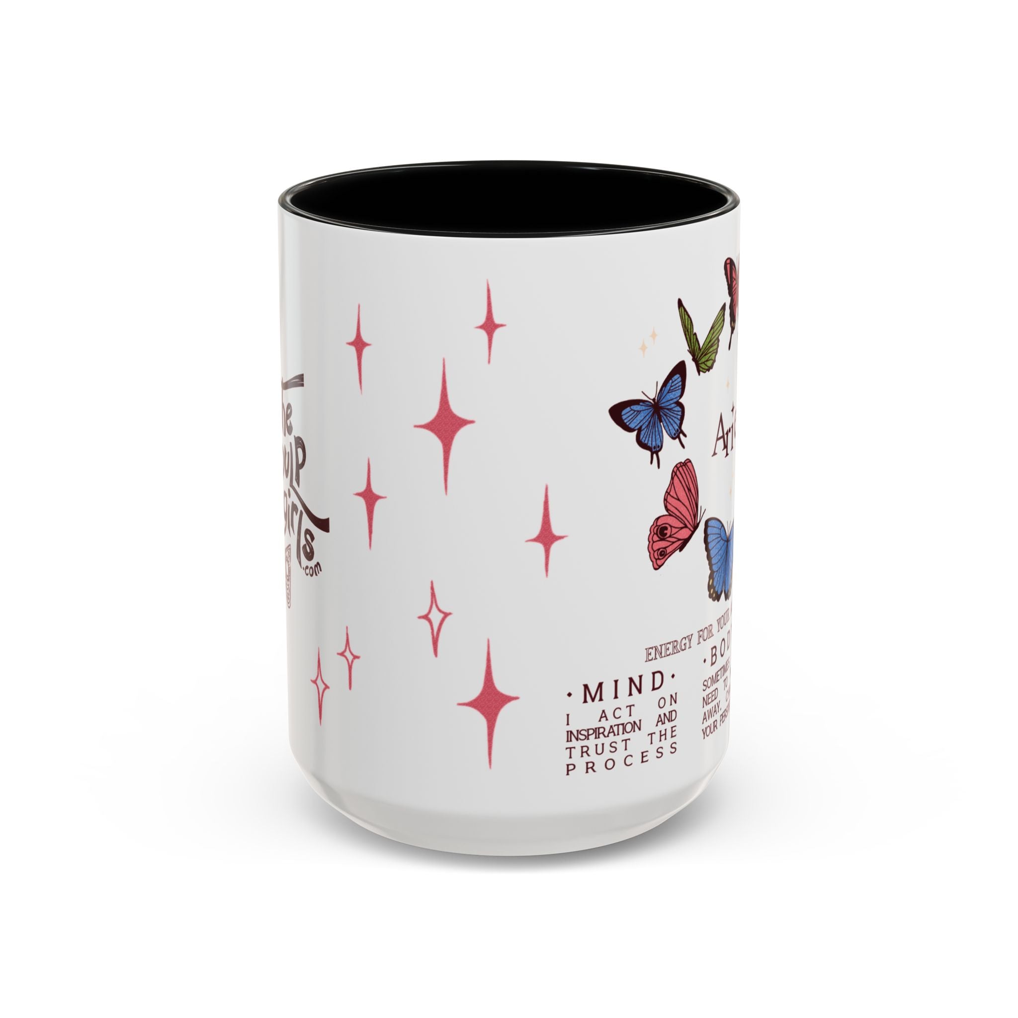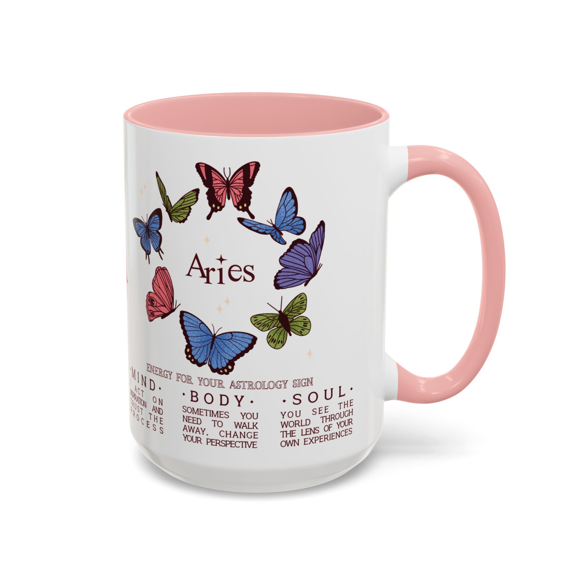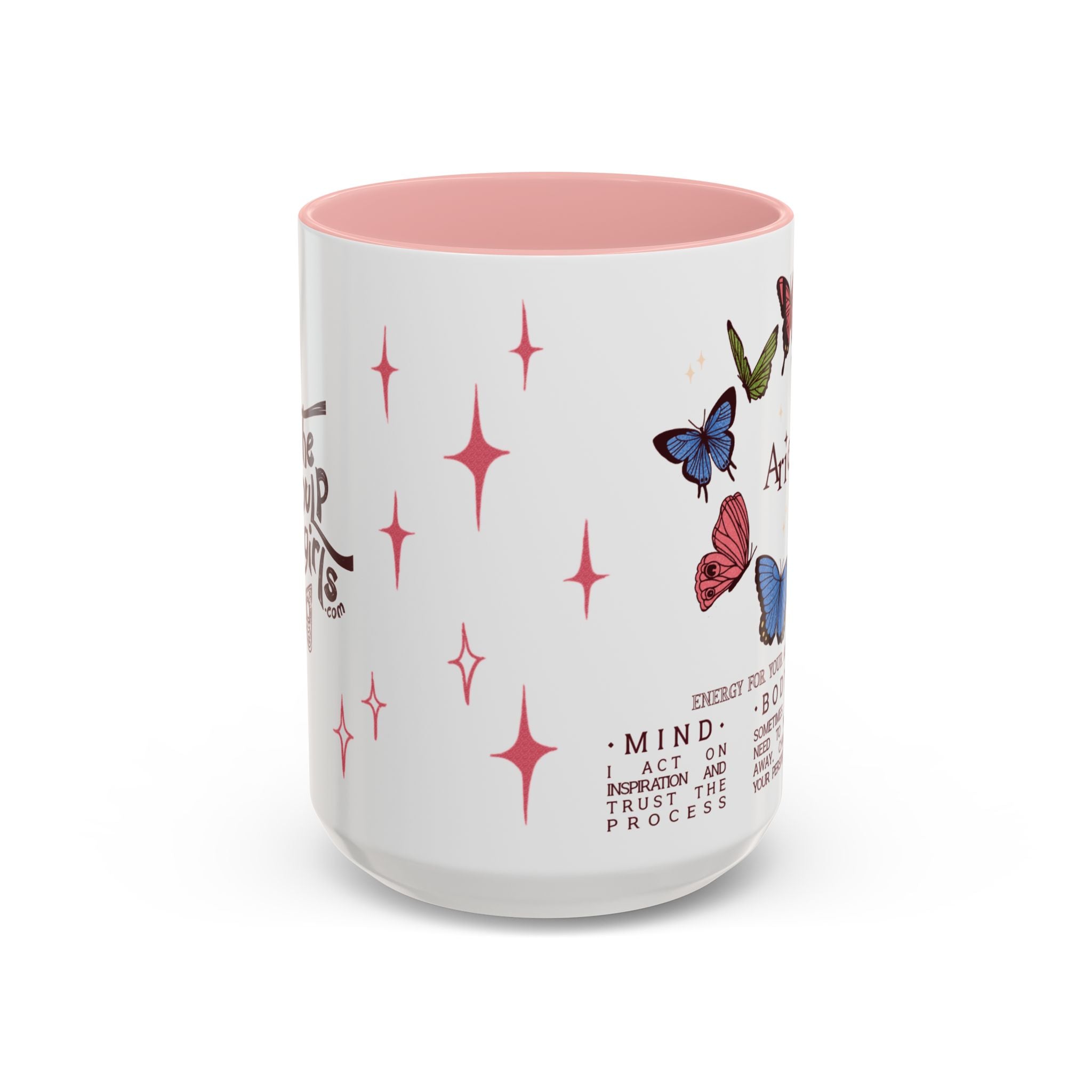 Attention all Aries darlings! This gentle, self-loving mug belongs in your daily rotation! Featuring gorgeous butterflies framing your sign name, the star of this show is the soft little reminders to take good care of yourself--mind, body, and soul. Whether you're looking for a lovely gift or treating yourself, this is your mug!