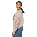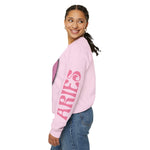 Aries darlings! Fall in ~love~ with our love themed dog astrology merch. Featuring the sign name along one sleeve, and your sign & some hearts along the other sleeve.