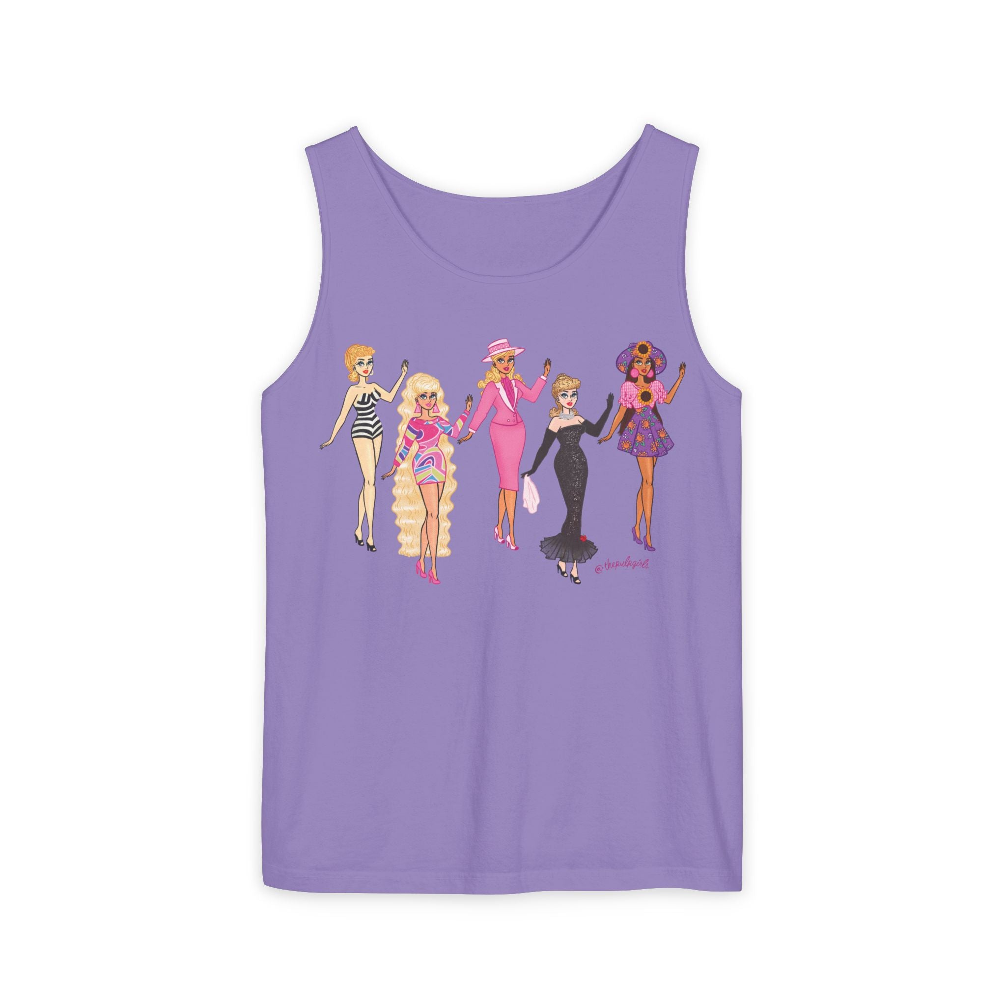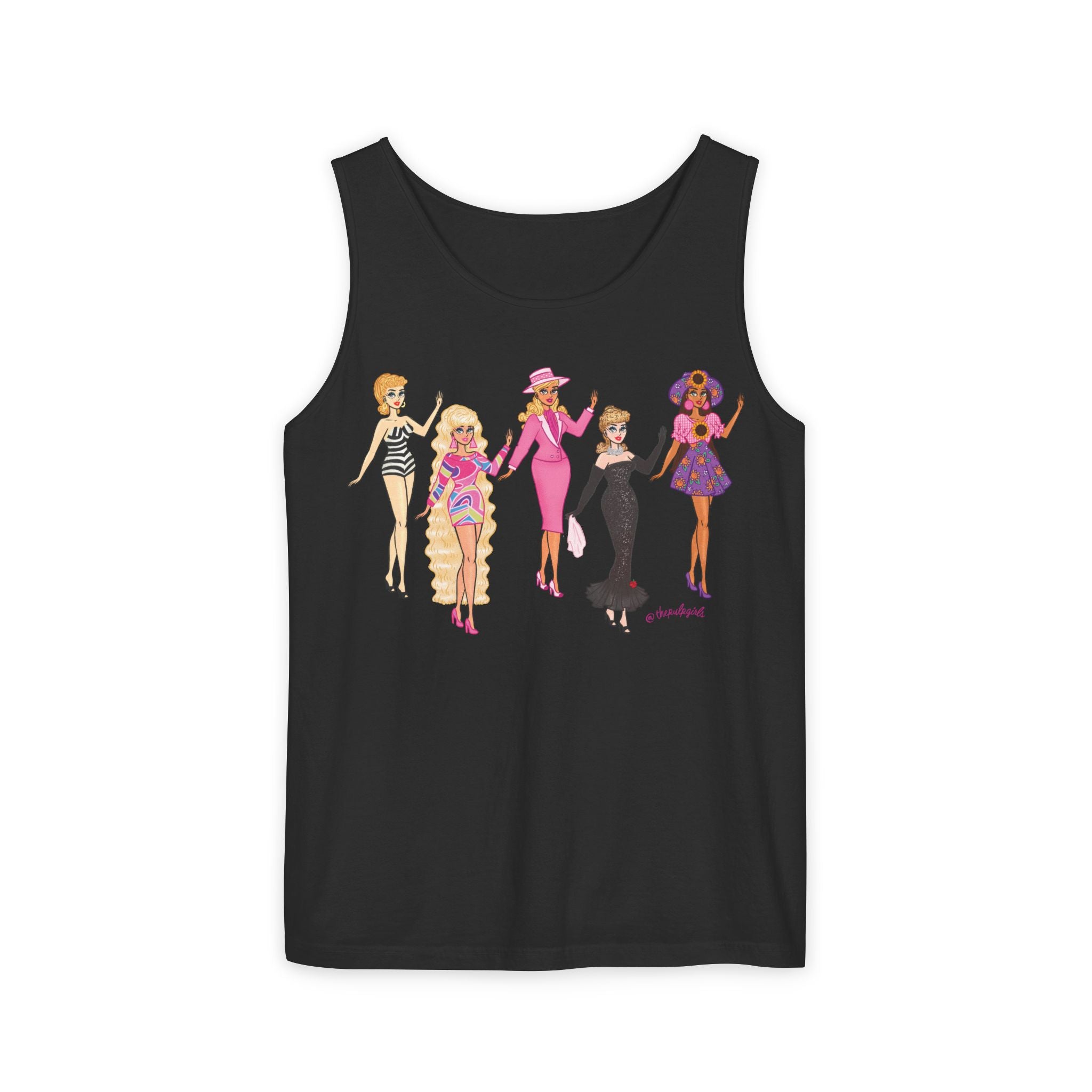 True Barbie babes are gonna need this super comfy, soft tank top! Featuring Pulp fan art drawings of classic Barbies on the front, this super soft tank top is perfect for all doll fans and barbiecore lovers!