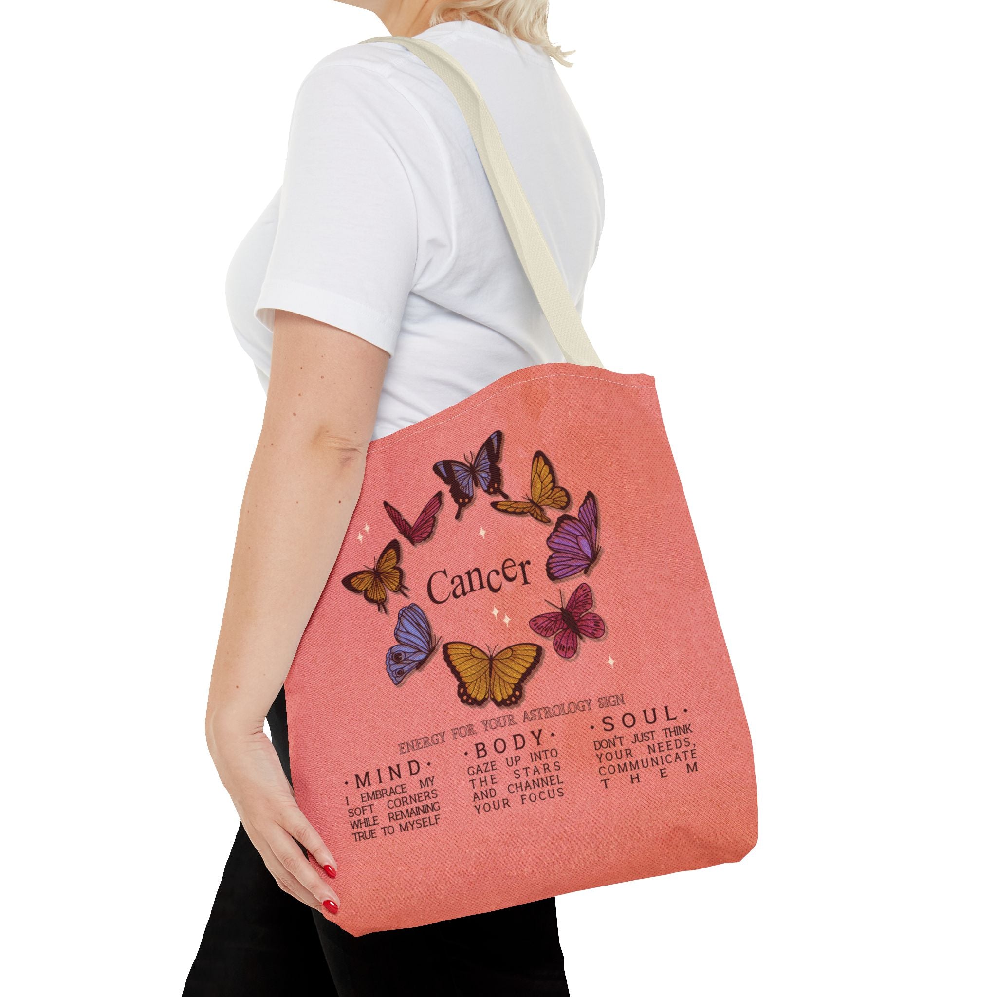 Cancer sweethearts! Carry some reminders for your own life with this charming tote bag featuring cute butterflies and inspiring words of wisdom for the Cancer mind, body, and soul. Ideal for carrying essentials, this tote bag is a must-have for Cancer individuals looking to showcase their zodiac pride. Great for gifting during birthdays, astrology-themed events, or for everyday use.