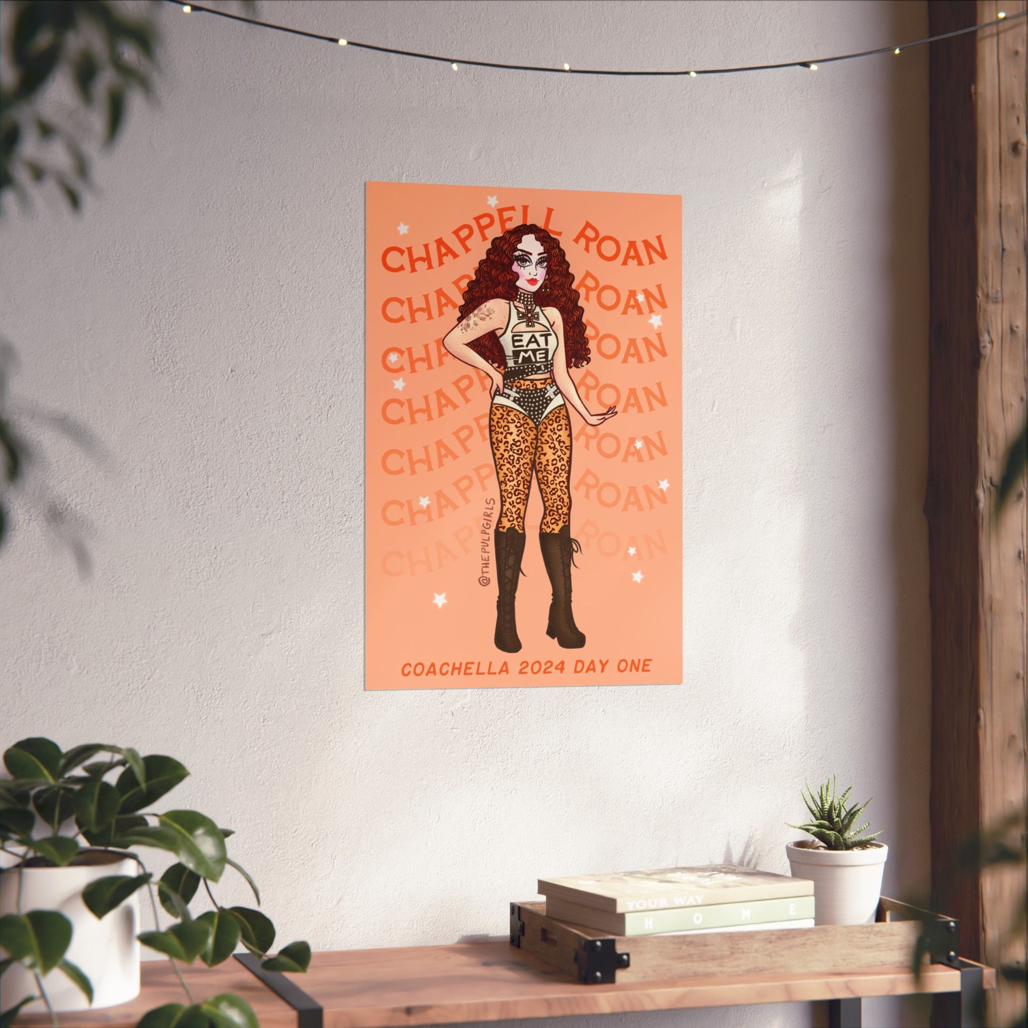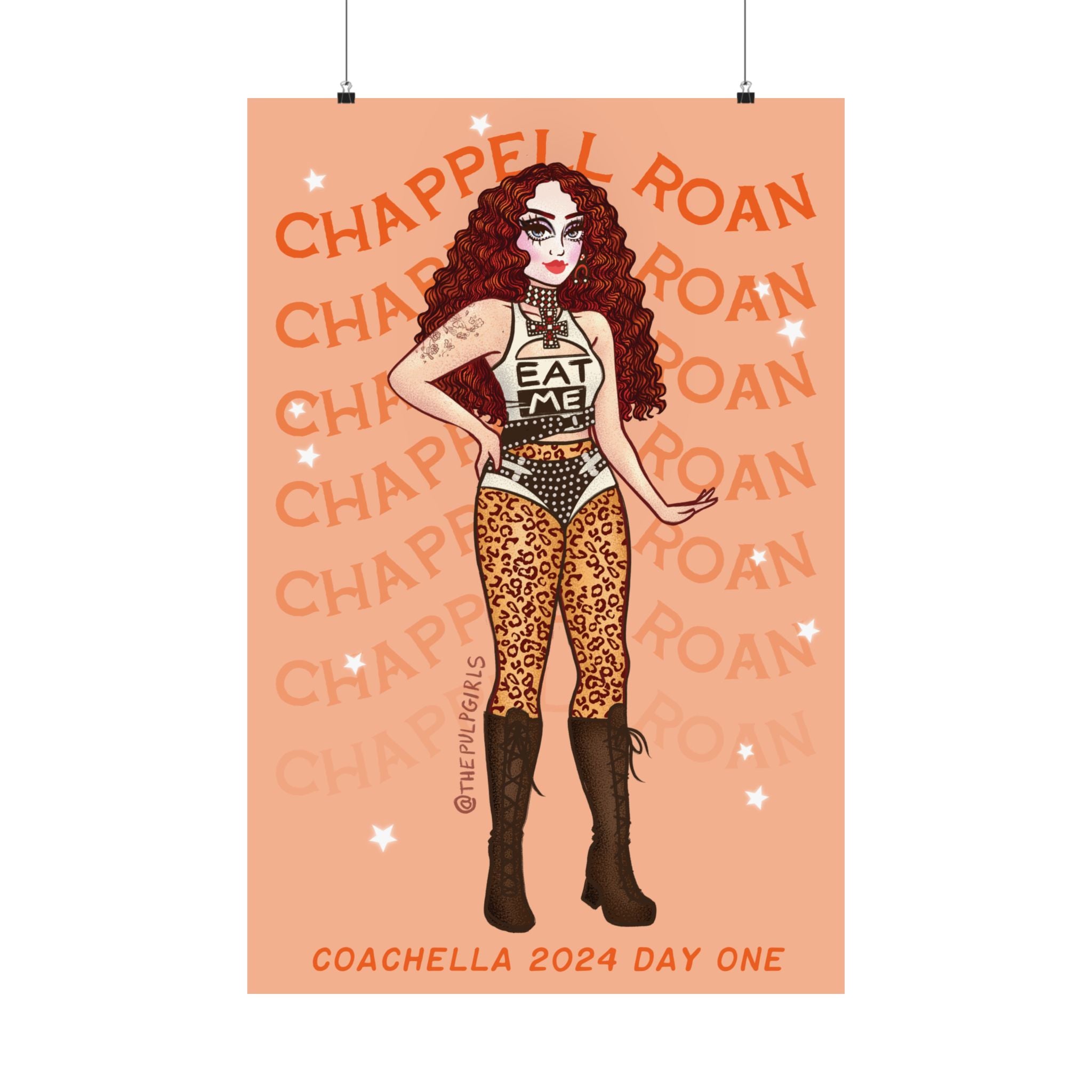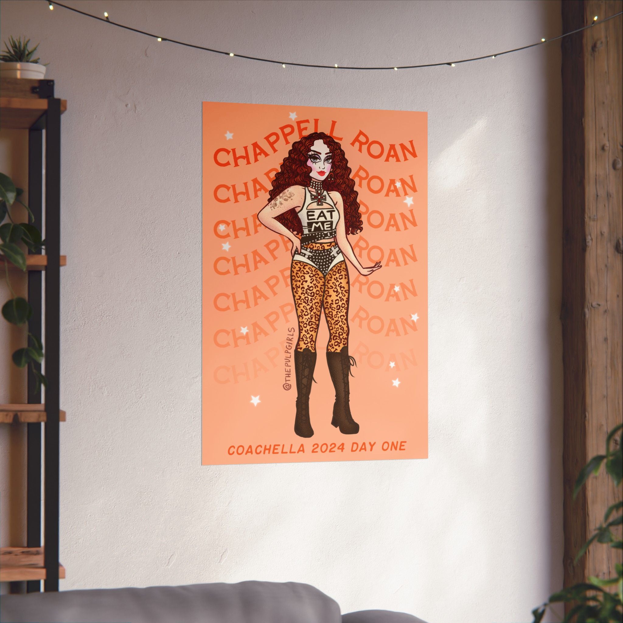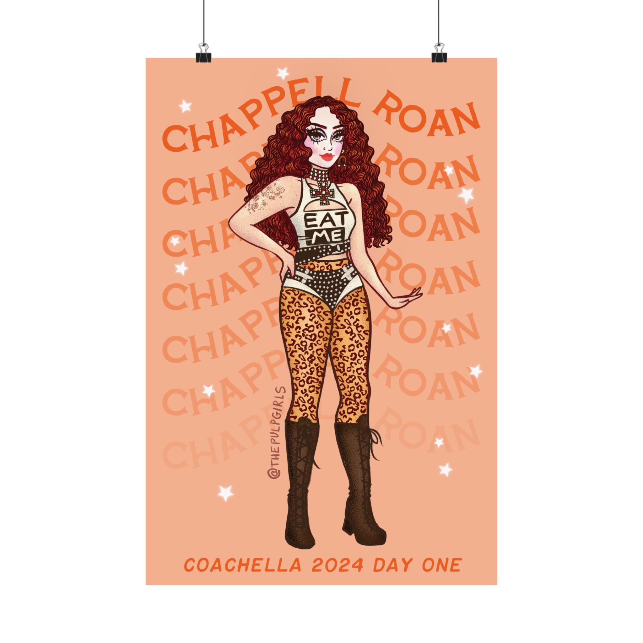 THIS IS CHAPPELL ROAN'S WORLD, WE'RE JUST LIVING IN IT! So you should probably decorate your space with some gorgeous Pulp fan art of iconic looks from our favorite Midwest Princess. This one features her Eat Me look from her Coachella 2024 Day One performance! Get one poster, or get a bunch featuring your favorite looks!