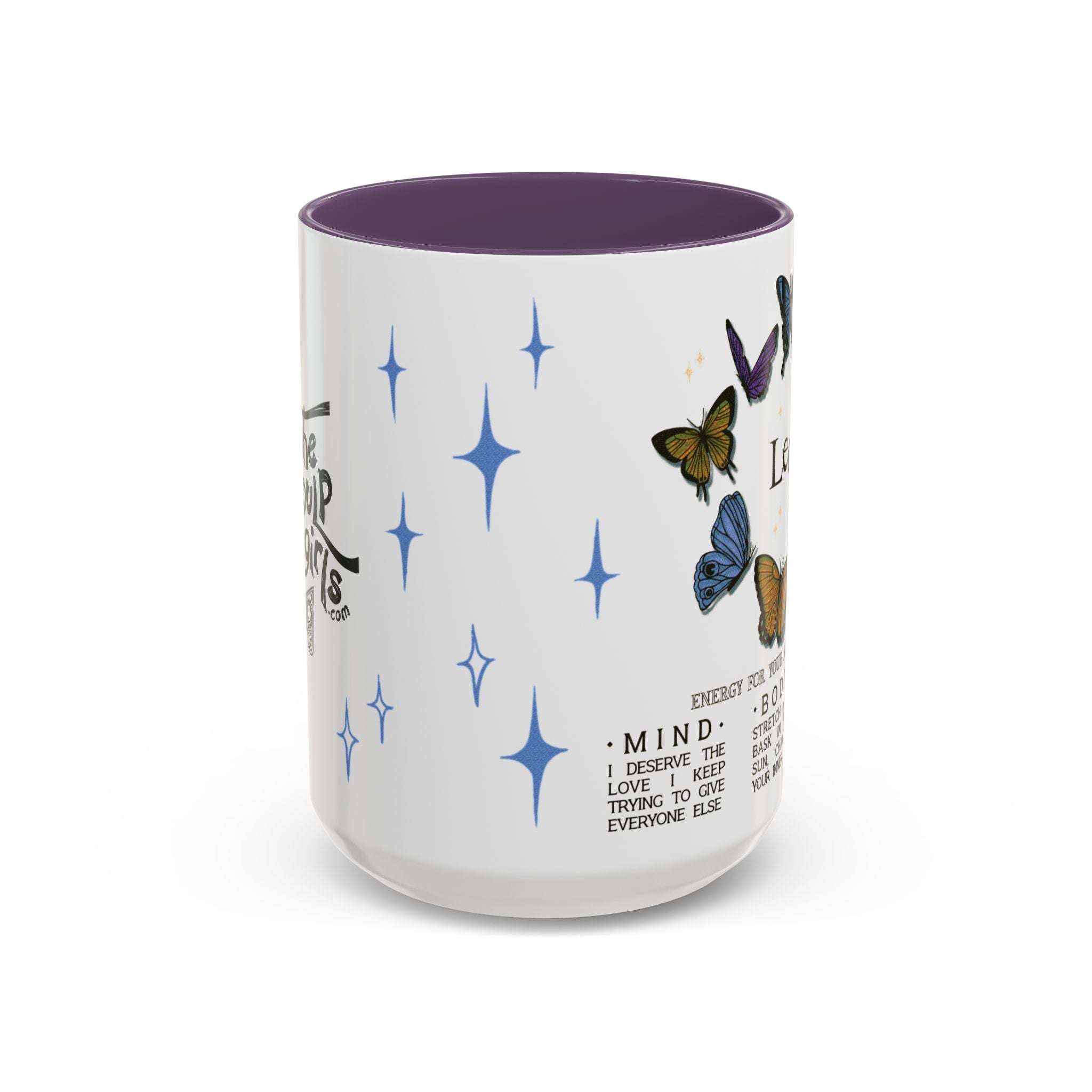 Attention all Leo darlings! This gentle, self-loving mug belongs in your daily rotation! Featuring gorgeous butterflies framing your sign name, the star of this show is the soft little reminders to take good care of yourself--mind, body, and soul. Whether you're looking for a lovely gift or treating yourself, this is your mug!