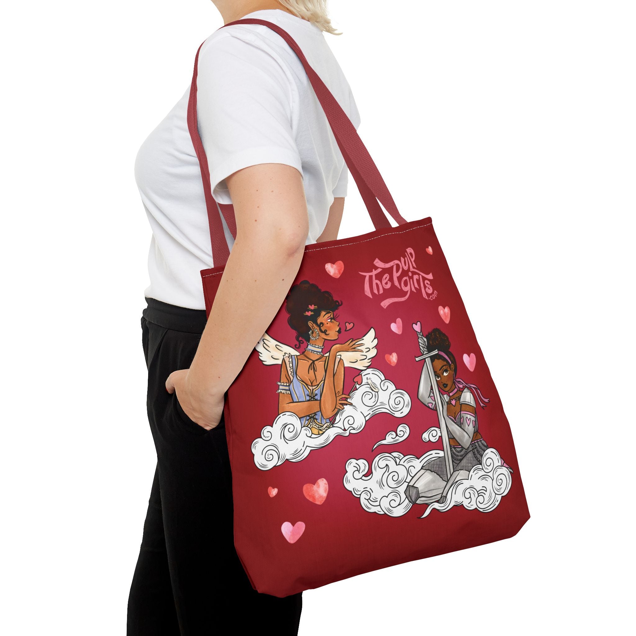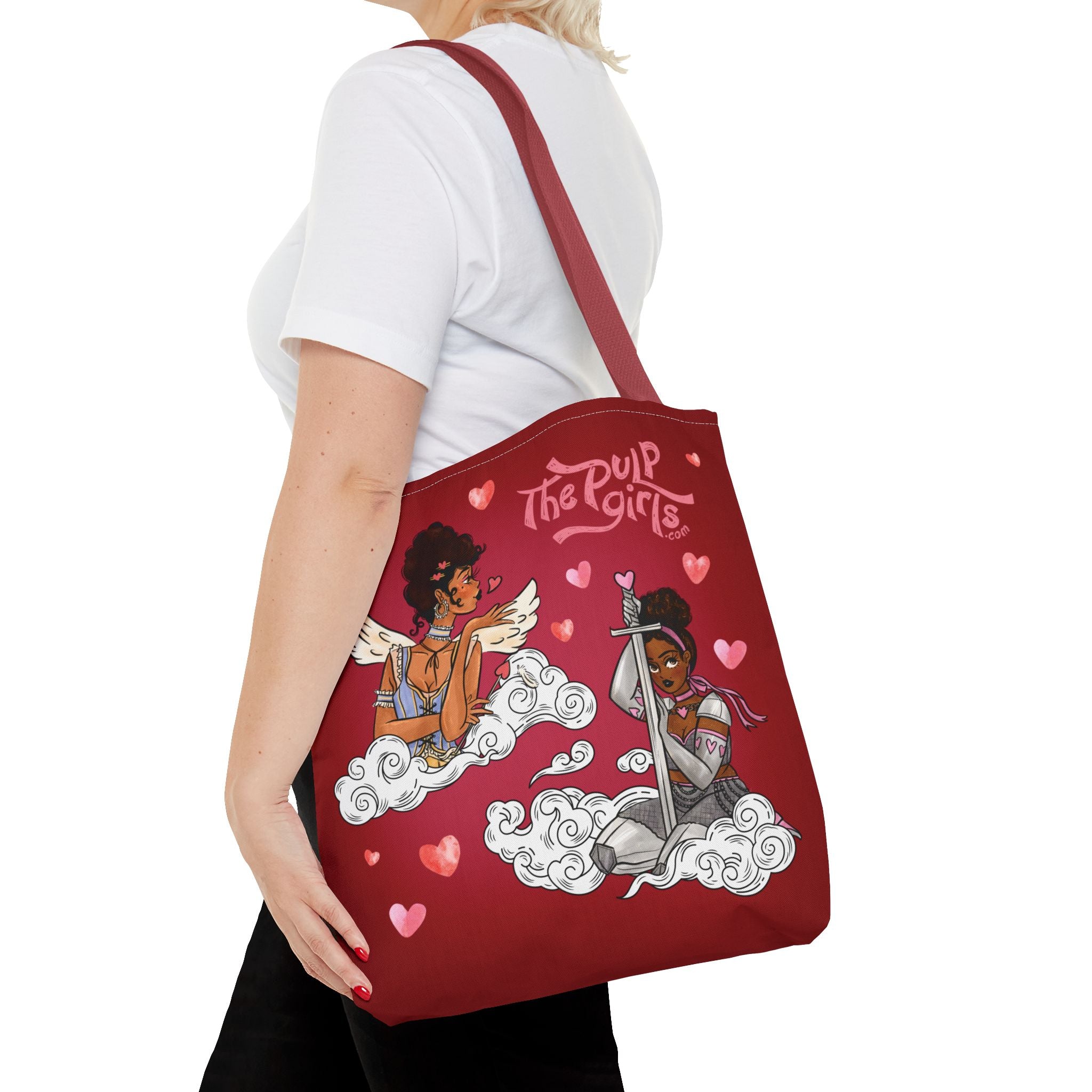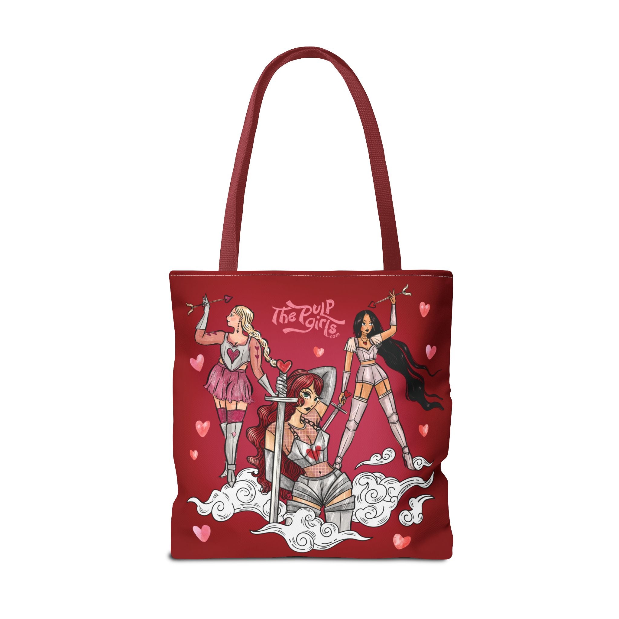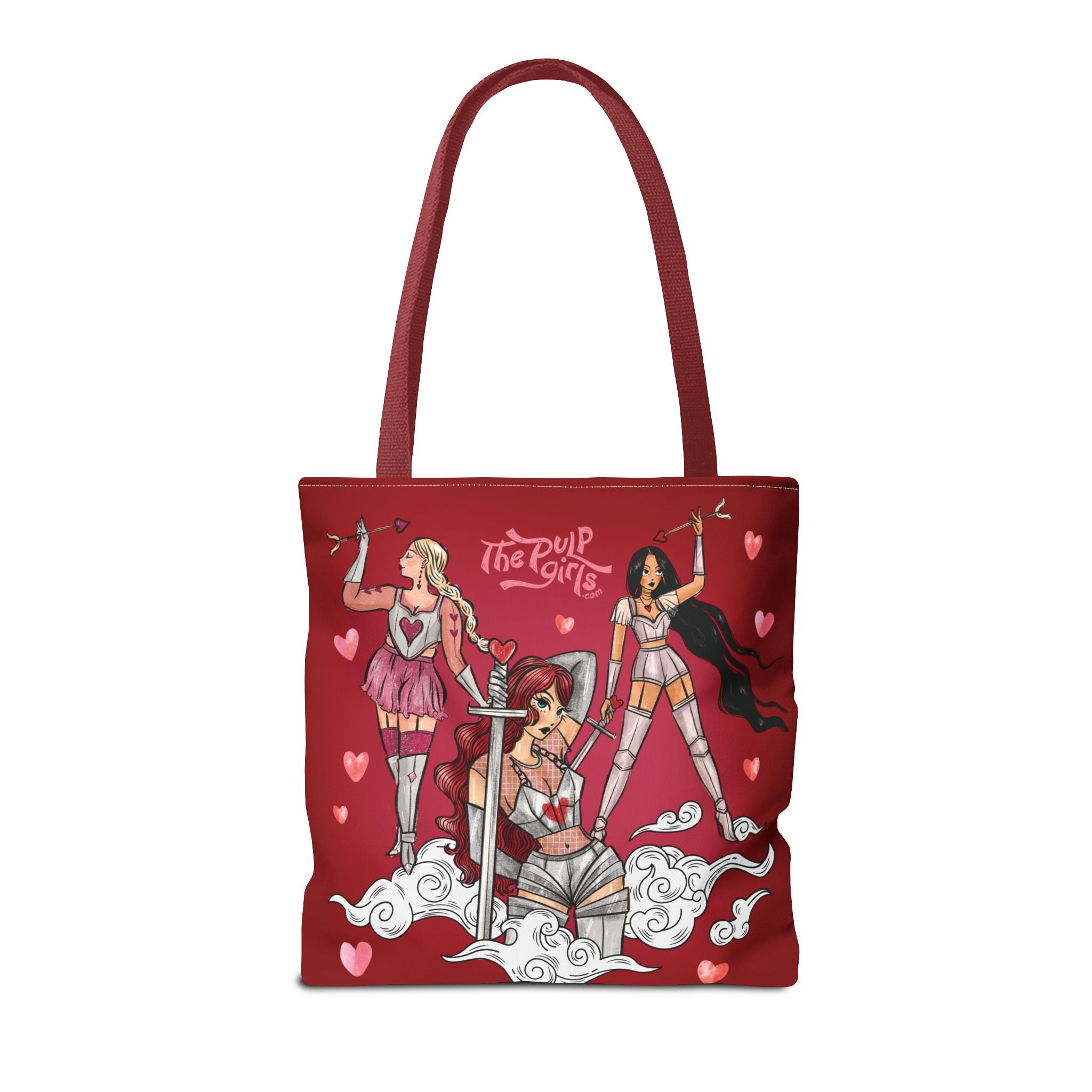 Are you a warrior for all things love and beauty? This Valentine-inspired Love Warriors Tote Bag is totally for you! Featuring five gorgeous Pulp ladies in various Cupid-knight looks, this durable, heavy-duty tote is absolutely going to be the cutest addition to your closet. Ideal for those who appreciate thoughtful design and want to stand out from the crowd. This tote bag is relevant for gift-giving occasions like birthdays, holidays, or simply to treat yourself!