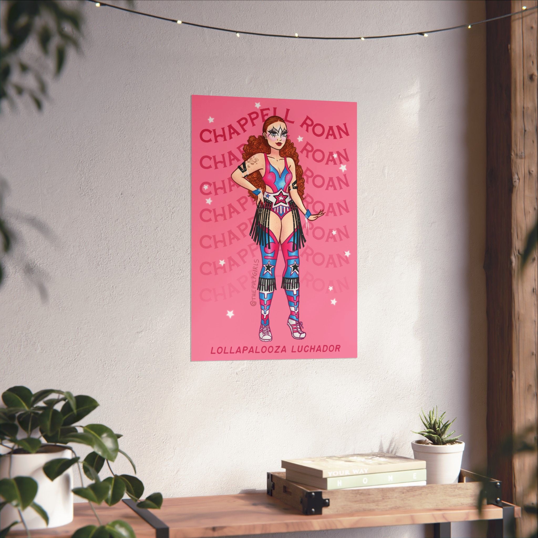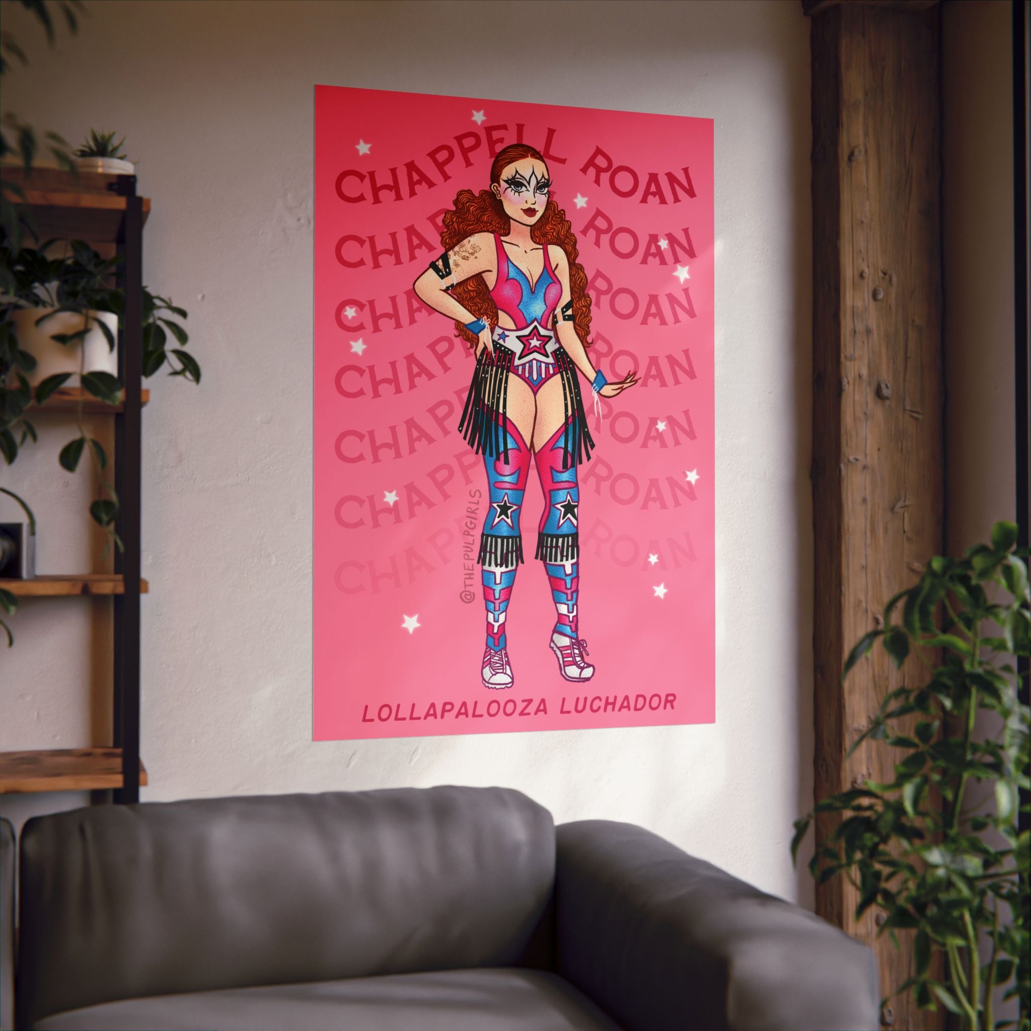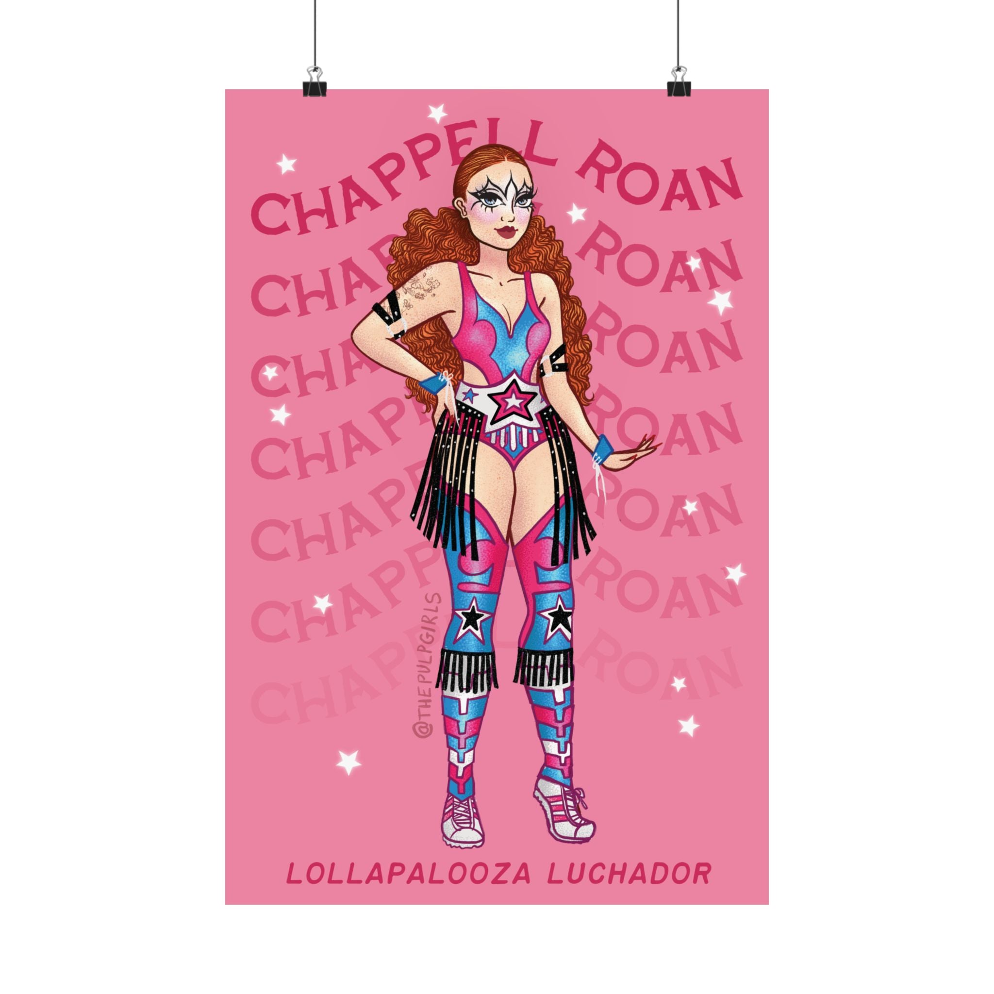 THIS IS CHAPPELL ROAN'S WORLD, WE'RE JUST LIVING IN IT! So you should probably decorate your space with some gorgeous Pulp fan art of iconic looks from our favorite Midwest Princess. This one features her iconic Lucha Libre costume from Lollapalooza! Get one poster, or get a bunch featuring your favorite looks!
