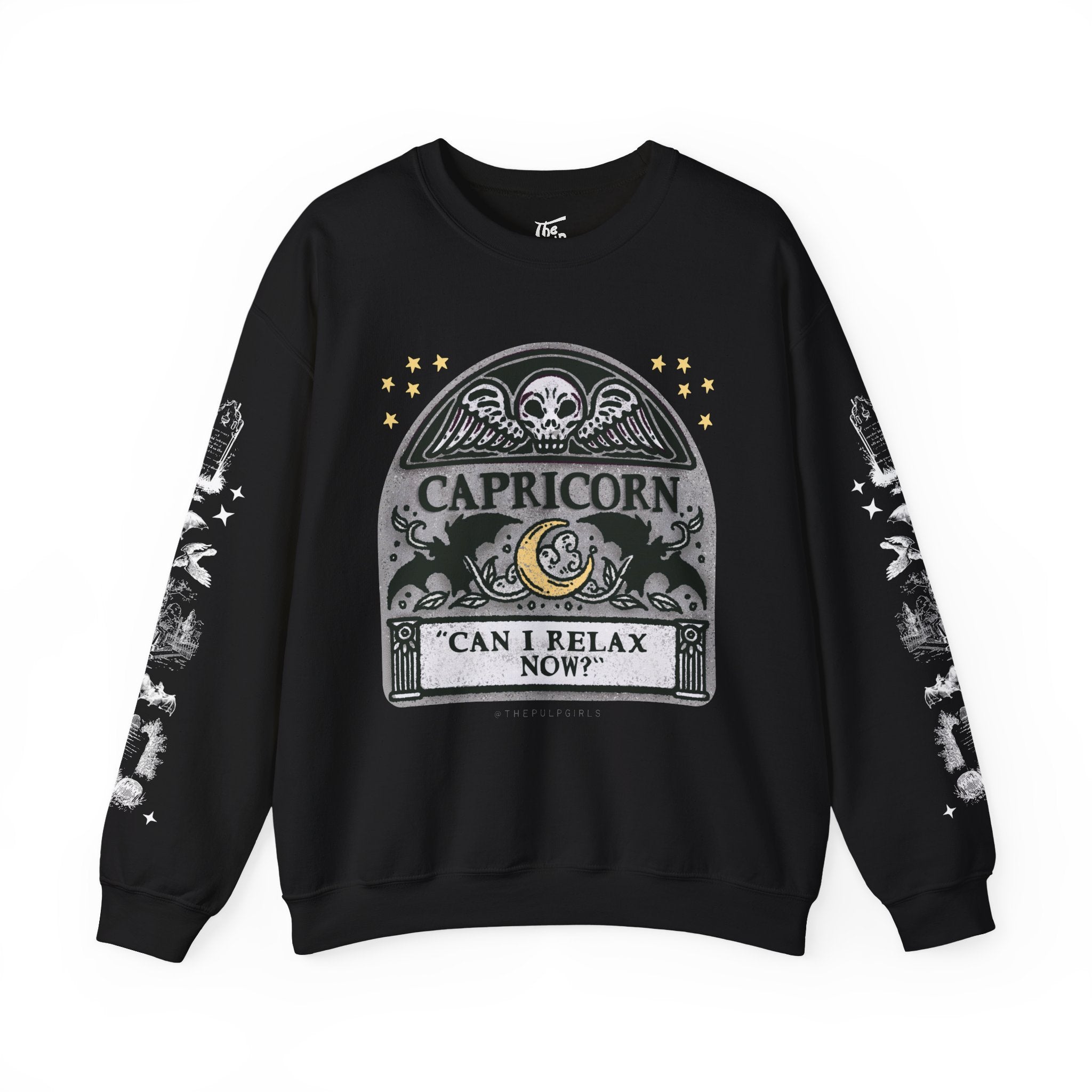 The perfect words for a ghoul's gravestone. Who says Halloween is once a year?! Wear this spooky epitaph crewneck all year round and let em know whats up.