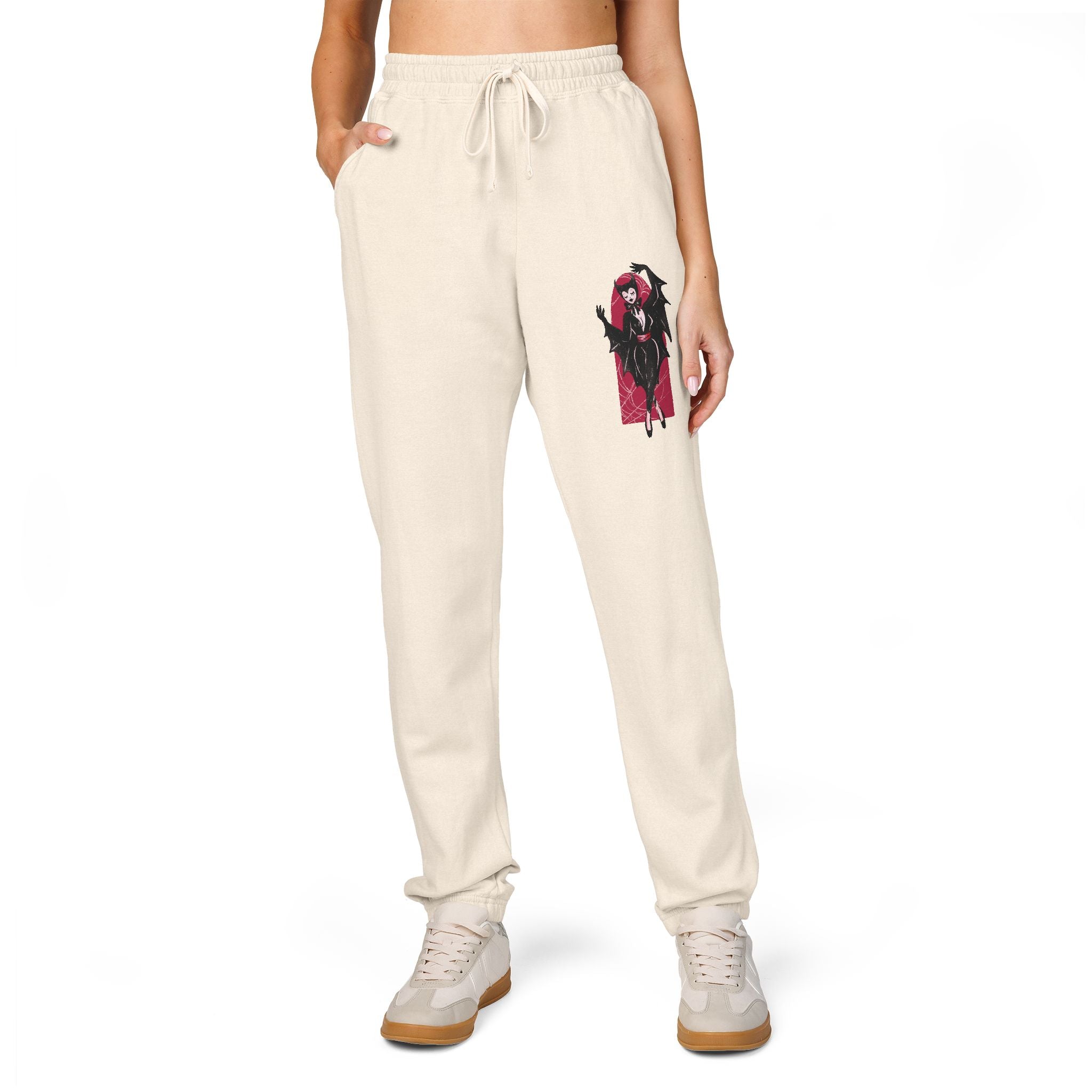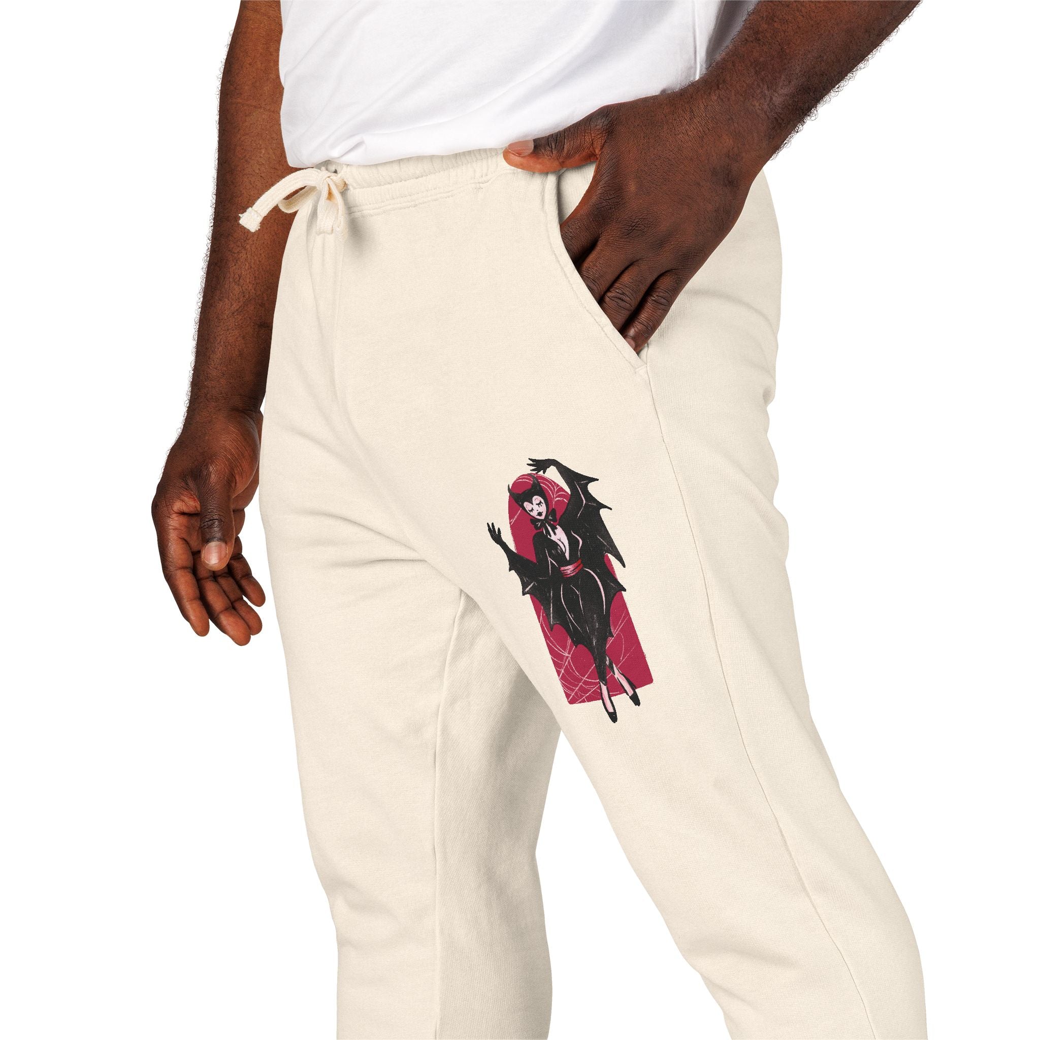 Trick or treat! These lightweight fleece sweatpants feature a little Pulp retro pinup vampire girl on super soft, retro-feeling cotton. Simply perfect for any spooky-loving cutie out there!