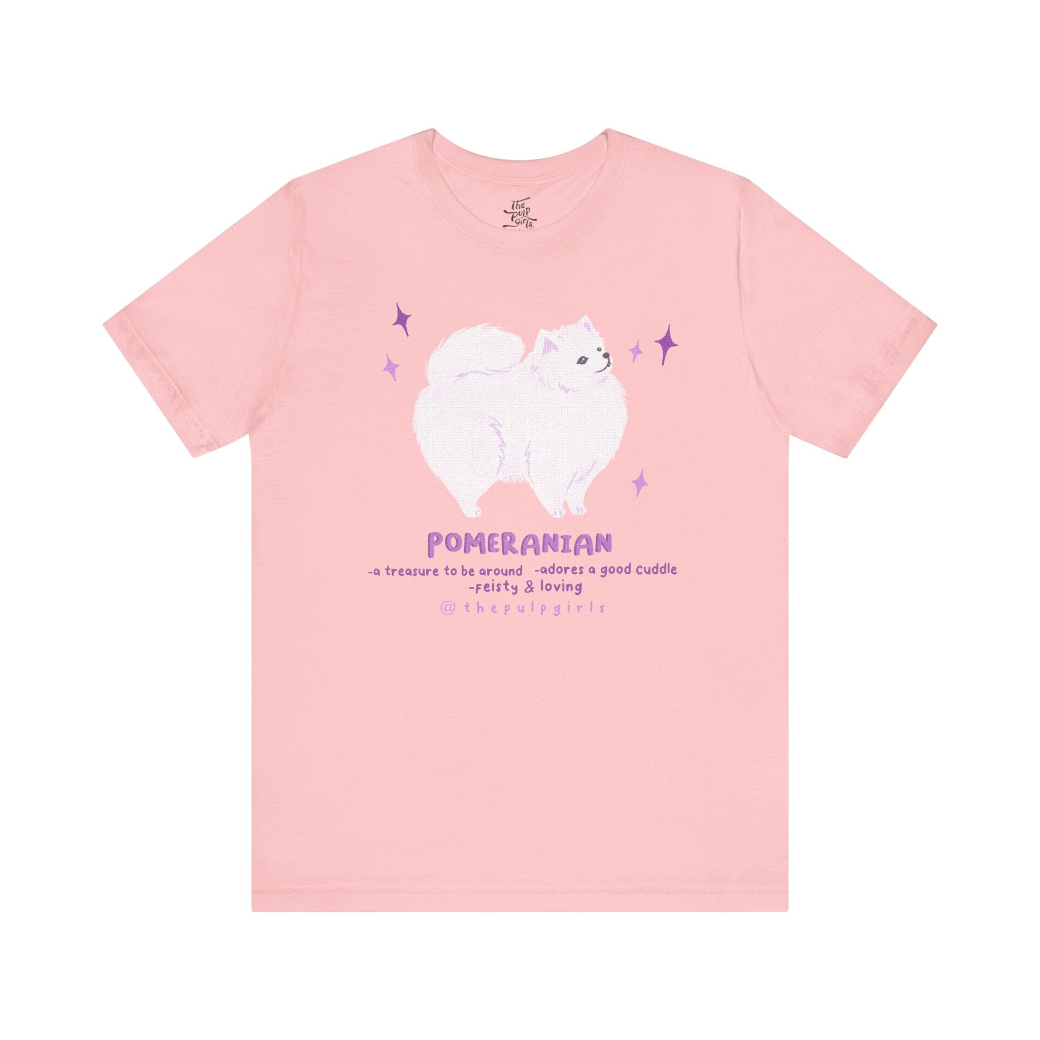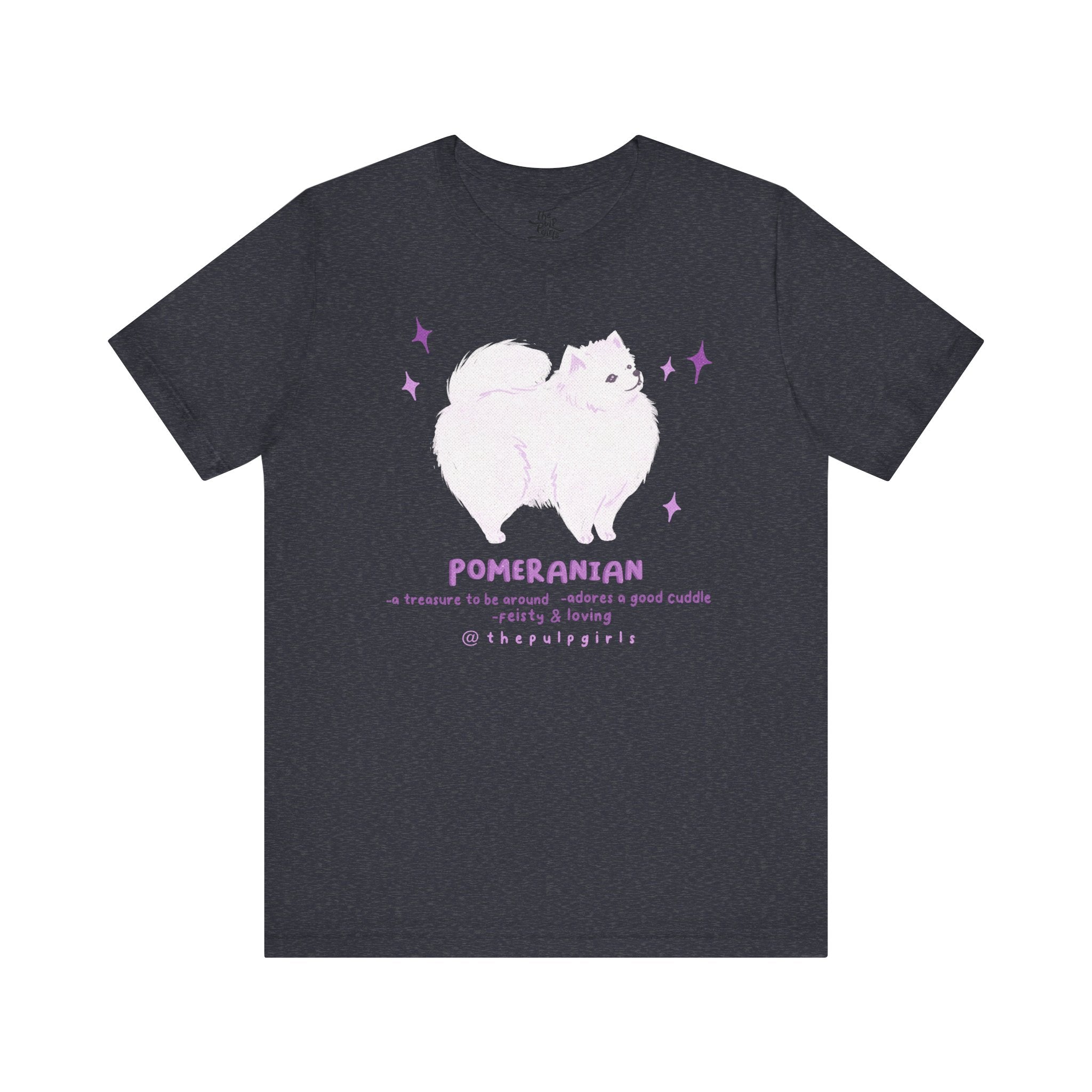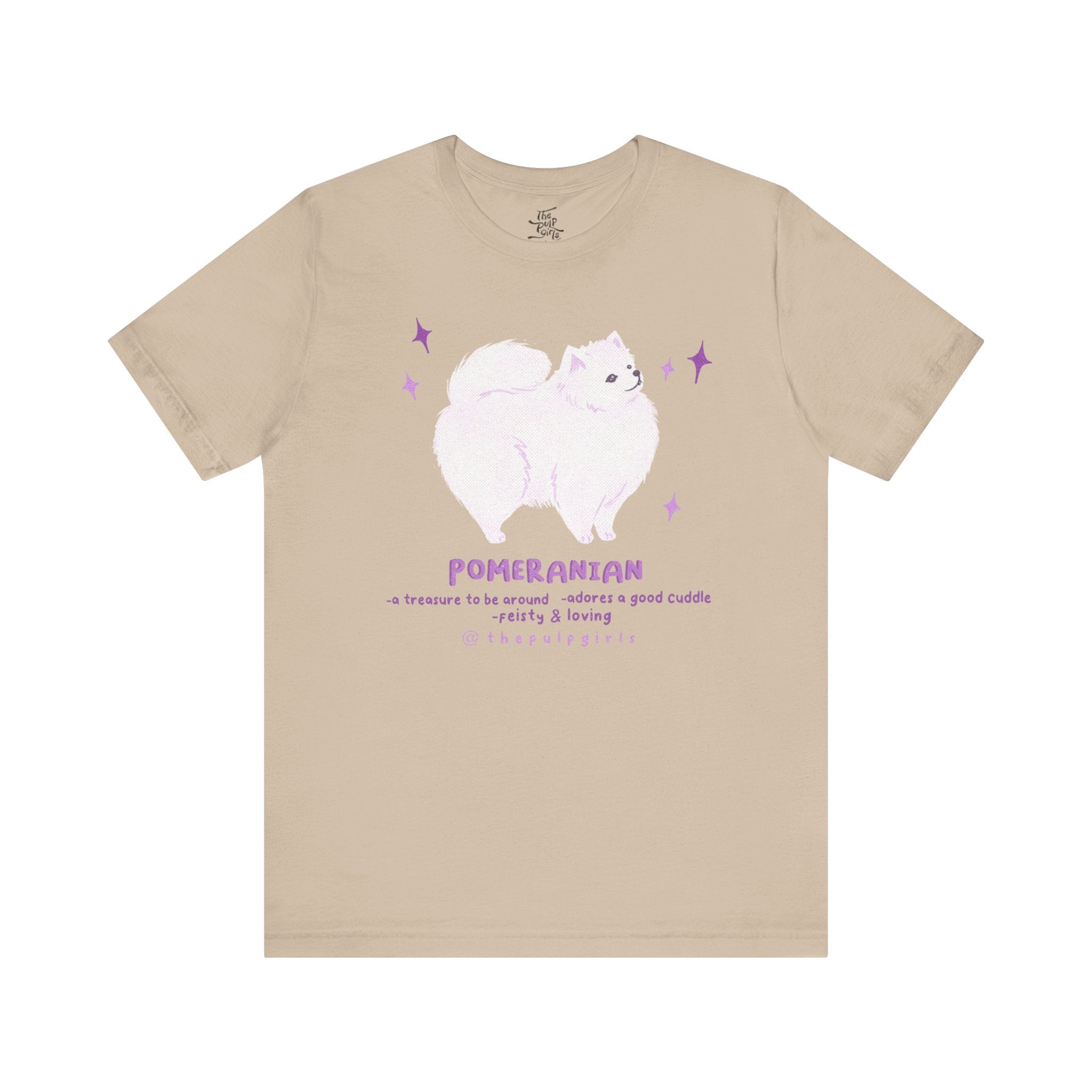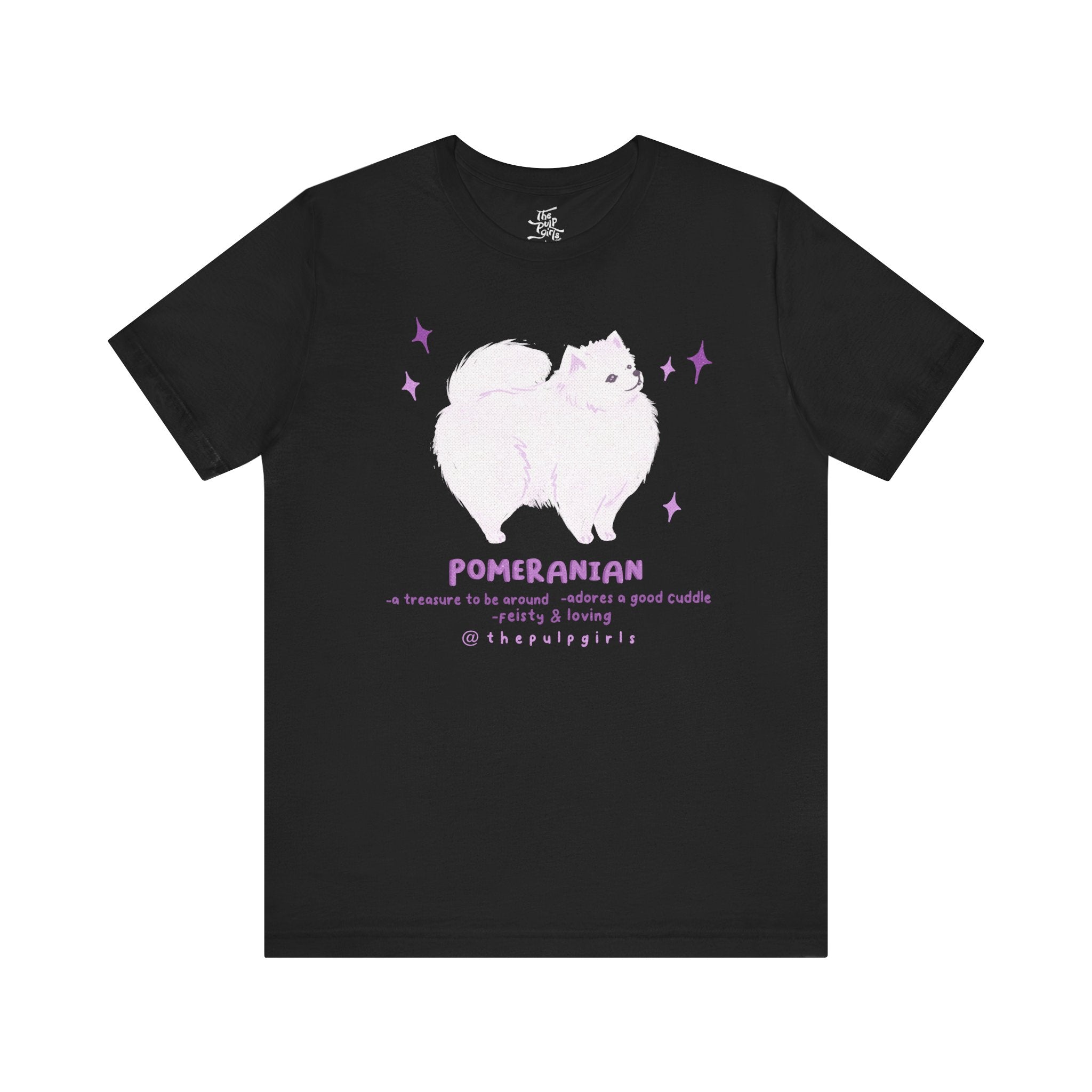 The perfect tee for anyone who loves Pomeranians! 🦮 Featuring a cute Pulp illustration and some fun "facts" about the breed.