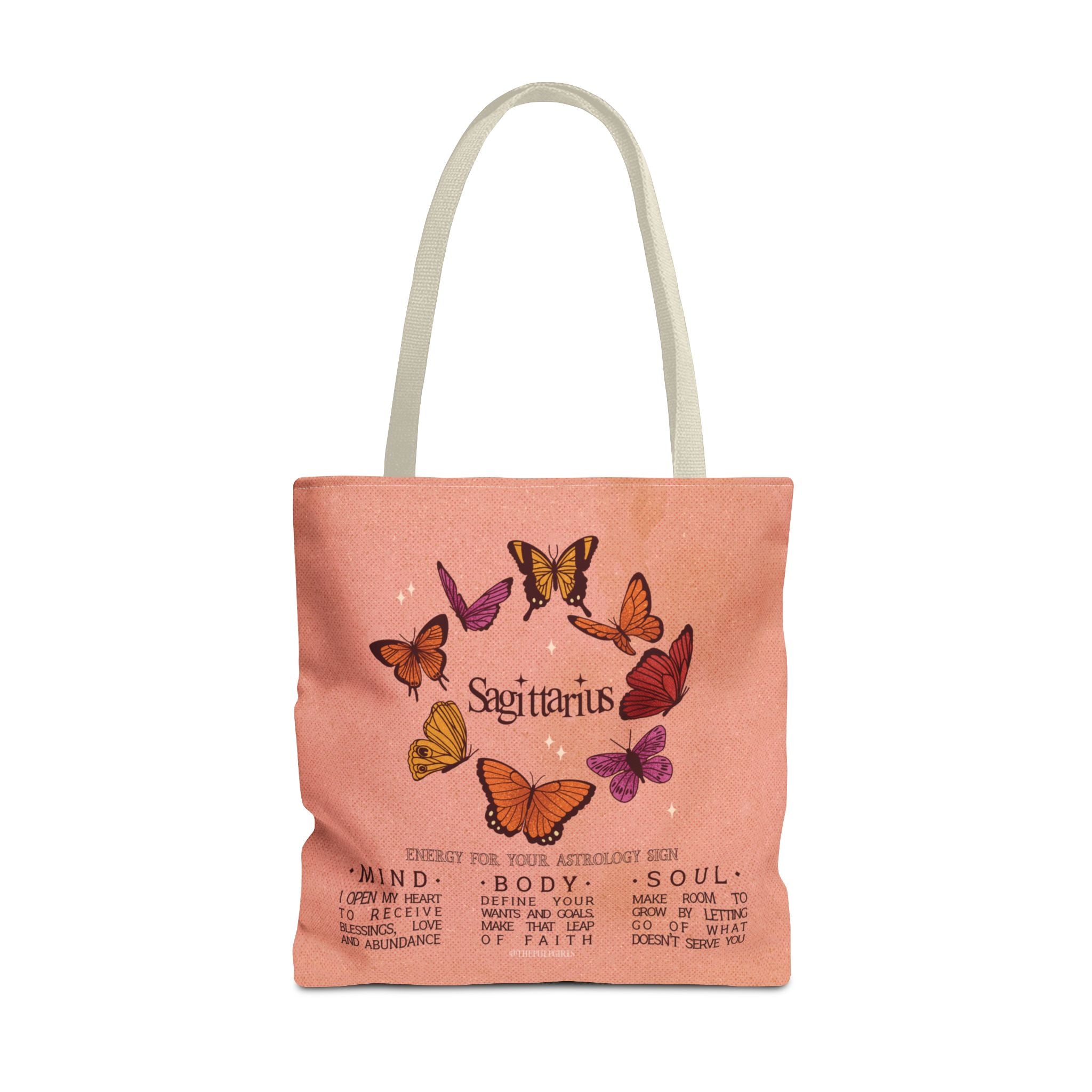 Sagittarius sweethearts! Carry some reminders for your own life with this charming tote bag featuring cute butterflies and inspiring words of wisdom for the Sagittarius mind, body, and soul. Ideal for carrying essentials, this tote bag is a must-have for Saggi individuals looking to showcase their zodiac pride. Great for gifting during birthdays, astrology-themed events, or for everyday use.