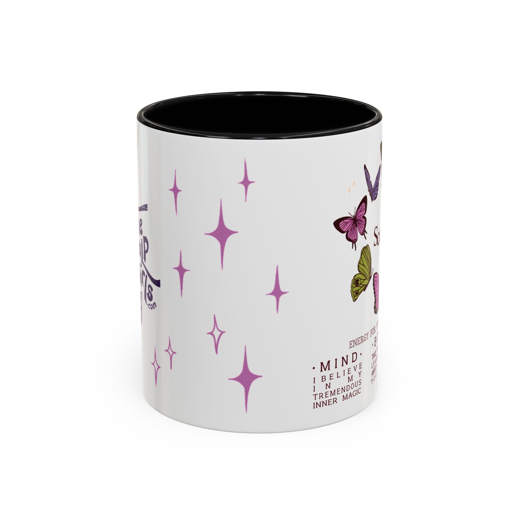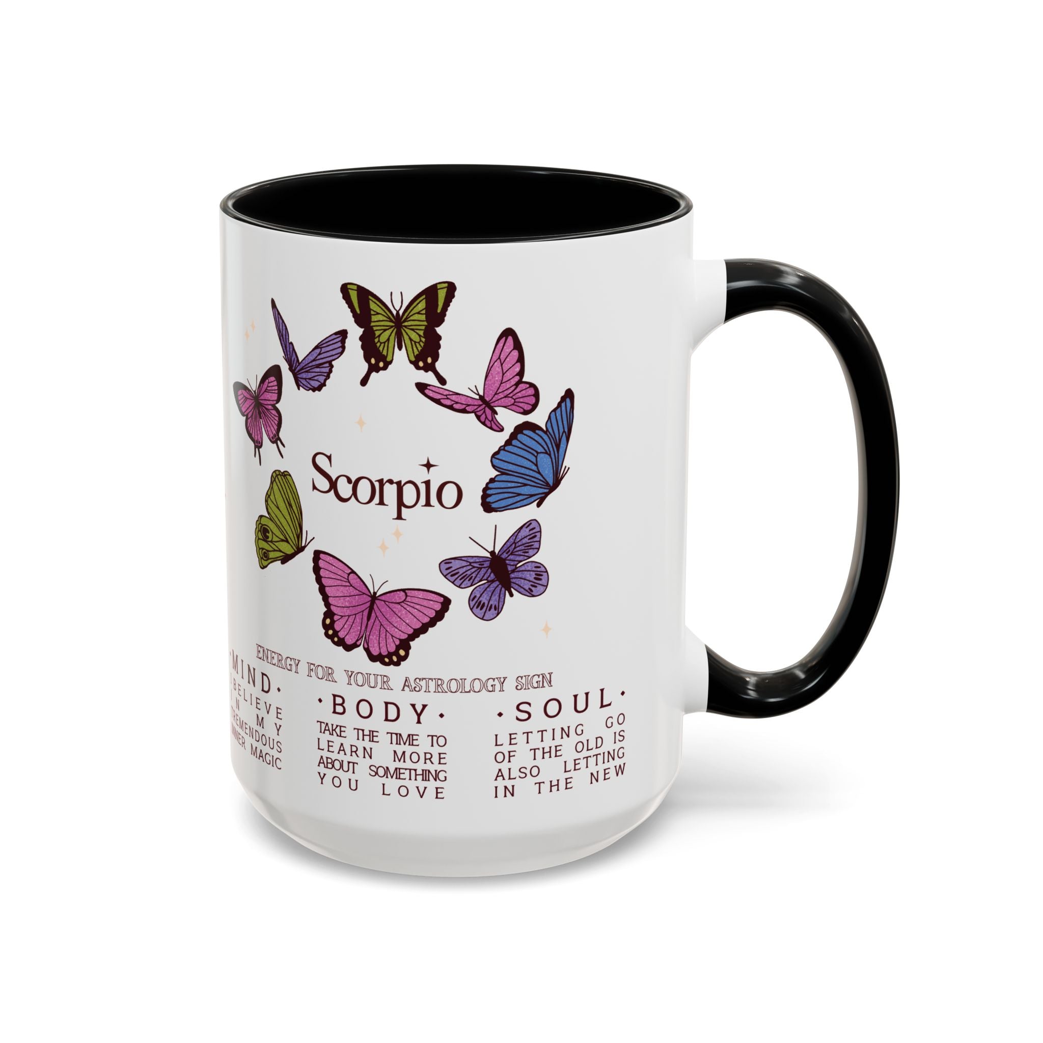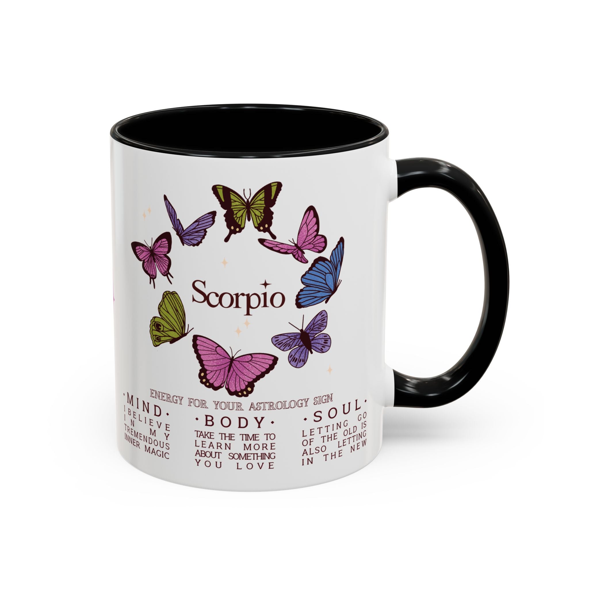 Attention all Scorpio darlings! This gentle, self-loving mug belongs in your daily rotation! Featuring gorgeous butterflies framing your sign name, the star of this show is the soft little reminders to take good care of yourself--mind, body, and soul. Whether you're looking for a lovely gift or treating yourself, this is your mug!