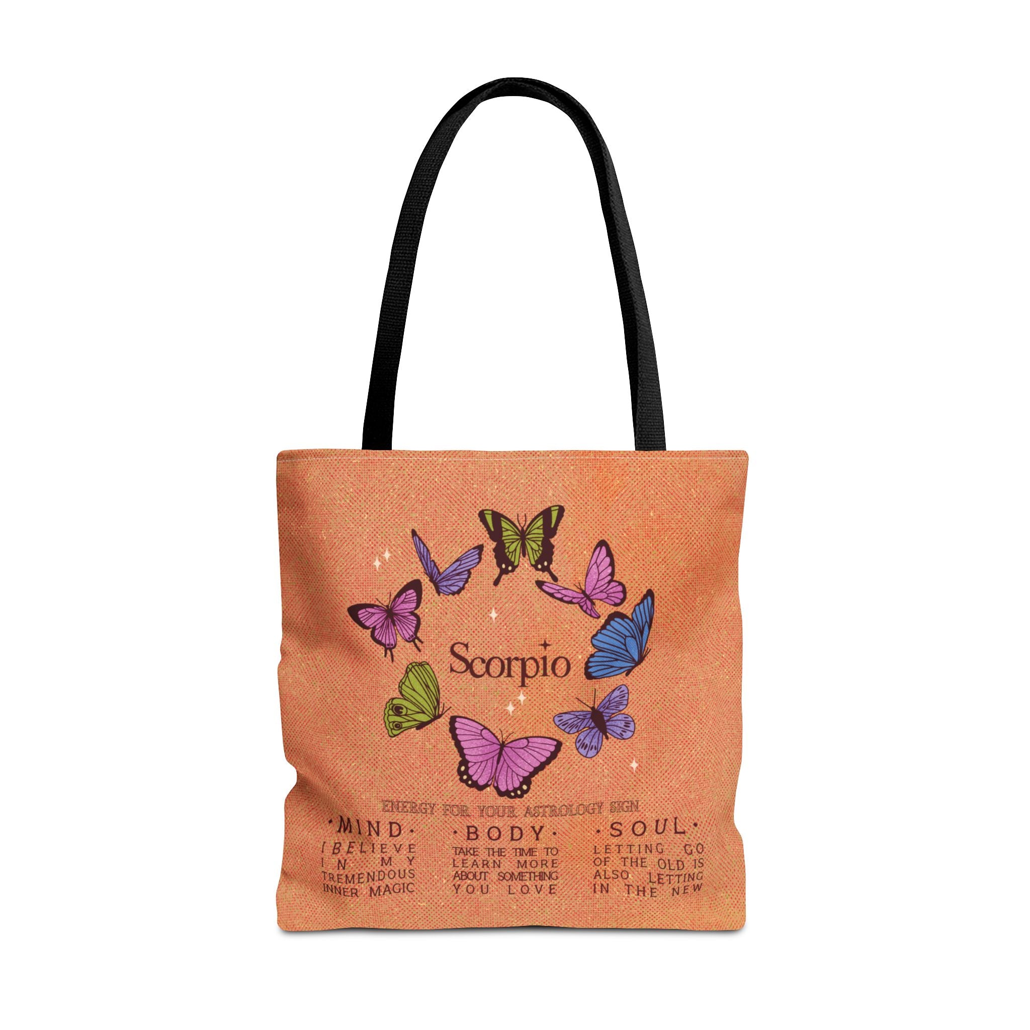 Scorpio sweethearts! Carry some reminders for your own life with this charming tote bag featuring cute butterflies and inspiring words of wisdom for the Scorpio mind, body, and soul. Ideal for carrying essentials, this tote bag is a must-have for Scorpio individuals looking to showcase their zodiac pride. Great for gifting during birthdays, astrology-themed events, or for everyday use.