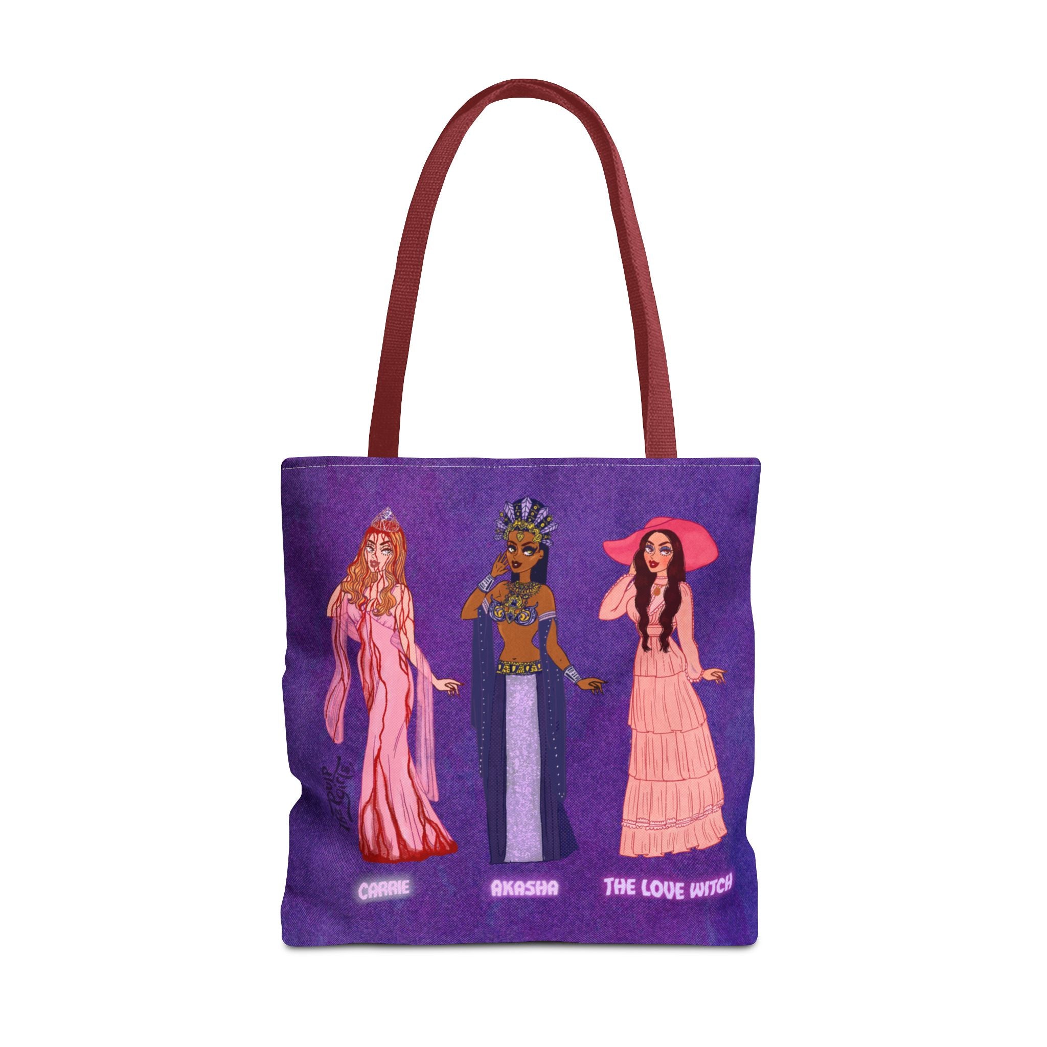 🧡Spooky Queens are forever!🧡 Show off your love for these horror movie icons on this heavy-duty, roomy tote. Featuring Pulp drawings of your favorite monster babes and witch queens alike, along with a black or red handles.