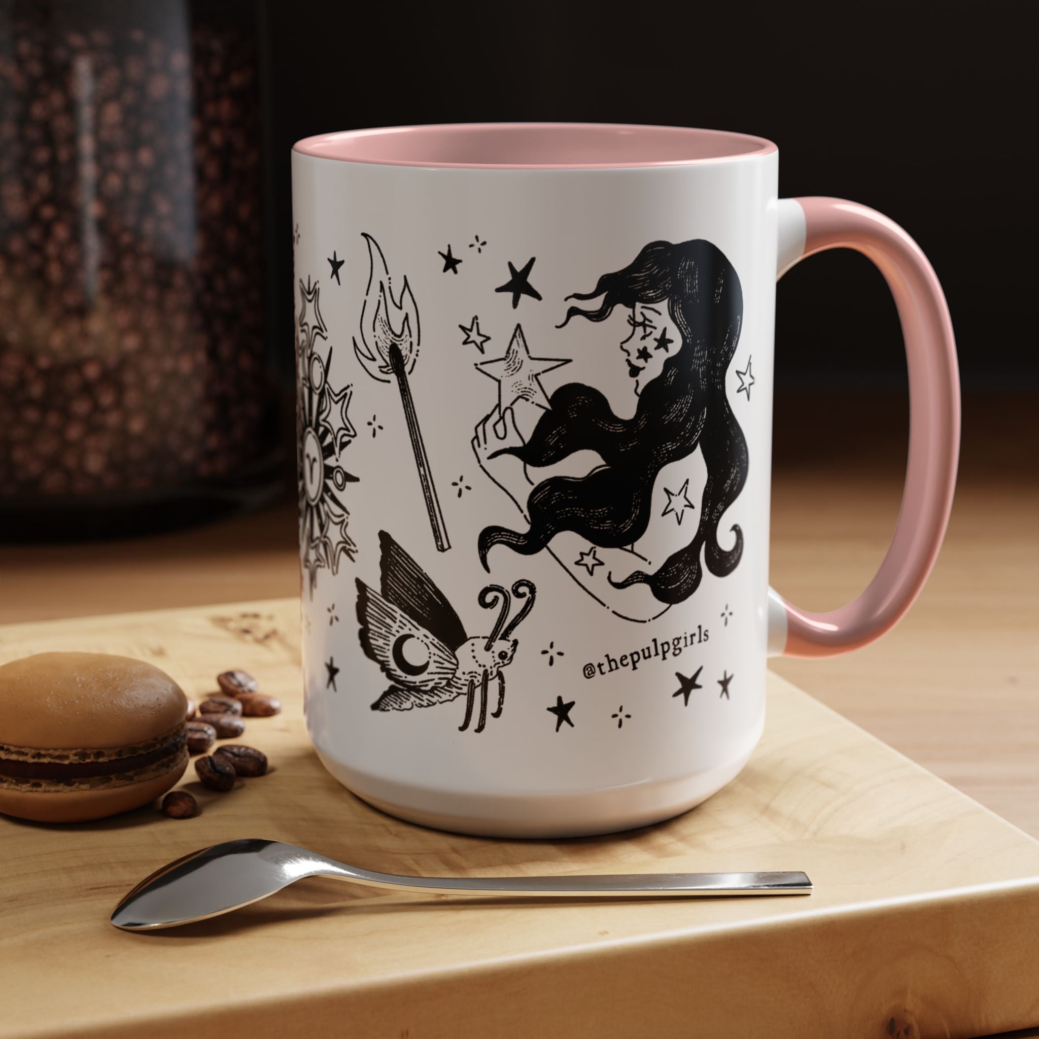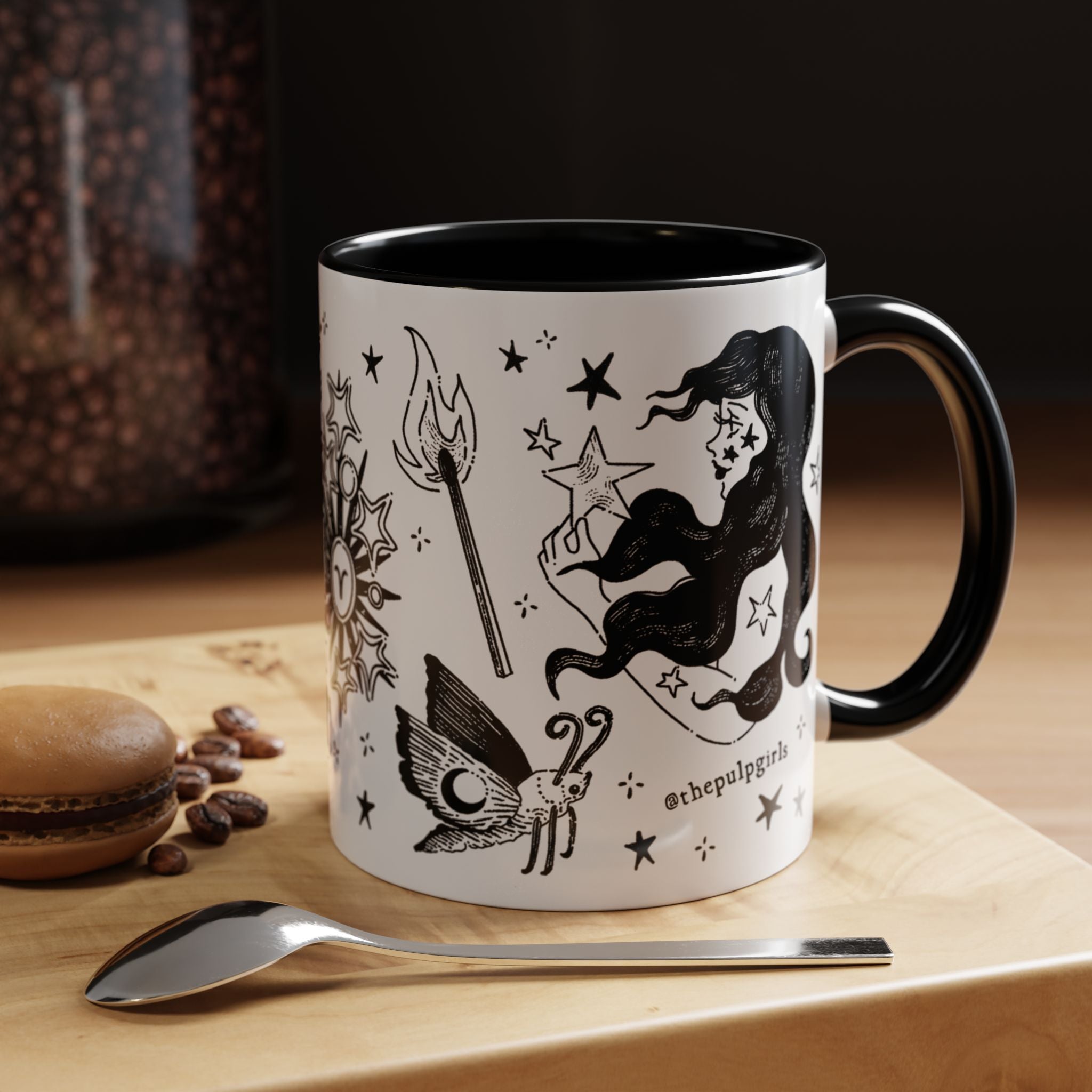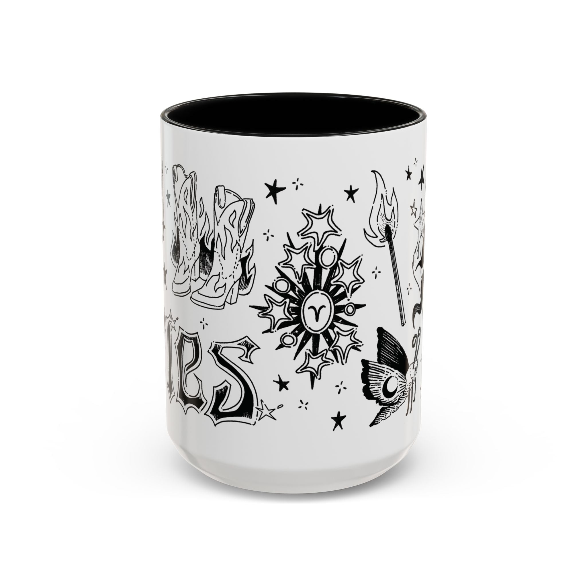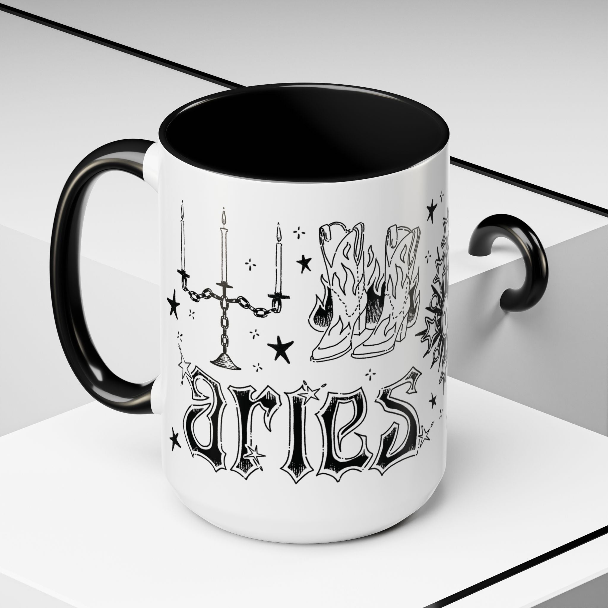 This gorgeous ceramic mug features flash tattoo-inspired artwork for the zodiac sign Aries. So dang adorable and eye-catching! Perfect for astrology enthusiasts and anyone who appreciates design in general. Give it as a gift on birthdays, astrology-related celebrations, and special occasions that you want something memorable for!