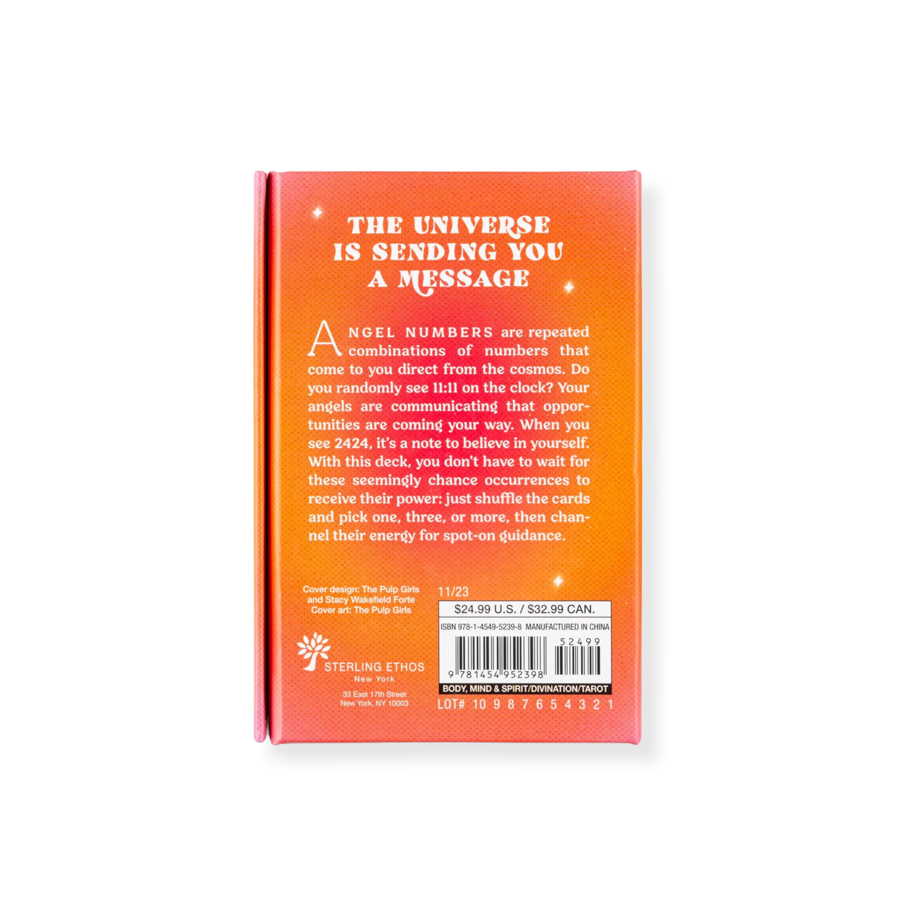 Angel numbers are repeated numerical sequences that are said to be messages from the universe. If 11:11 appears on the clock, is printed on a receipt, or materializes as if by magic on a nearby street sign, it may be a higher power predicting that exciting things are on the way. If you see the number 777, it could be the universe with a message to take it easy and rest a bit. 888? Whatever is happening, it’s the right path to follow! This bright, easy-to-use oracle deck channels the energy of such angel numbers so that anyone can use their power to bring amazing synchronicity and good fortune into their lives.