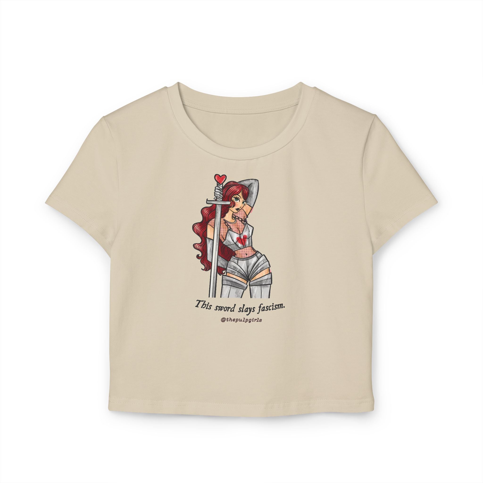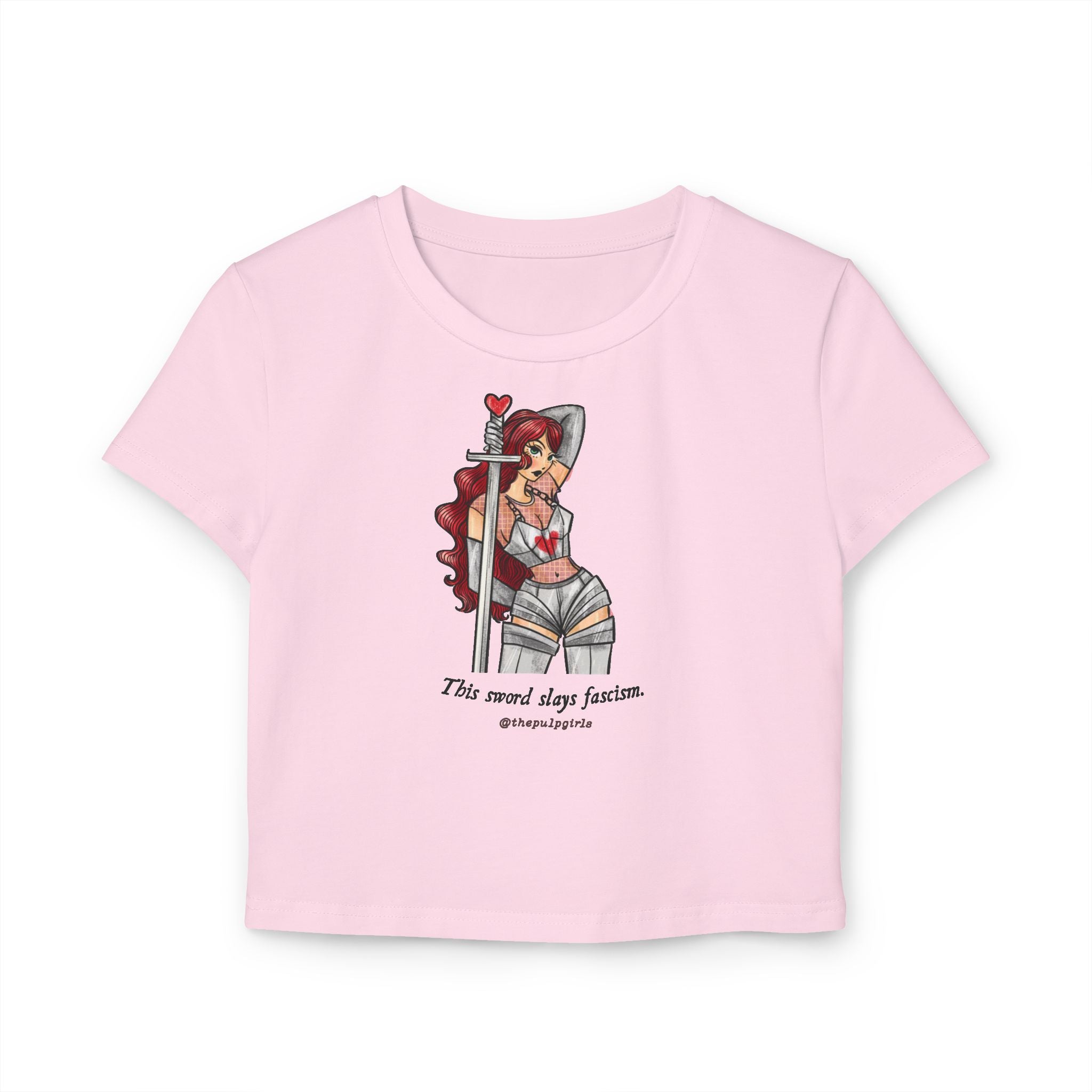 A cute cropped baby tee to show off your softness & your strength. This tee has a slim fit and mid-length cut and is made from 100% organic cotton rib.