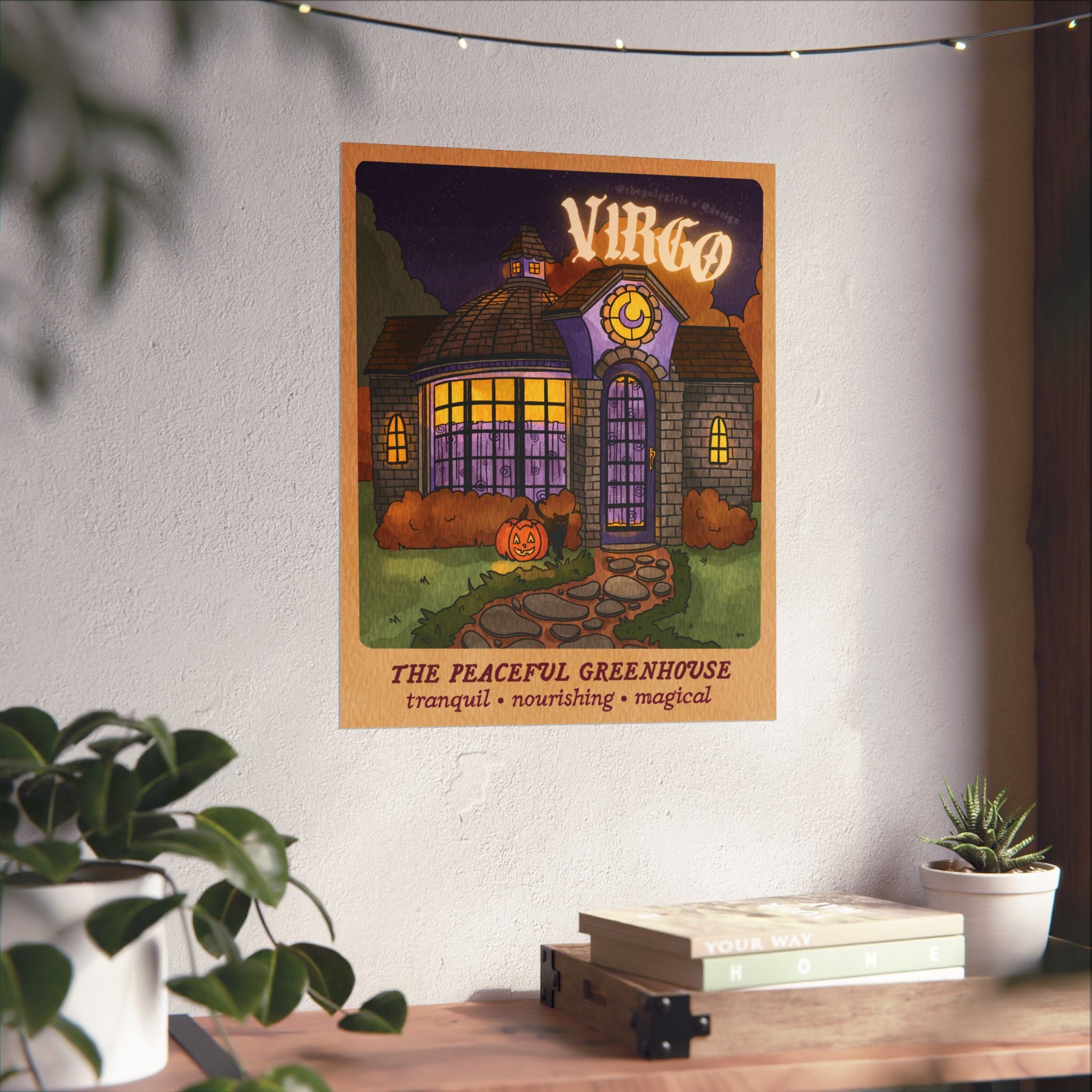 Calling all Virgo darlings! This Pulp art print features your zodiac's perfect dream home, with a fall twist and a little cat friend. Made with museum-grade paper, each poster is printed with top-tier pigmented archival inks for a stunning end result. Perfect for any and all cozy cuties, cat lovers, autumn fiends, and anyone who is simply just living their best witchy life!