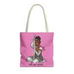 Love warriors, unite! This pink tote features a Pulp illustration of a lover girl dressed in knight's armor peacefully holding her sword, with the words “soft and strong” underneath. Lightweight but sturdy, the bag moves from market runs to library afternoons and community events without missing a beat. Your resilience and tenderness are your strengths.