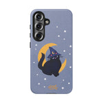 Moonlit and mischievous, this phone case features a cute black cat familiar in a little witch hat, hanging out in from of a big crescent moon. For people who collect small, witchy things and love feline company. The dual-layer construction and silicone liner cushion everyday bumps, while the matte finish keeps that moonlit illustration crisp. Carry a little bit of cat magic on your phone!