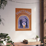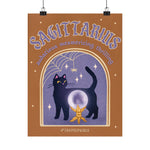 Love all things spooky and cute? We've got you Sagittarius darling! This Pulp art print features your zodiac sign name and our adorable classic Pulp-style black cat, along with spooky cute spiderweb motifs. Made with museum-grade paper, each poster is printed with top-tier pigmented archival inks for a stunning end result. Perfect for any and all witch girlies, cat lovers, goth cuties, and anyone who is simply just living their best witchy life!