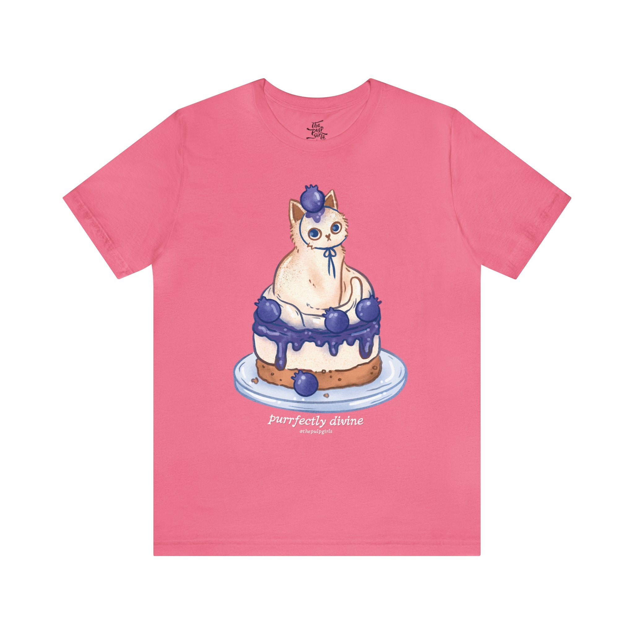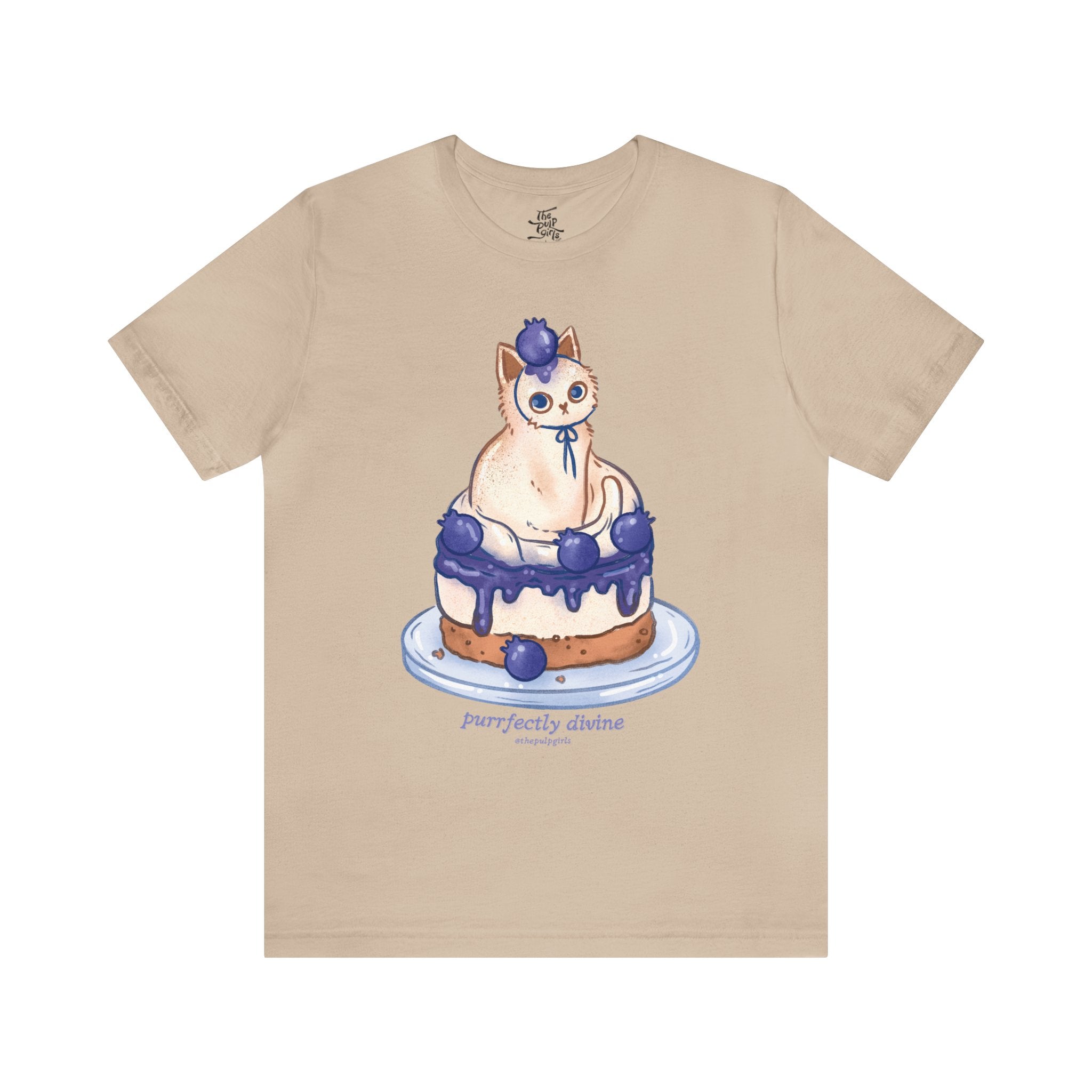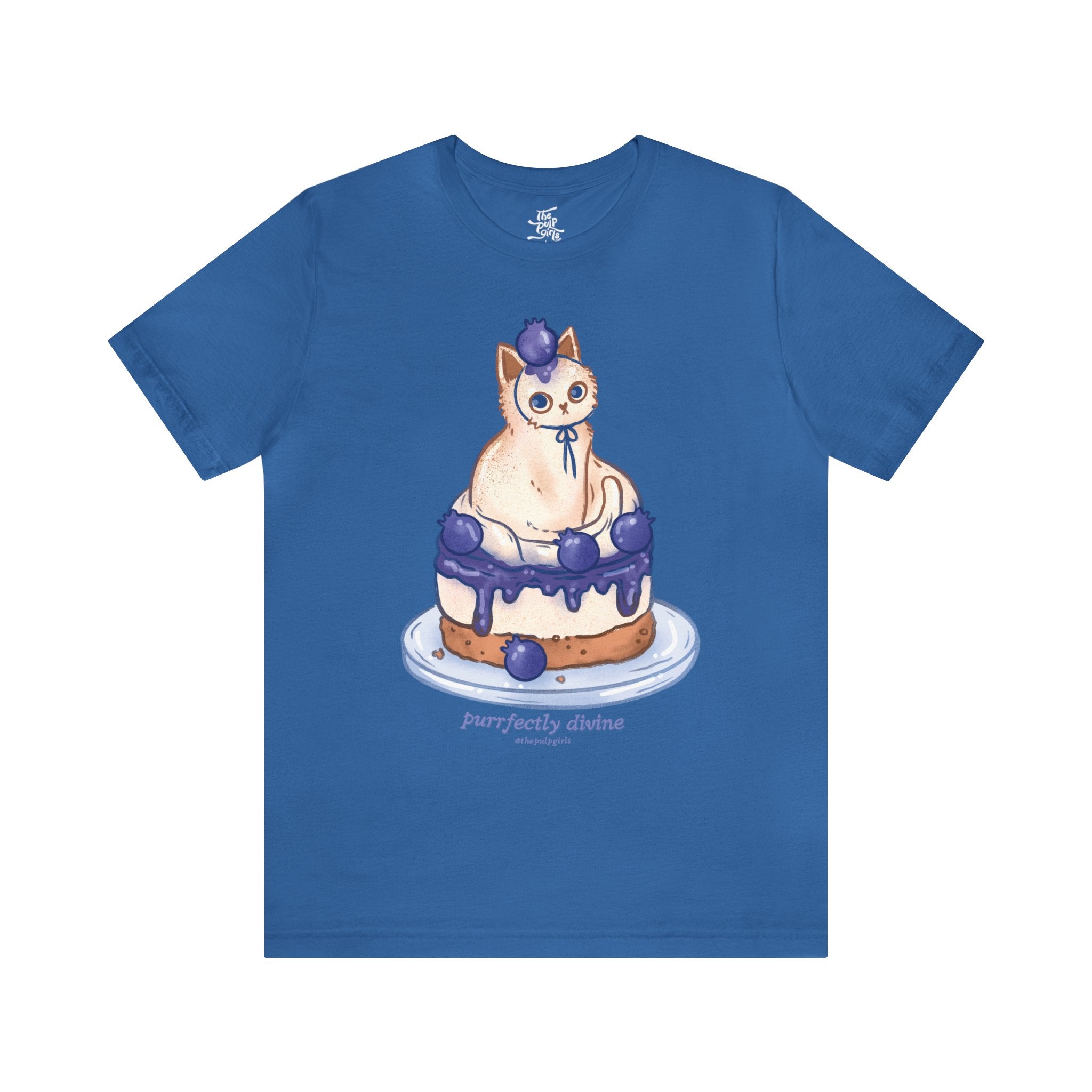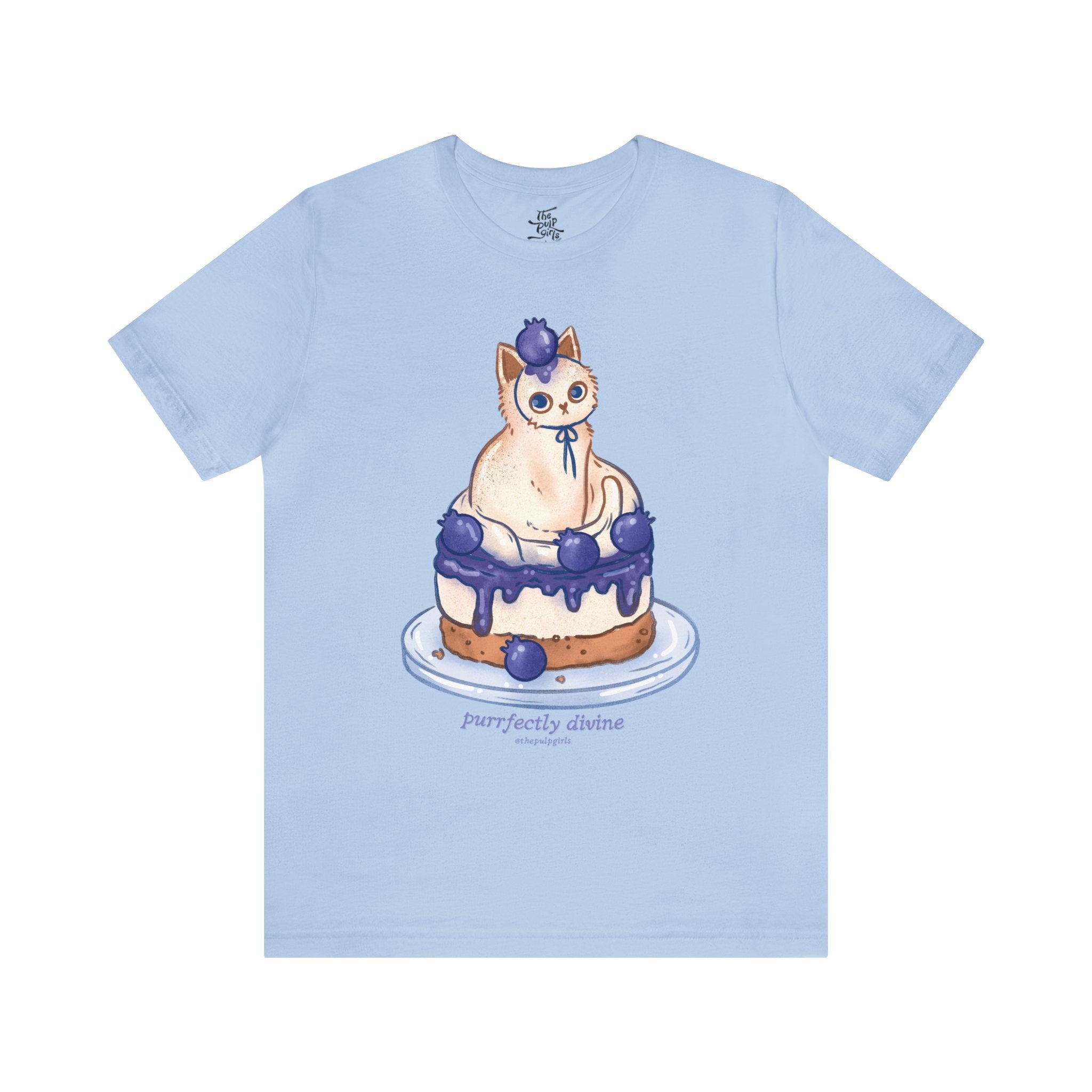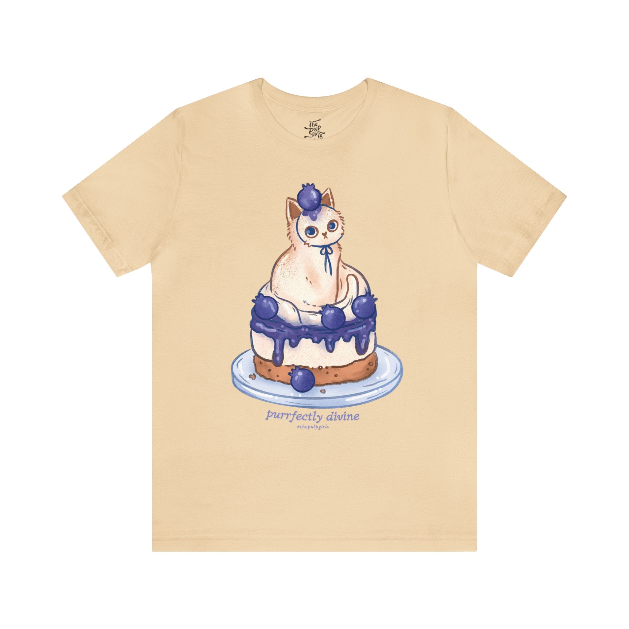 Do you love cats? What about desserts? Maybe even cats AND desserts?? Then this is for sure the comfy, ultra soft t-shirt for you! Featuring a scrumptious blueberry cheesecake kitty on the front and a bunch of darling dessert cats along the sleeves, this might be the sweetest shirt you can ever wear!