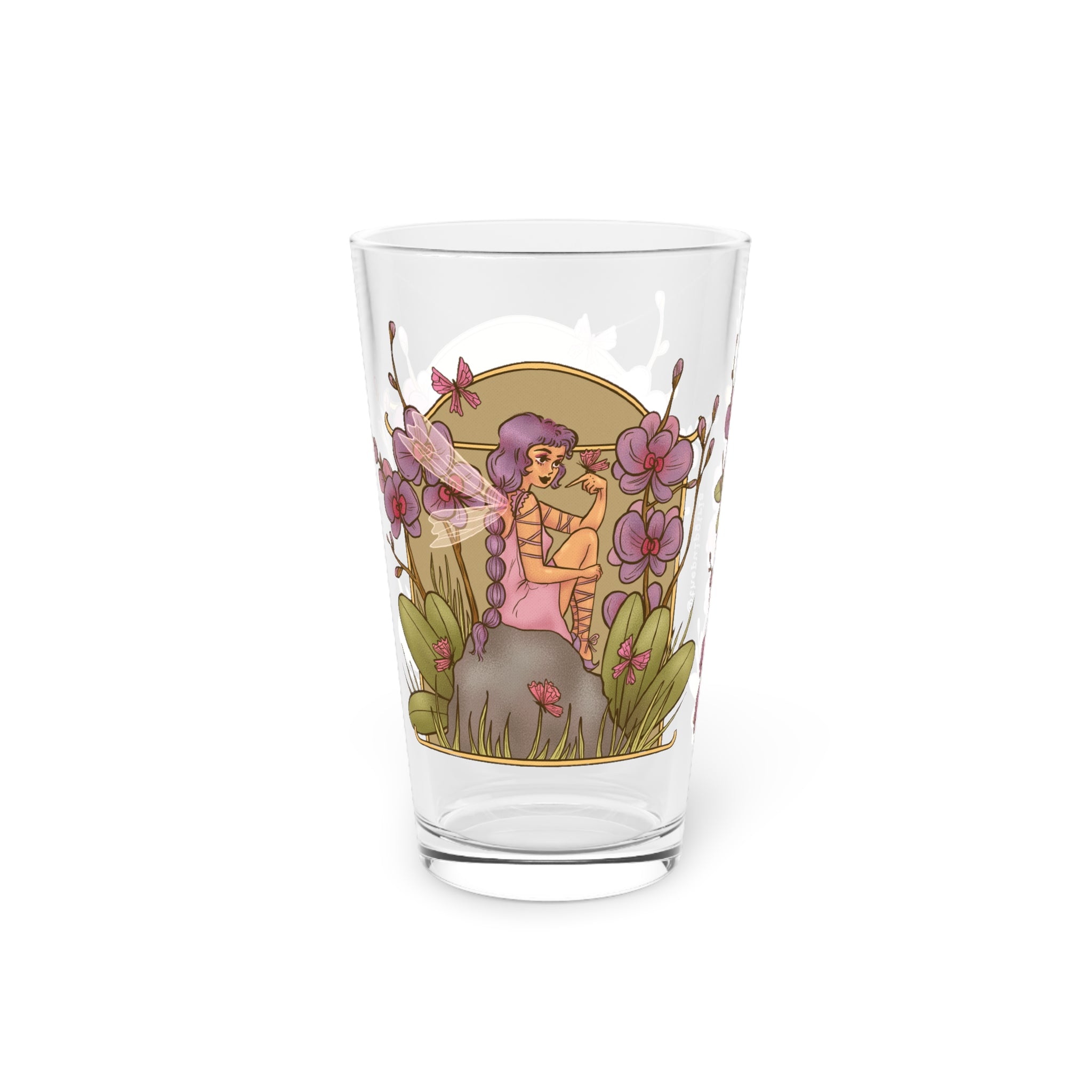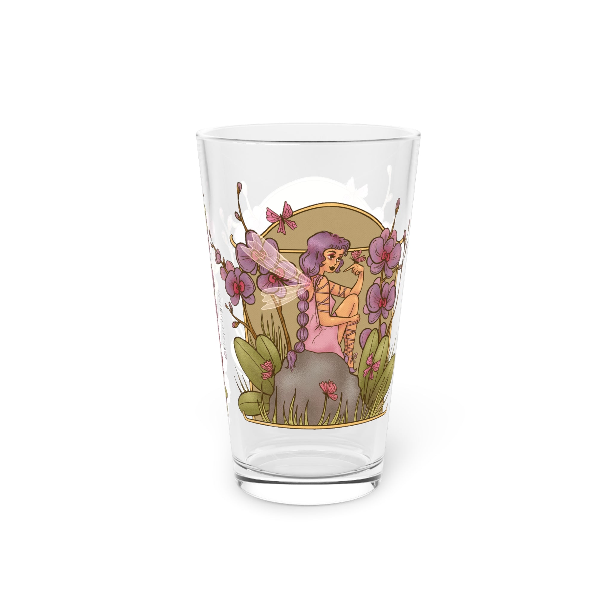 For all those air signs (and butterfly lovers, fairycore cuties, and cottagecore angels) out there, this pint glass is for you! Featuring a beautiful art nouveau-inspired air goddess in fairy form, complete with butterflies and purple irises. Perfect for any and all lovers of the fae, magic, witchcraft, femme aesthetics, and fairycore!
