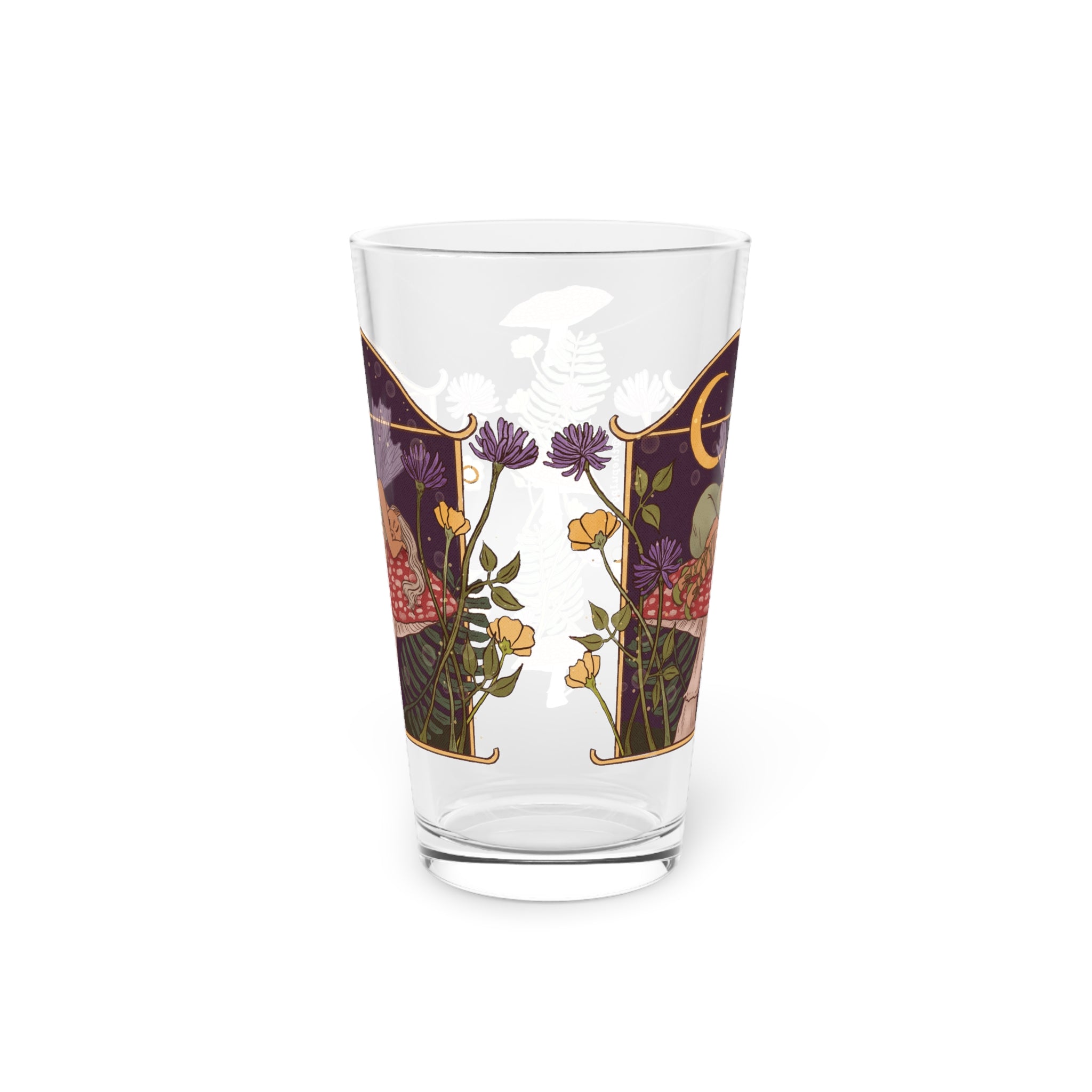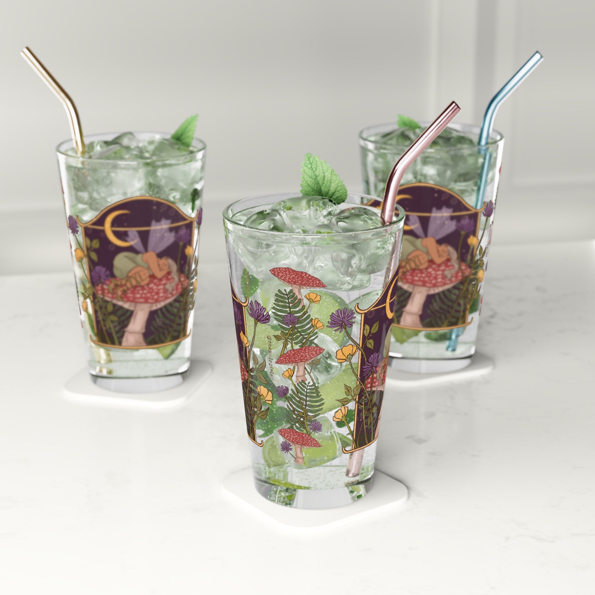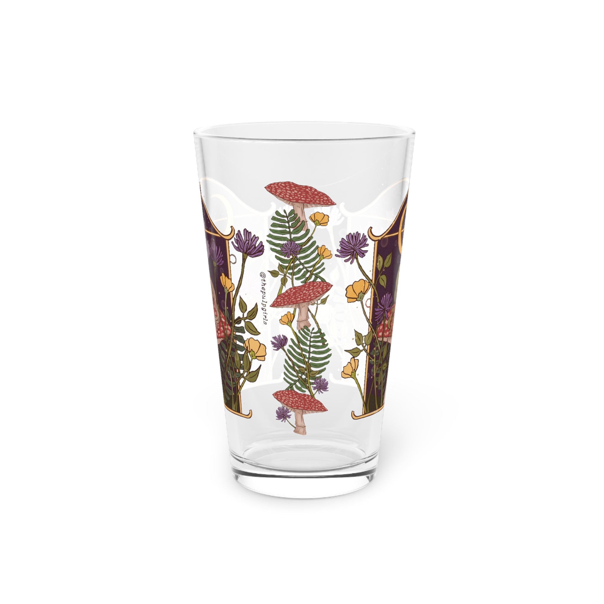 For all those earth signs (and mushroom lovers, fairycore cuties, and goblincore beauties) out there, this pint glass is for you! Featuring a beautiful art nouveau-inspired earth goddess in fairy form, napping on a mushroom among wildflowers. Perfect for any and all lovers of the fae, magic, witchcraft, femme aesthetics, and fairycore!