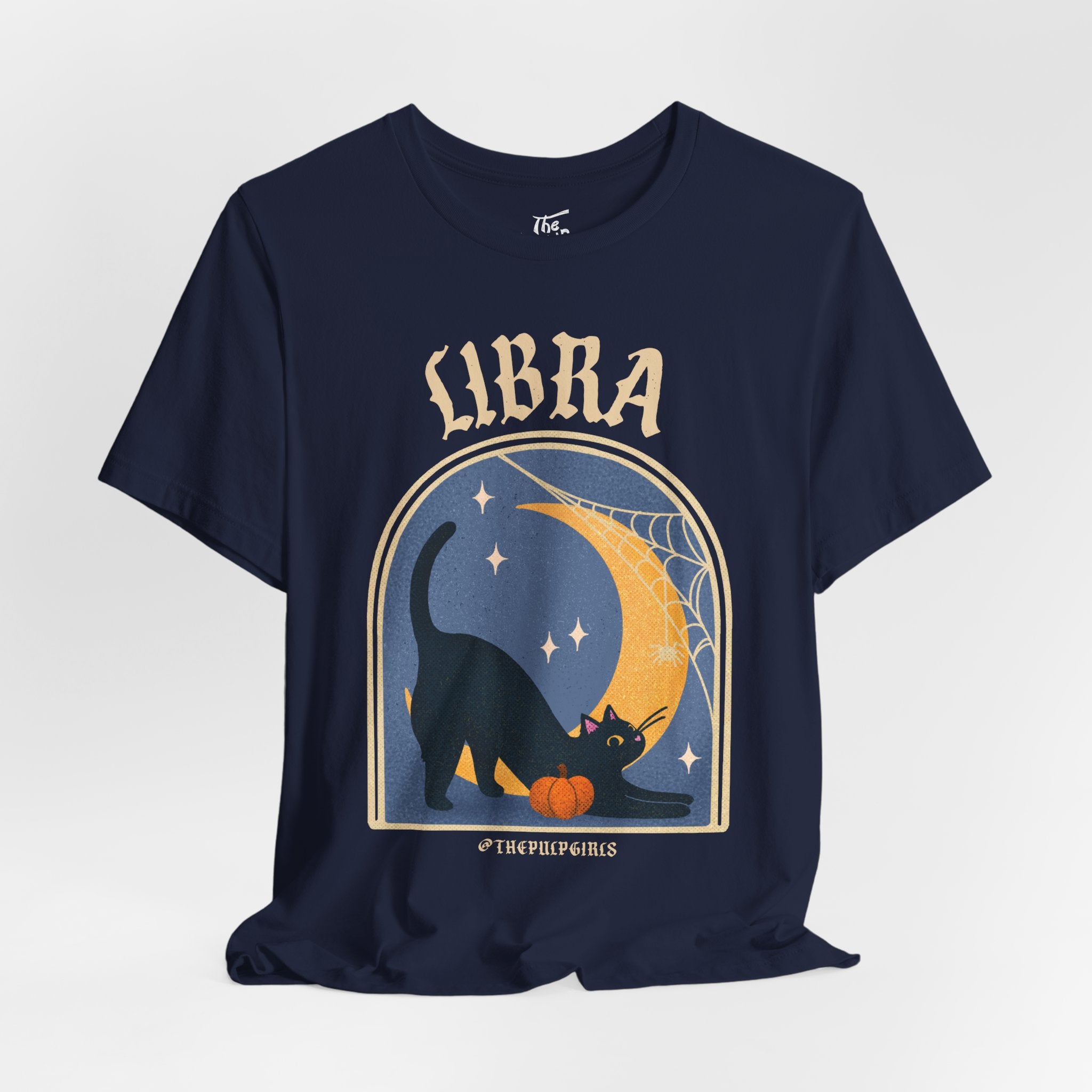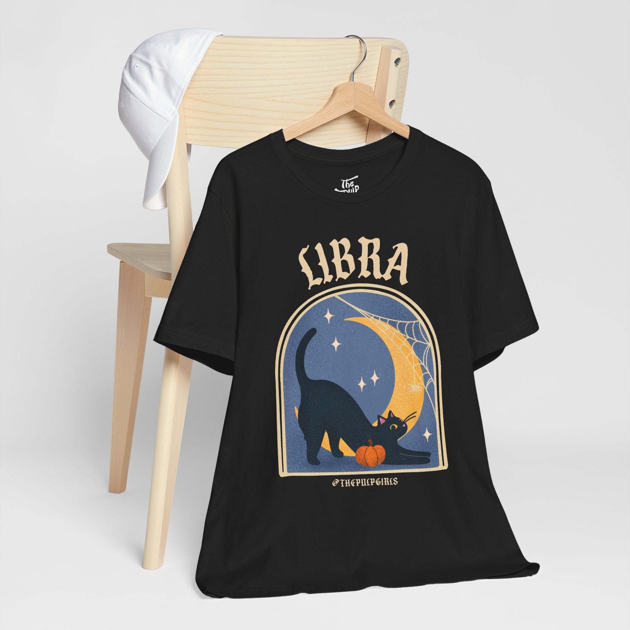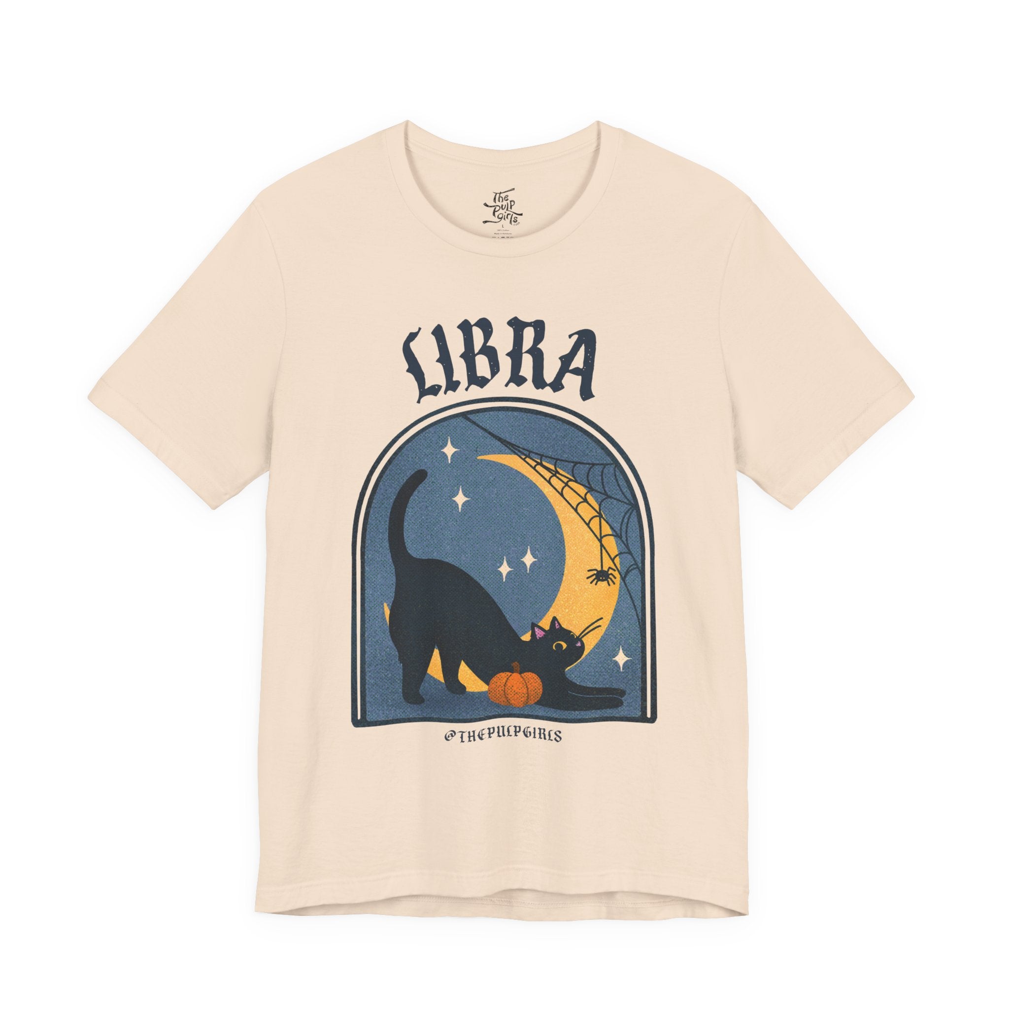Love all things spooky and cute? We've got you Libra darling! This ultra soft, super comfy tee features our adorable classic Pulp-style black cat along with spooky spiderweb motifs. Perfect for any and all witch girlies, cat lovers, goth cuties, and anyone who is simply just living their best witchy life!