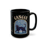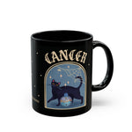 Love all things spooky and cute? We've got you Cancer darling! This durable, black ceramic mug features your zodiac sign name and our adorable classic Pulp-style black cat, along with spooky cute spiderweb motifs. BPA and lead-free, in two size options: 11oz or 15oz. Perfect for any and all witch girlies, cat lovers, goth cuties, and anyone who is simply just living their best witchy life!