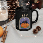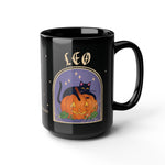 Love all things spooky and cute? We've got you Leo darling! This durable, black ceramic mug features your zodiac sign name and our adorable classic Pulp-style black cat, along with spooky cute spiderweb motifs. BPA and lead-free, in two size options: 11oz or 15oz. Perfect for any and all witch girlies, cat lovers, goth cuties, and anyone who is simply just living their best witchy life!