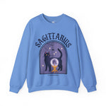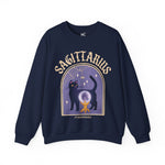 Love all things spooky and cute? We've got you Sagittarius darling! This ultra comfy crewneck sweatshirt features our adorable classic Pulp-style black cat along with spooky spiderweb motifs. Perfect for any and all witch girlies, cat lovers, goth cuties, and anyone who is simply just living their best witchy life!