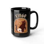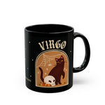 Love all things spooky and cute? We've got you Virgo darling! This durable, black ceramic mug features your zodiac sign name and our adorable classic Pulp-style black cat, along with spooky cute spiderweb motifs. BPA and lead-free, in two size options: 11oz or 15oz. Perfect for any and all witch girlies, cat lovers, goth cuties, and anyone who is simply just living their best witchy life!