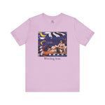 Unisex short sleeve tee featuring two witch besties chilling under the moon. Perfect for those who love witchy aesthetics and want to embrace their inner magic. Ideal for Halloween, witchcraft enthusiasts, and anyone looking to add a touch of the supernatural to their wardrobe.
