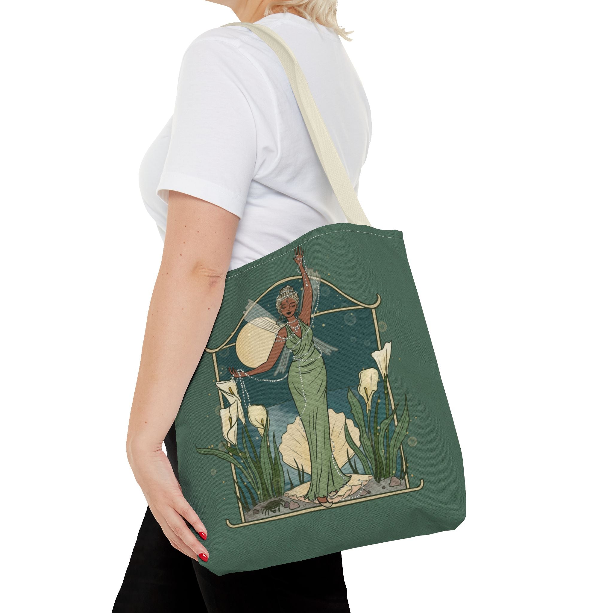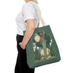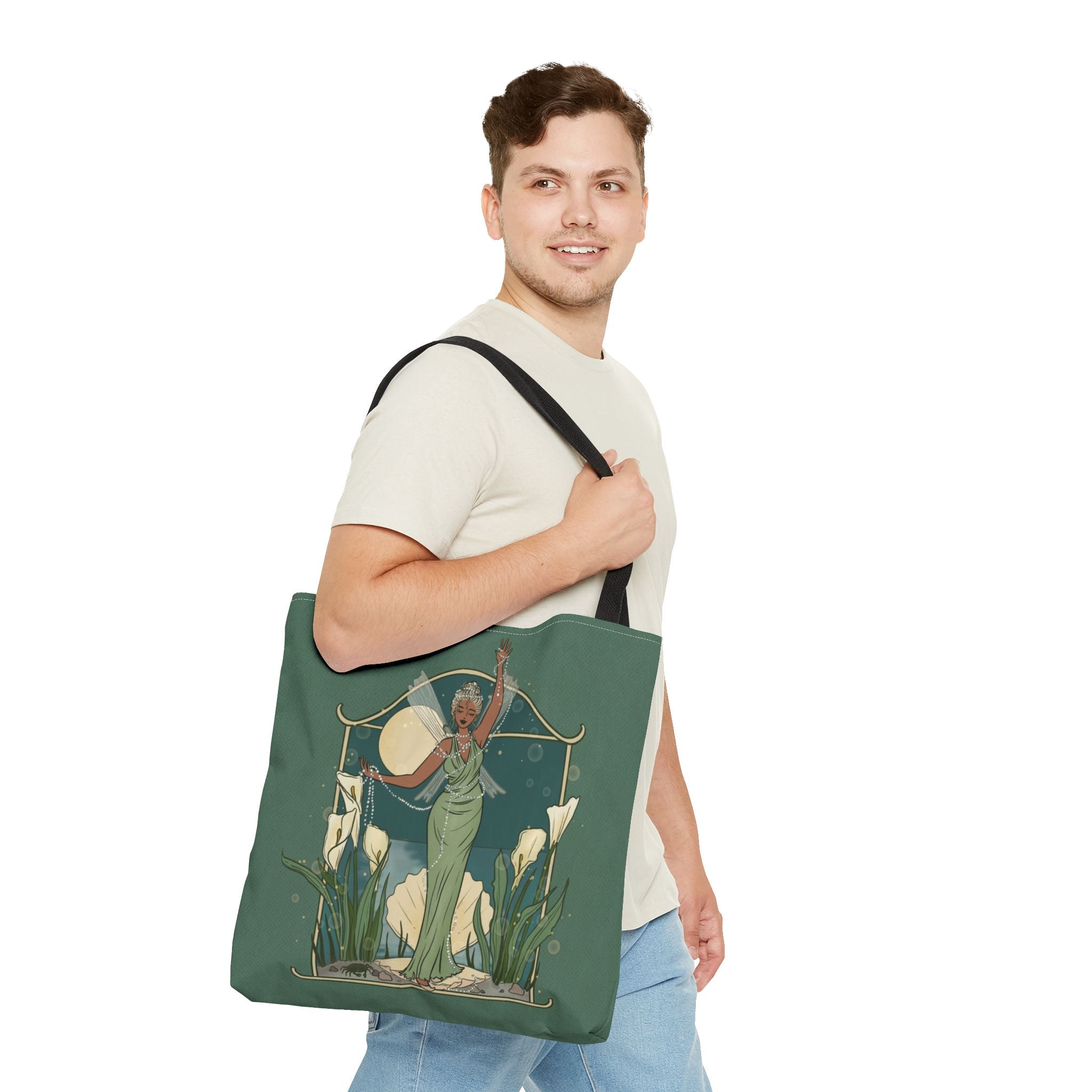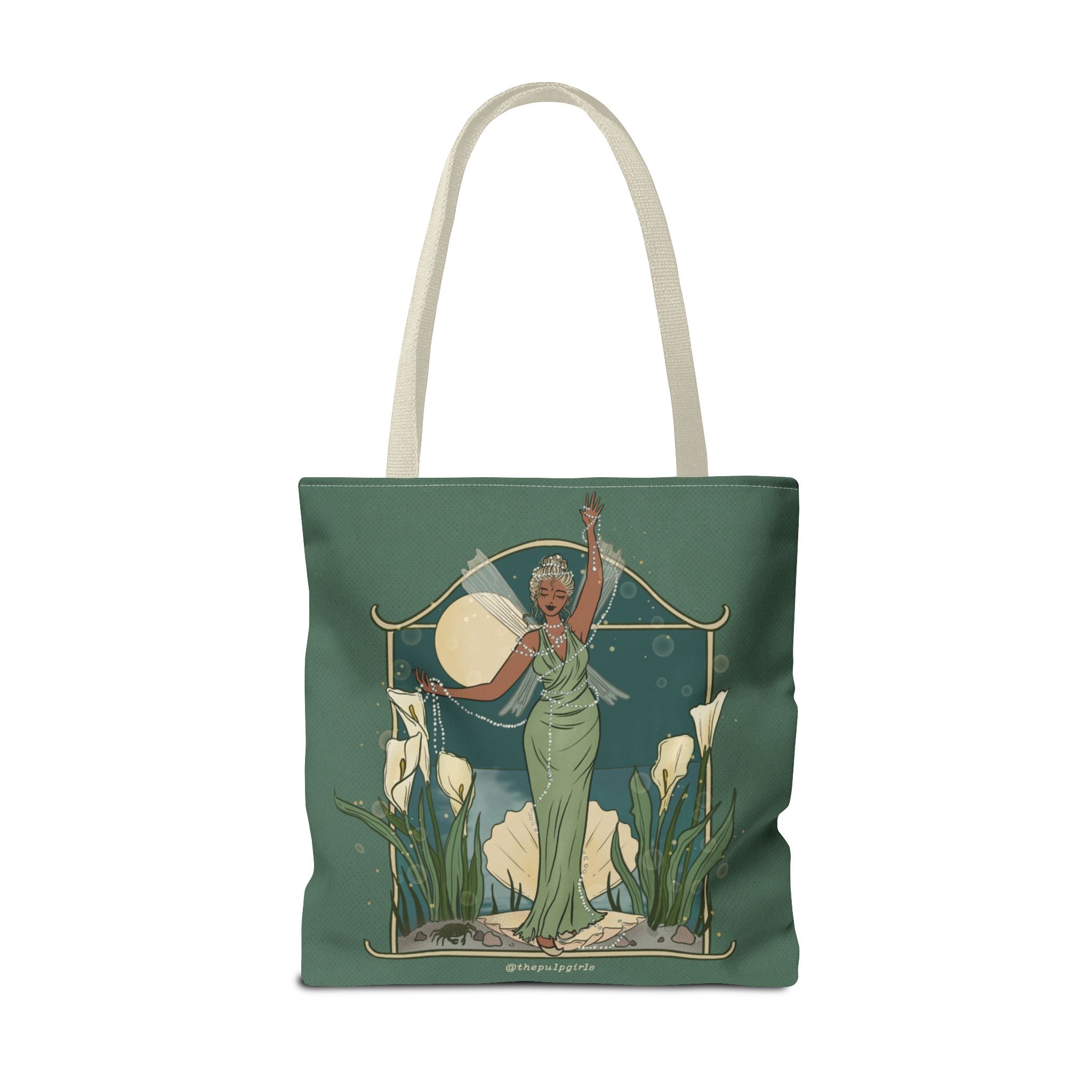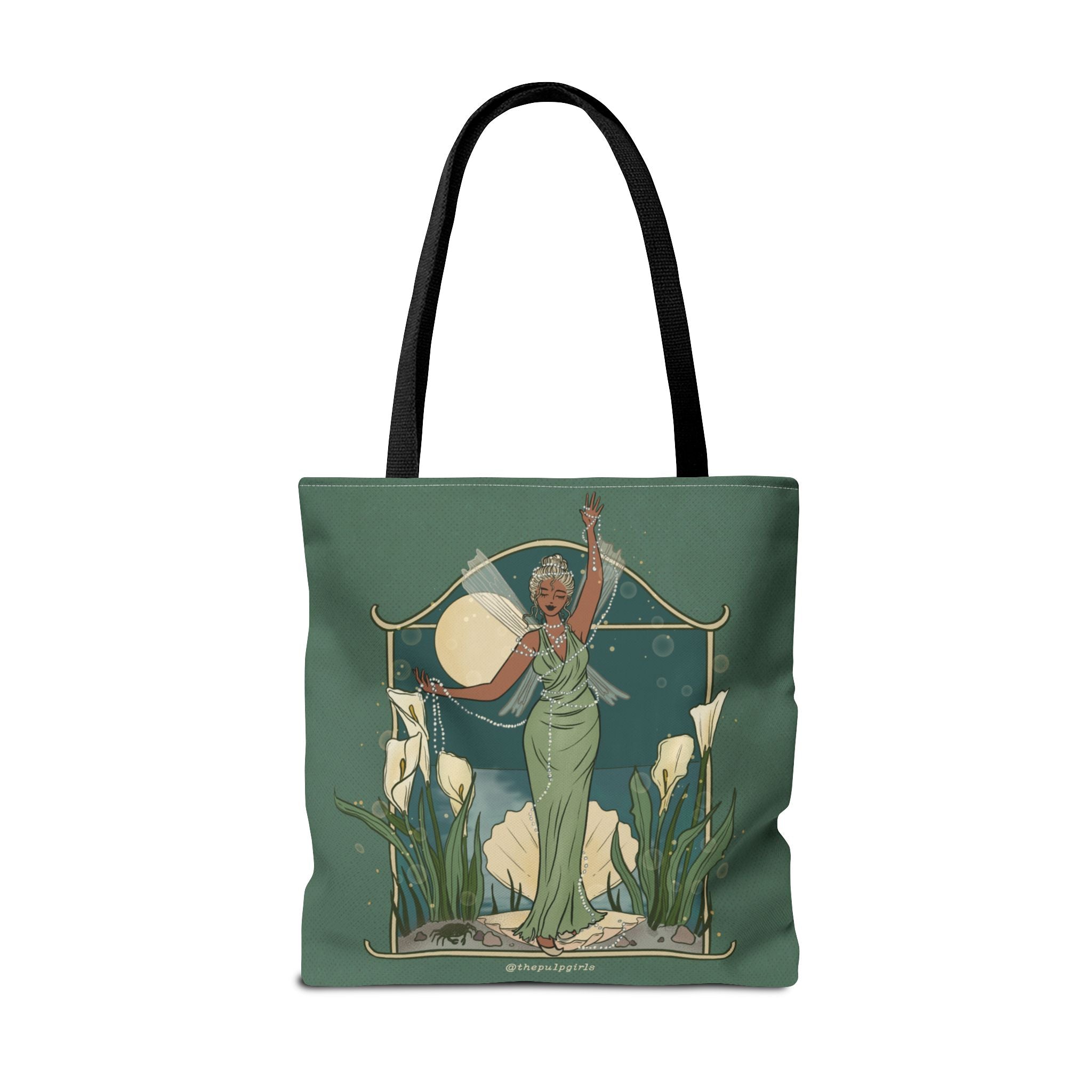 For all those water signs (and sea witches, mermaids, and water goddesses) out there, this heavy-duty tote is for you! Featuring a beautiful art nouveau-inspired water goddess in fairy form, complete with water lilies, the full moon, and the Venus clam shell. Perfect for any and all lovers of the fae, magic, witchcraft, femme aesthetics, and fairycore!