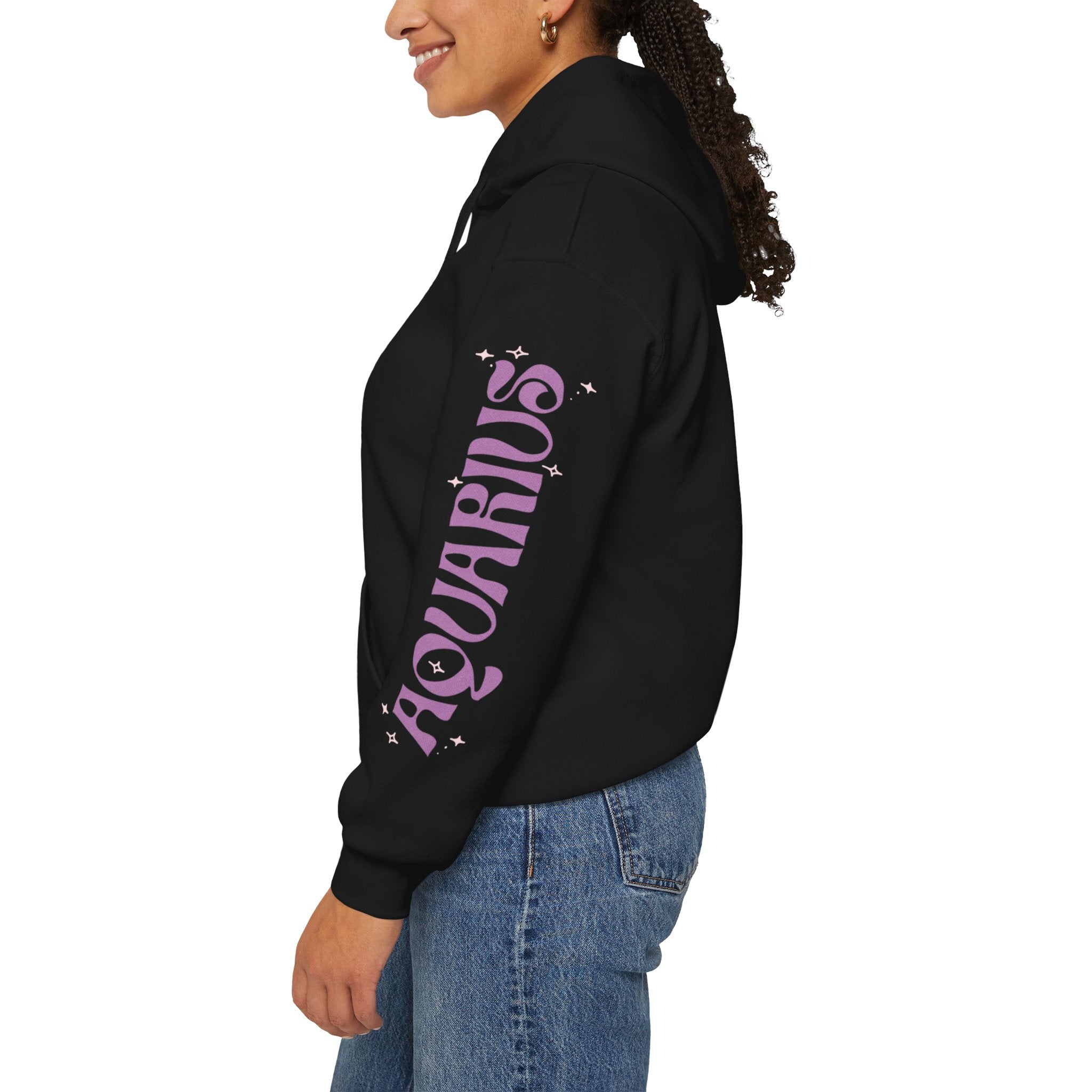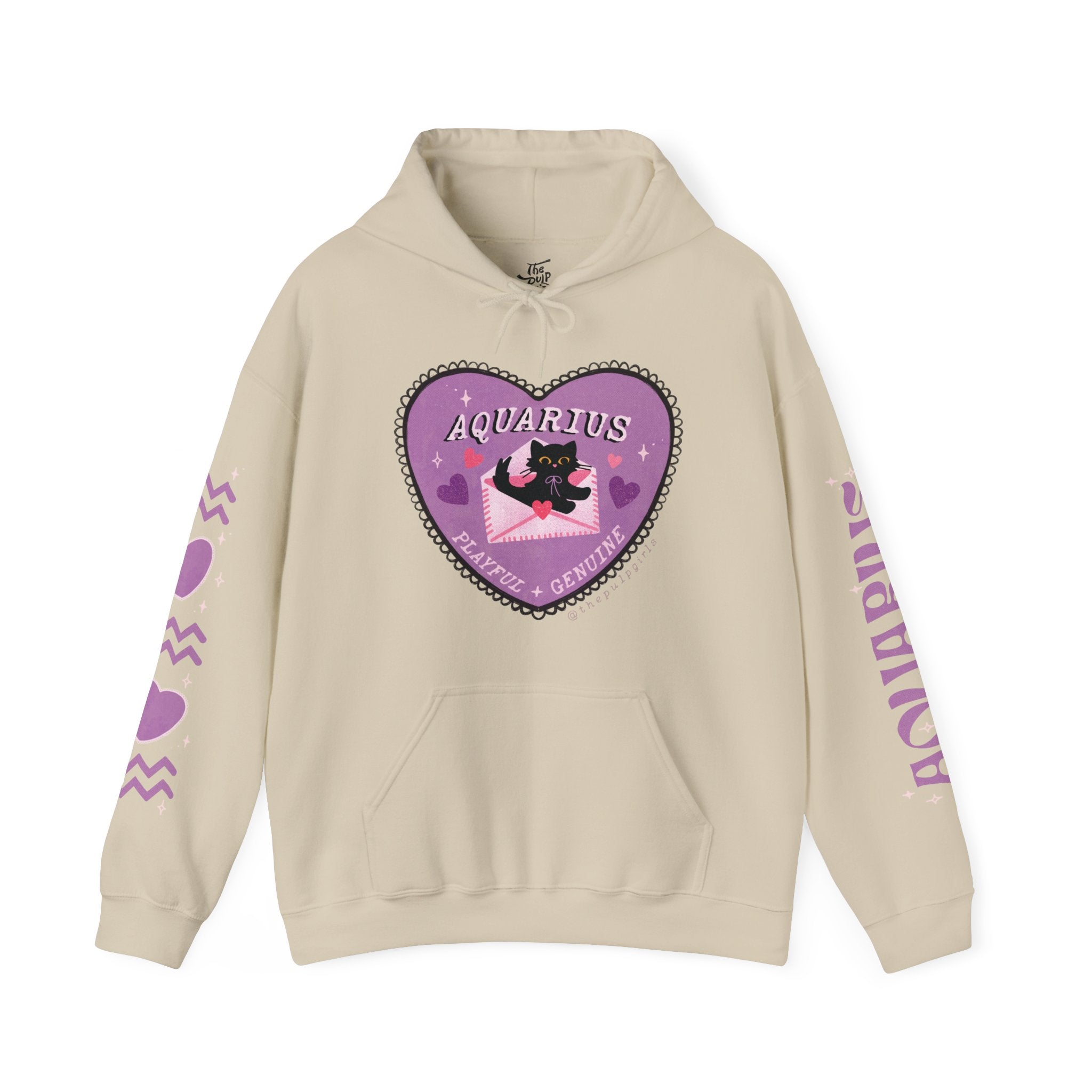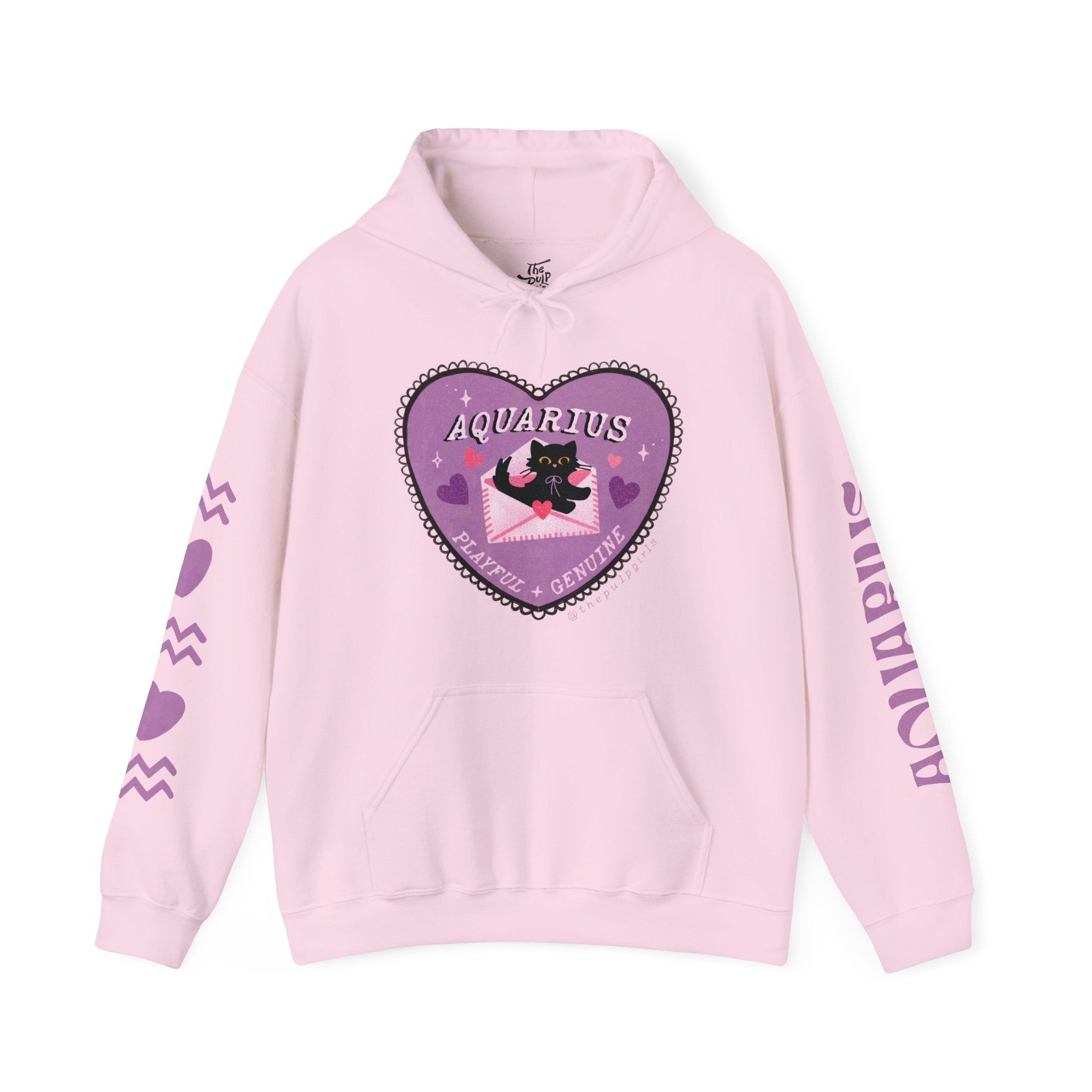 Aquarius darlings! Fall in ~love~ with our love themed cat astrology merch. Featuring the sign name along one sleeve, and your sign & some hearts along the other sleeve.