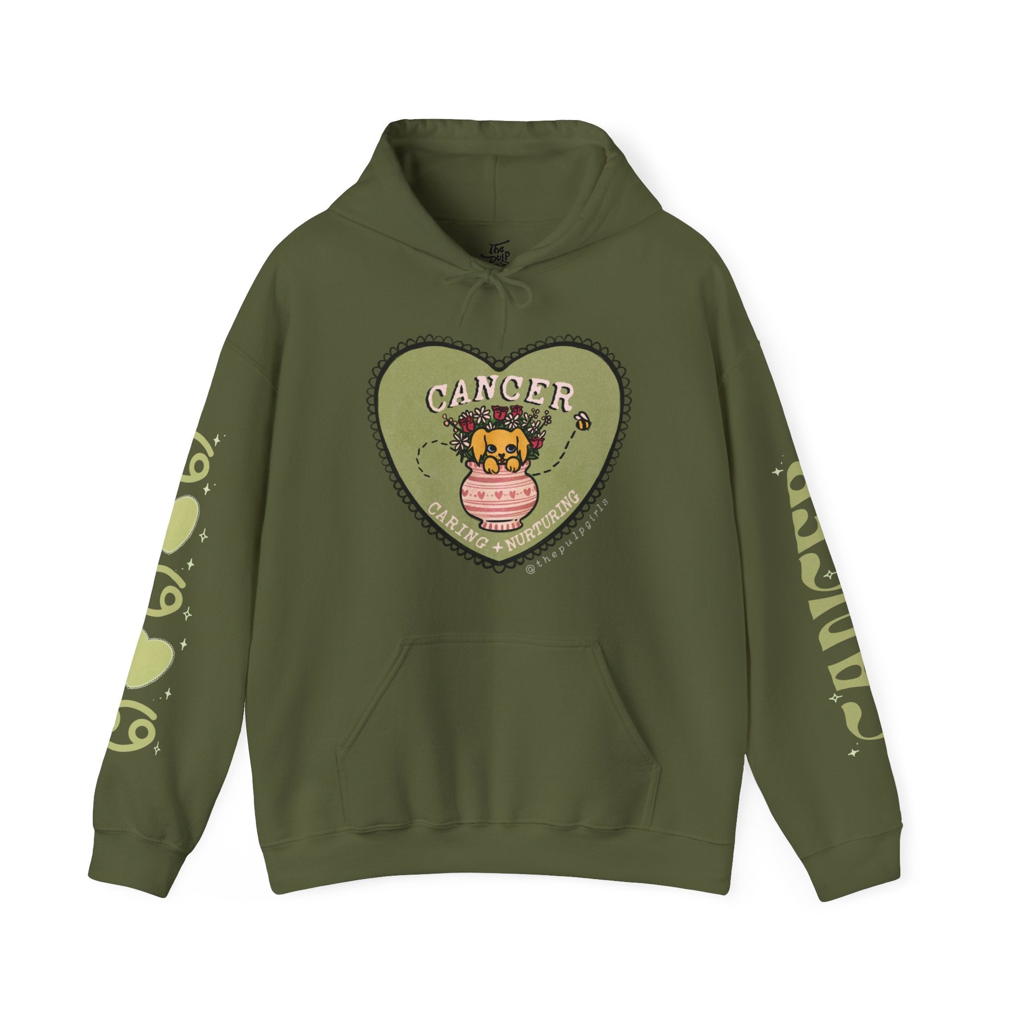 Cancer darlings! Fall in ~love~ with our love themed dog astrology merch. Featuring the sign name along one sleeve, and your sign & some hearts along the other sleeve.
