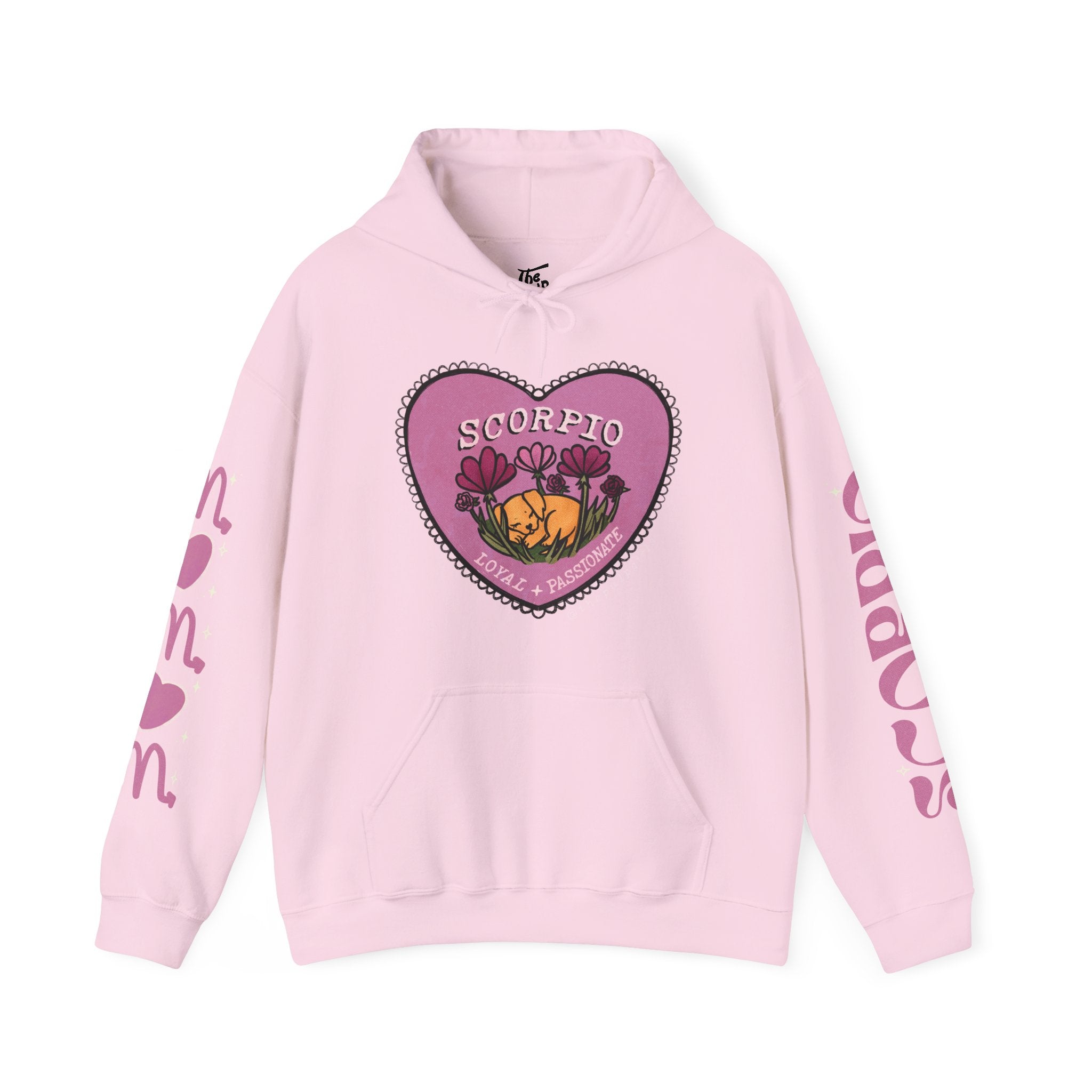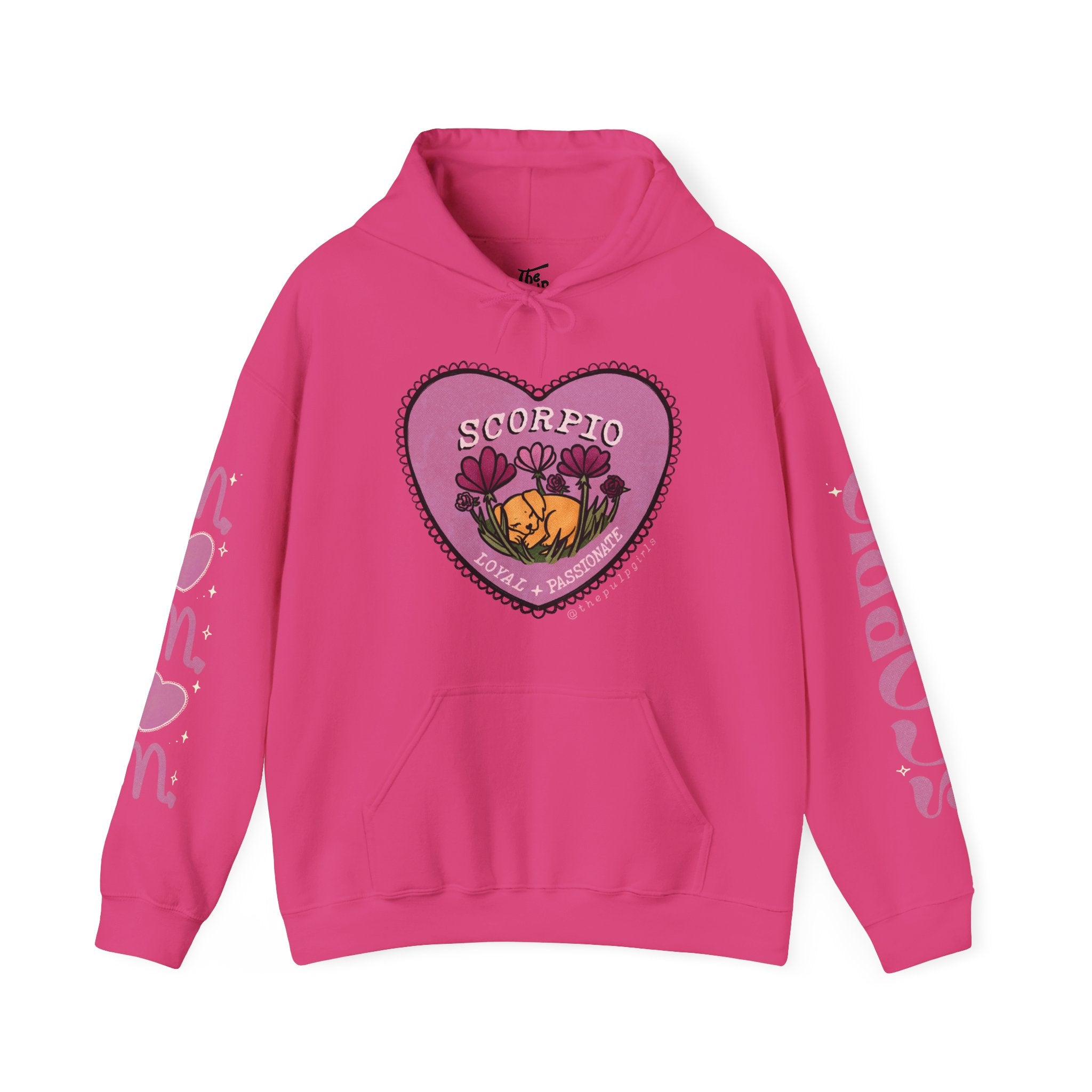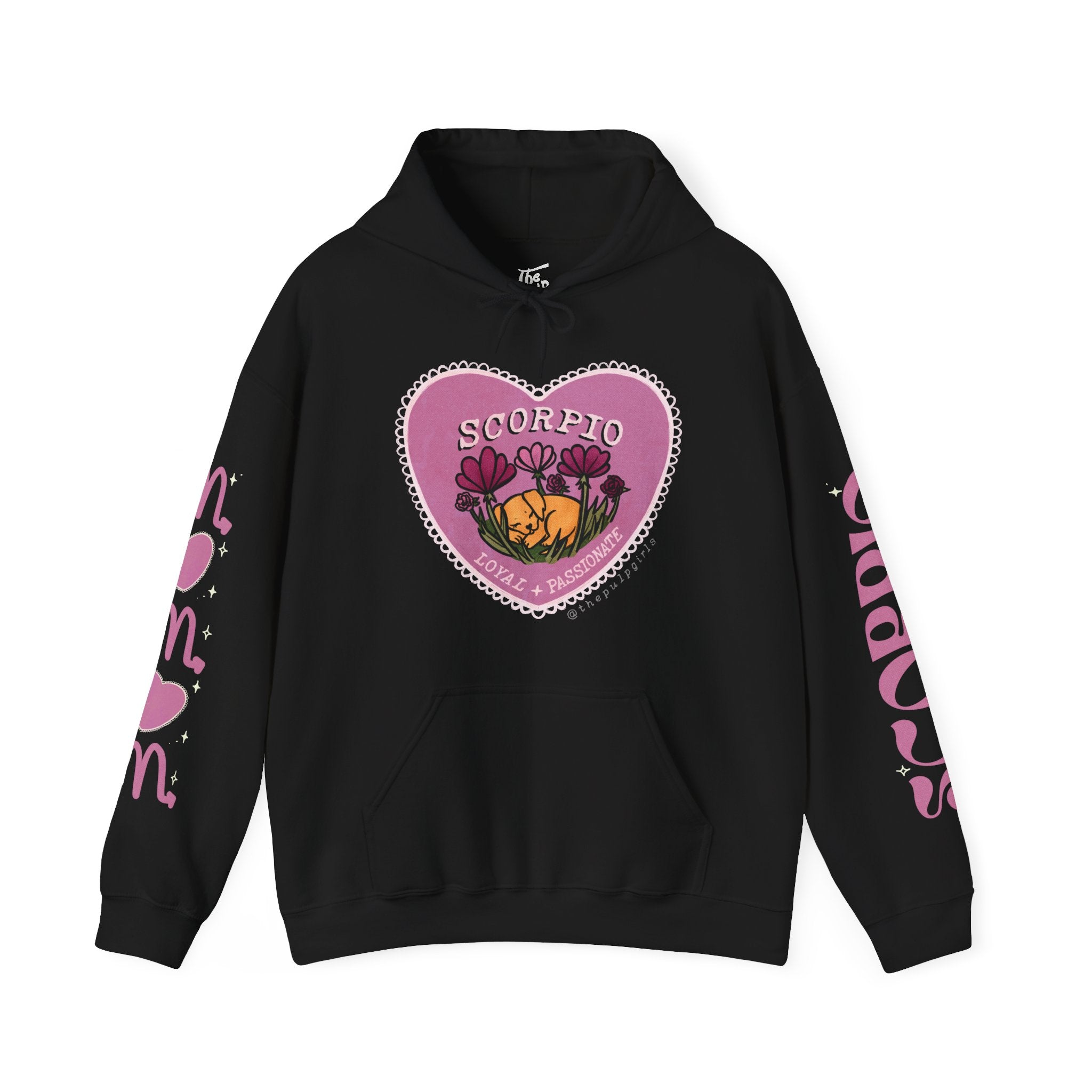 Scorpio darlings! Fall in ~love~ with our love themed dog astrology merch. Featuring the sign name along one sleeve, and your sign & some hearts along the other sleeve.